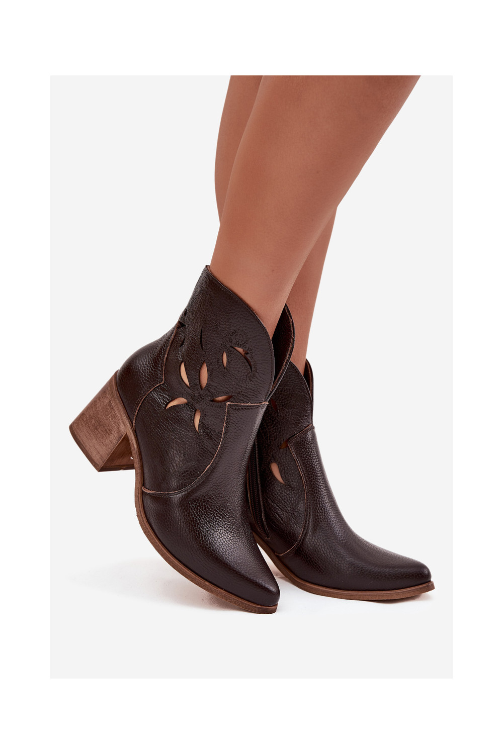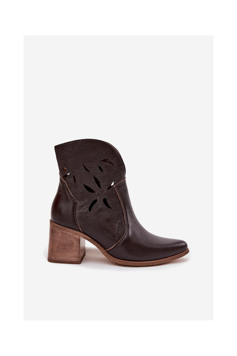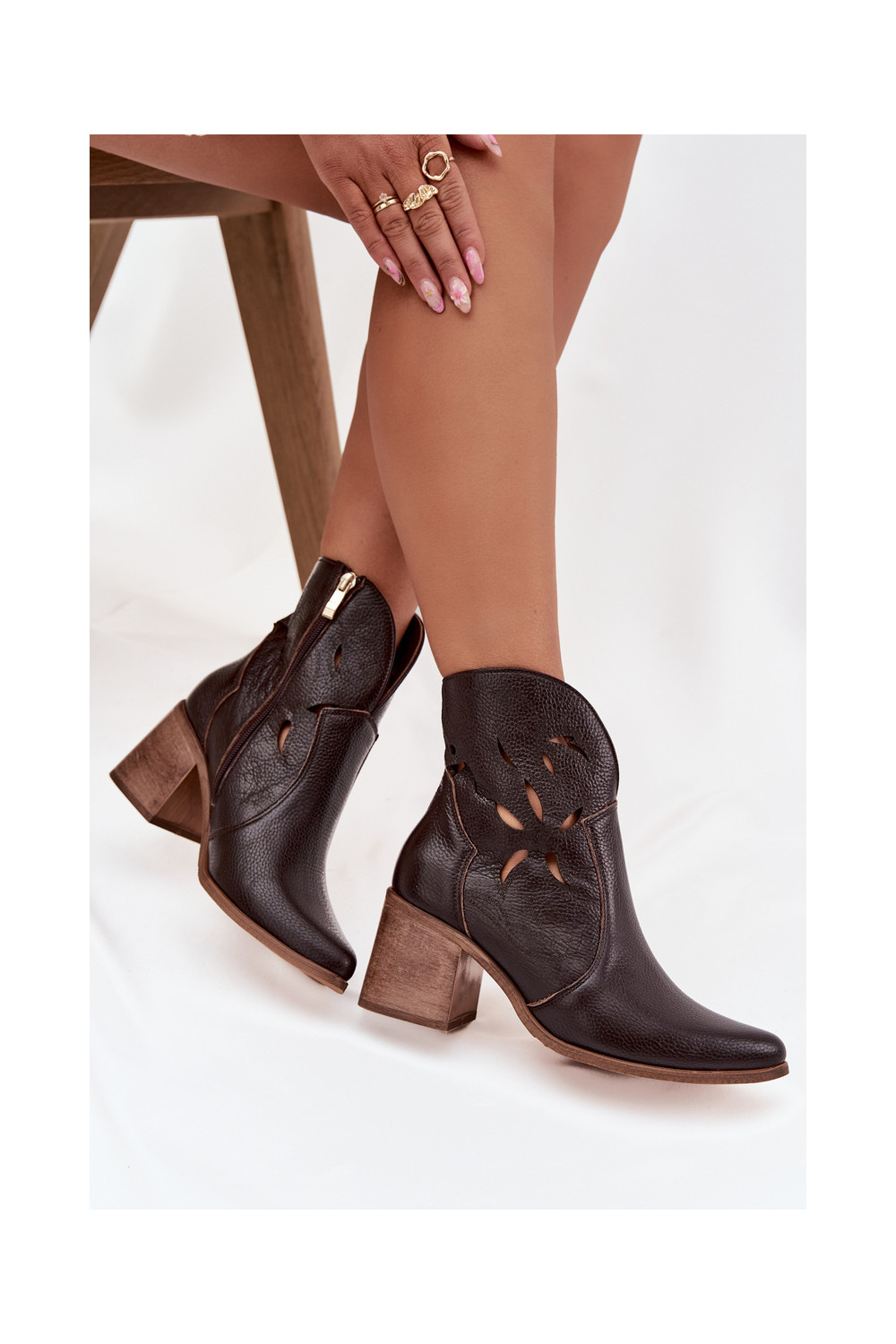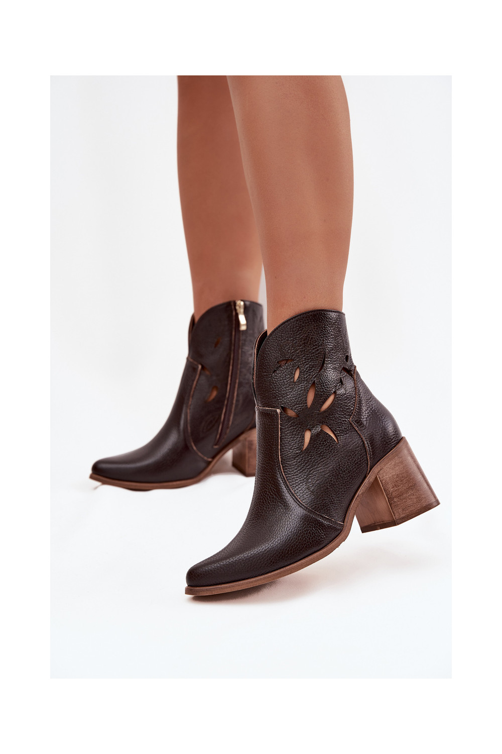 Sieviešu zābaki ar caurumiem no dabīgās ādas ar papēžiem Zazoo 3690 šokolādes krāsā