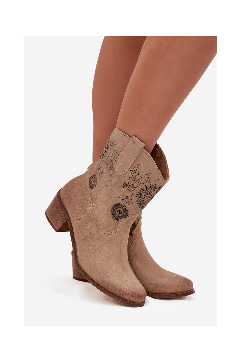 Sieviešu zamšādas zābaki ar caurumiem ar papēžiem Zazoo 3844 smilšu krāsā