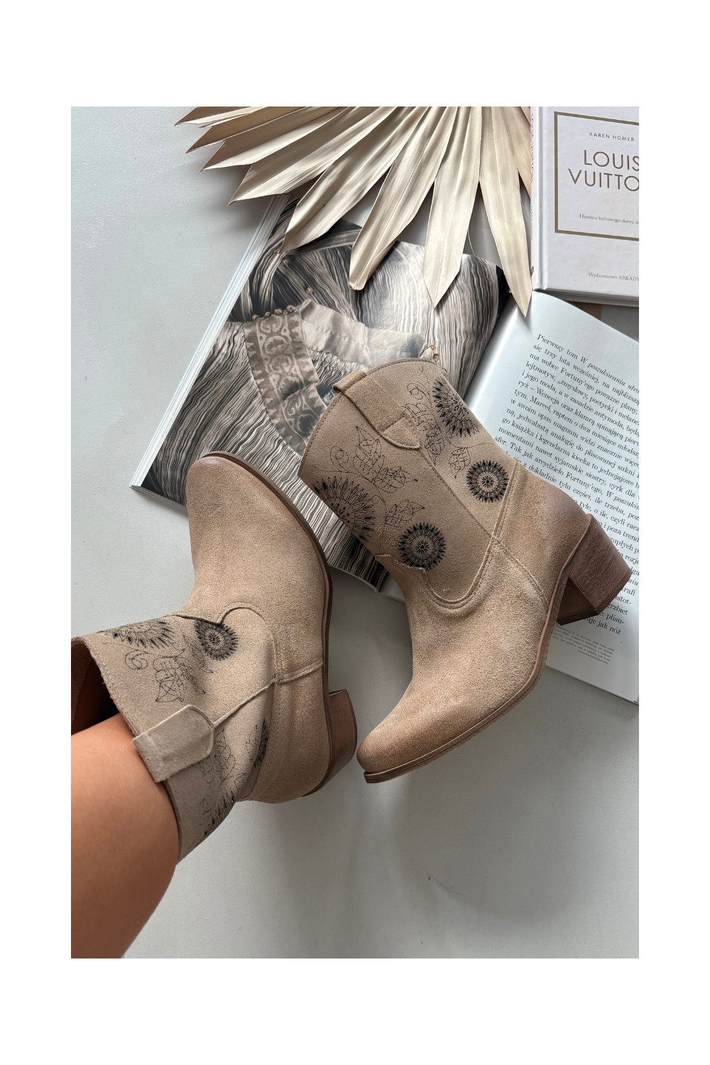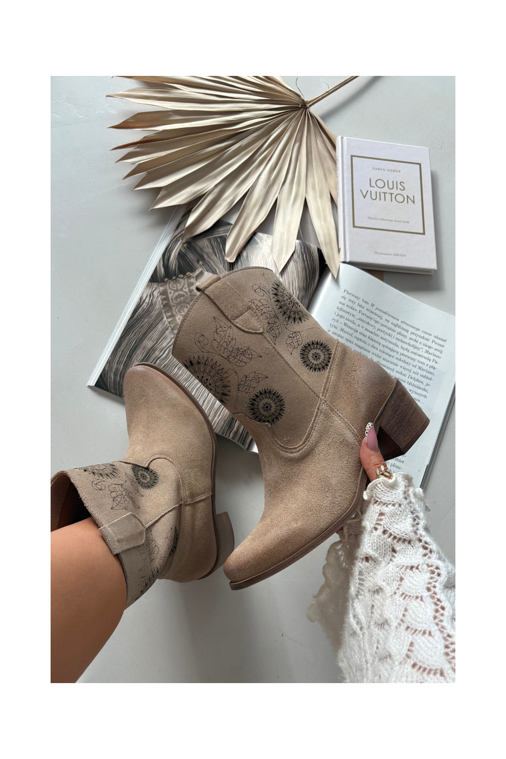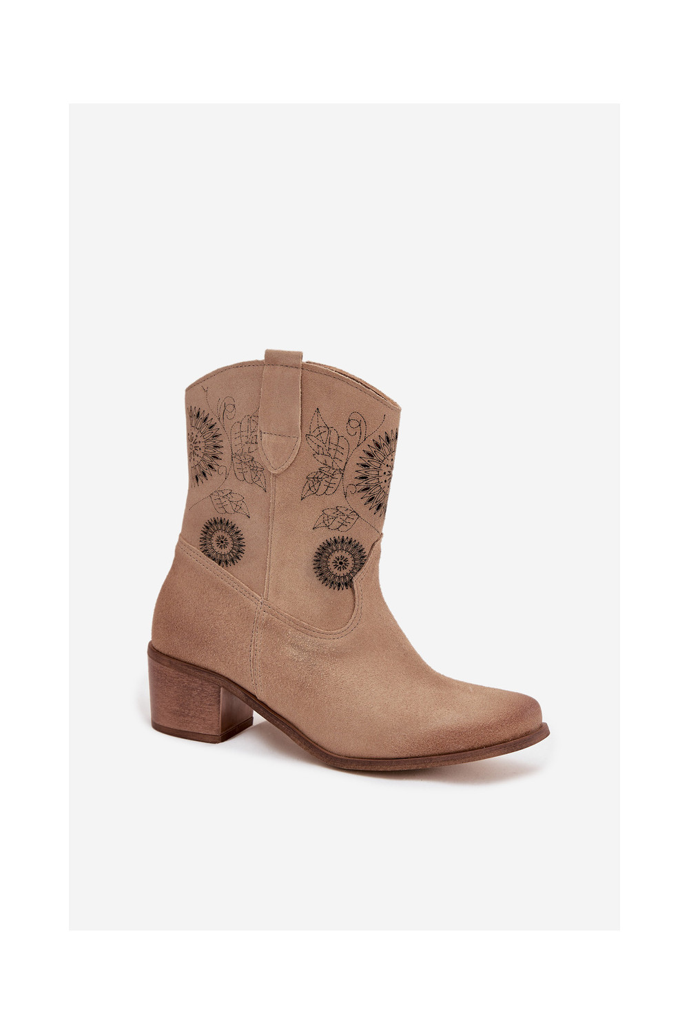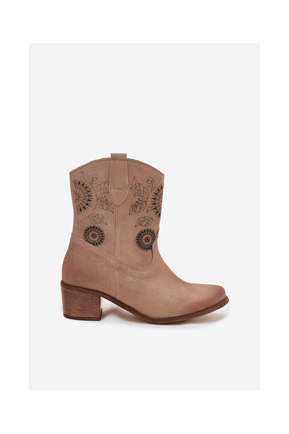 Sieviešu zamšādas zābaki ar caurumiem ar papēžiem Zazoo 3844 smilšu krāsā
