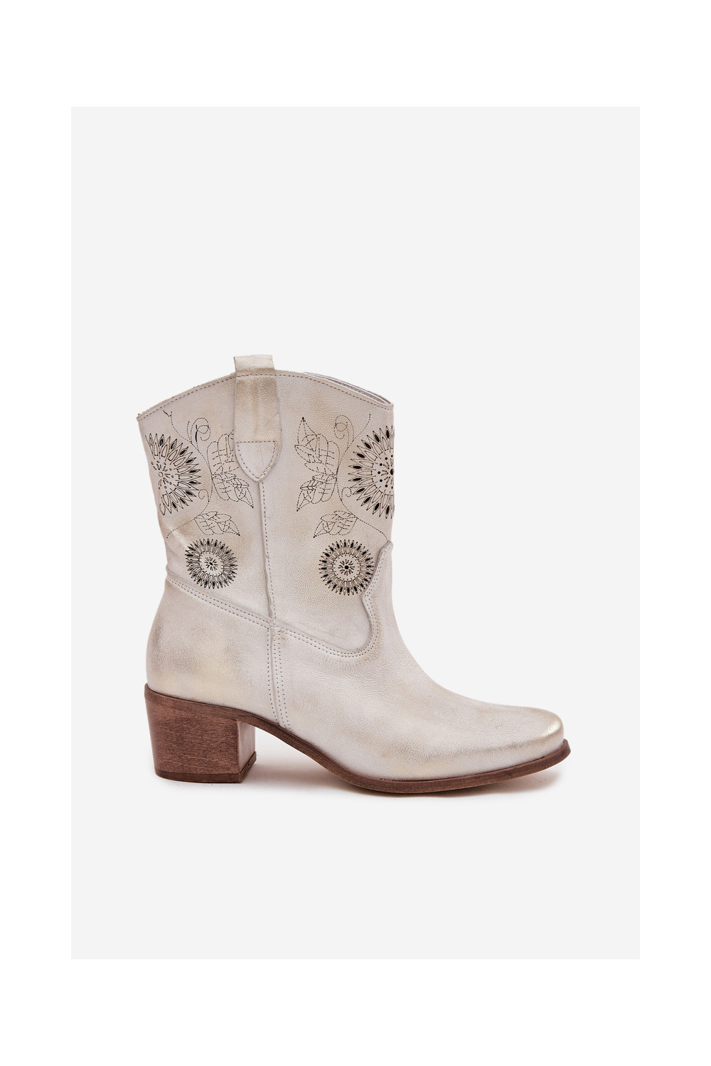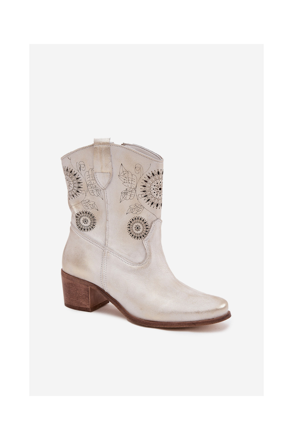 Sieviešu zamšādas zābaki ar caurumiem ar papēžiem Zazoo 3844 zelta krāsā ar berzēšanas efektu