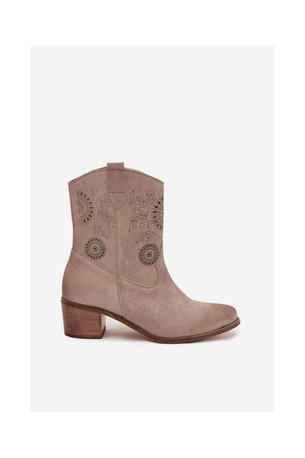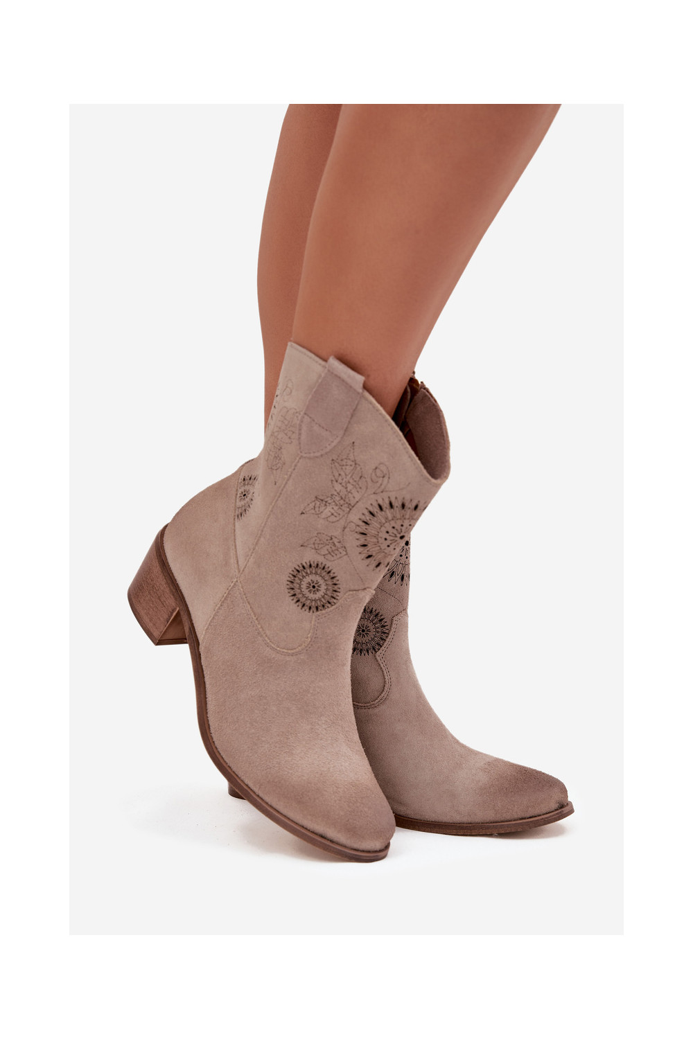 Sieviešu zamšādas zābaki ar caurumiem ar papēžiem Zazoo 3844 kapučīno krāsā
