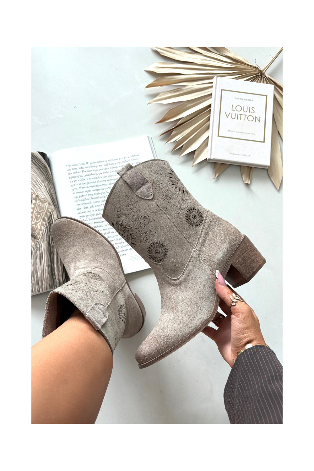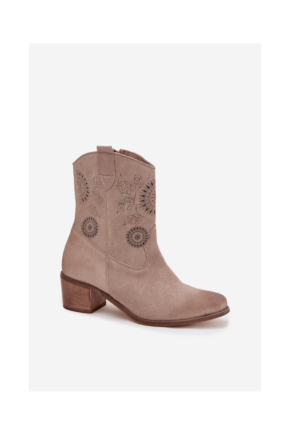 Sieviešu zamšādas zābaki ar caurumiem ar papēžiem Zazoo 3844 kapučīno krāsā