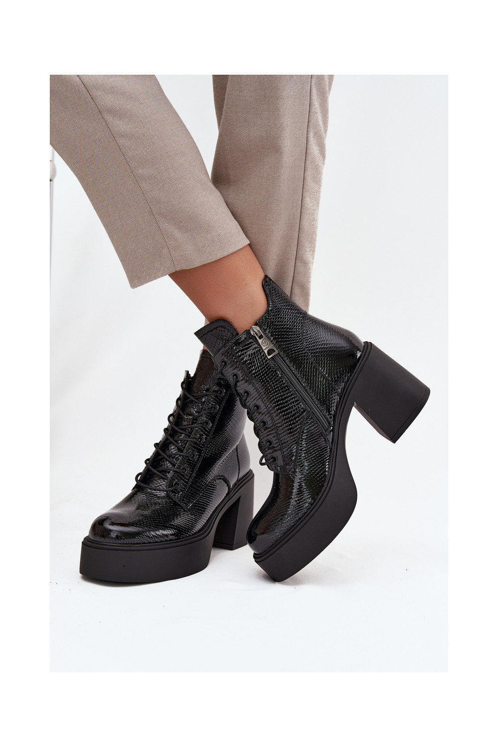 Odas sieviešu zābaki ar platformu Vinceza 66817 ar laku melnā krāsā