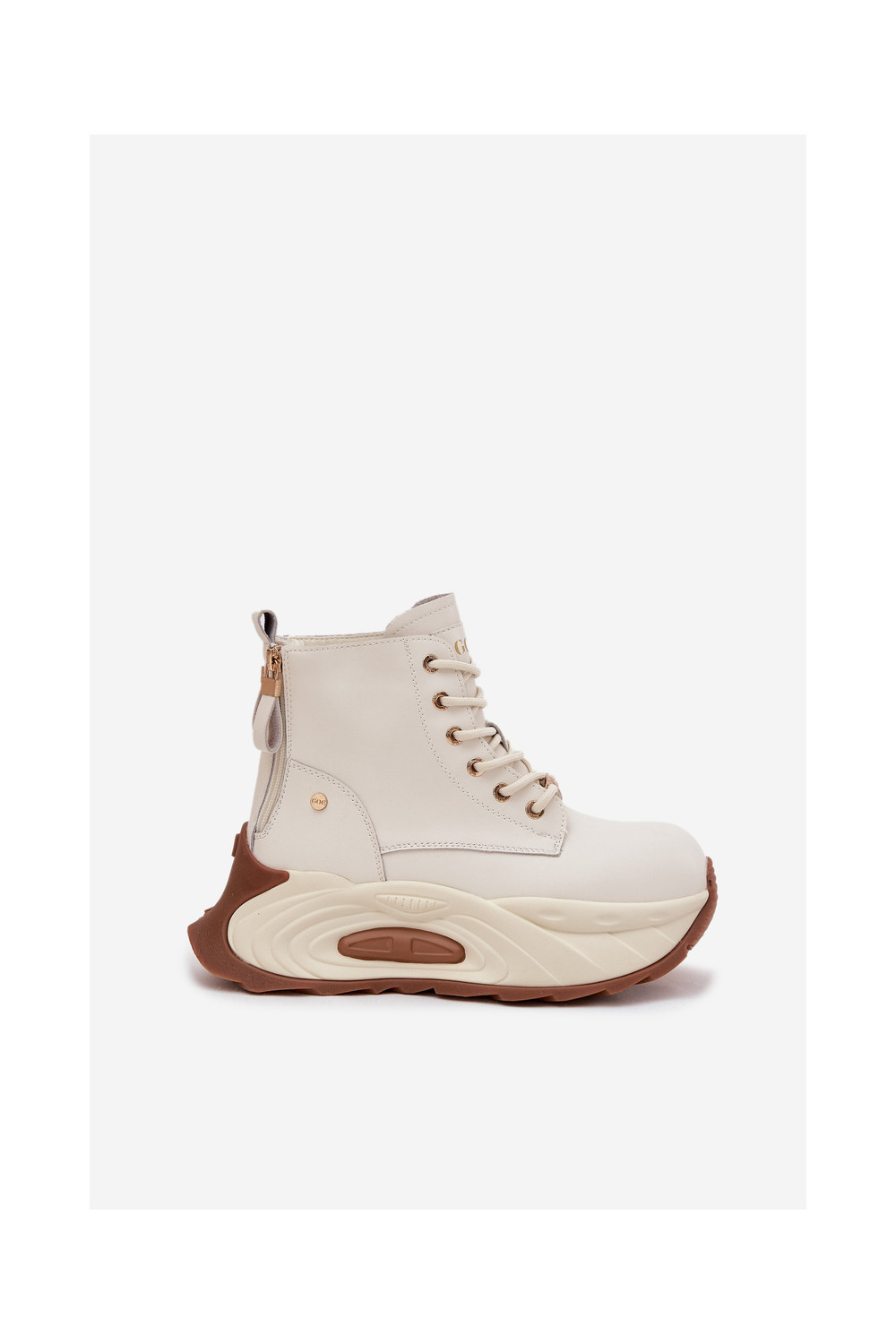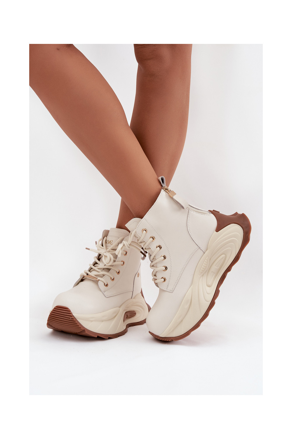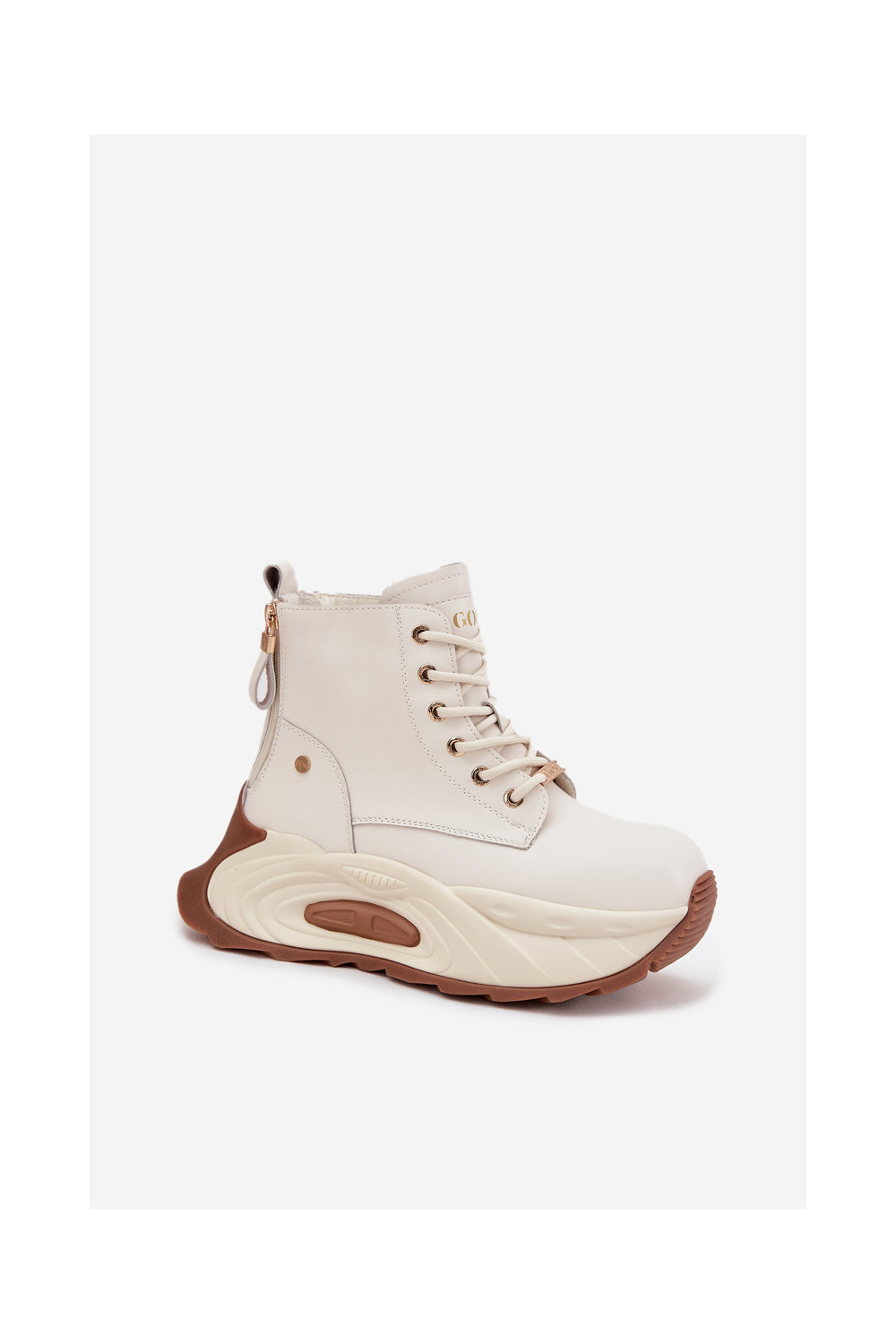 Ādas siltināti sieviešu zābaciņi ar platformu GOE SS2N4300 ziloņkaula krāsā