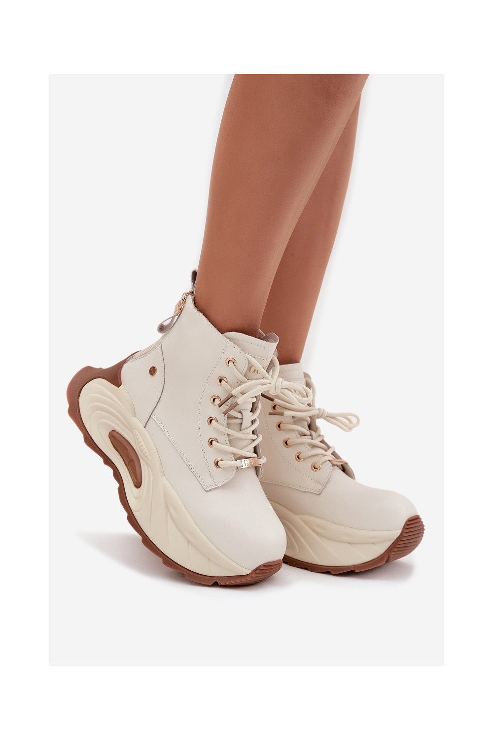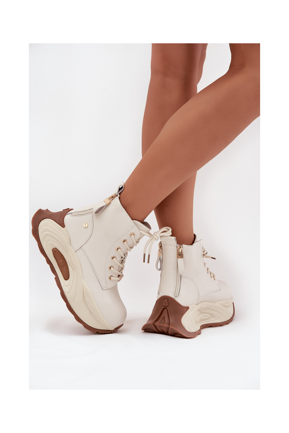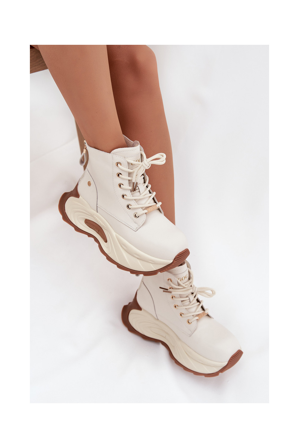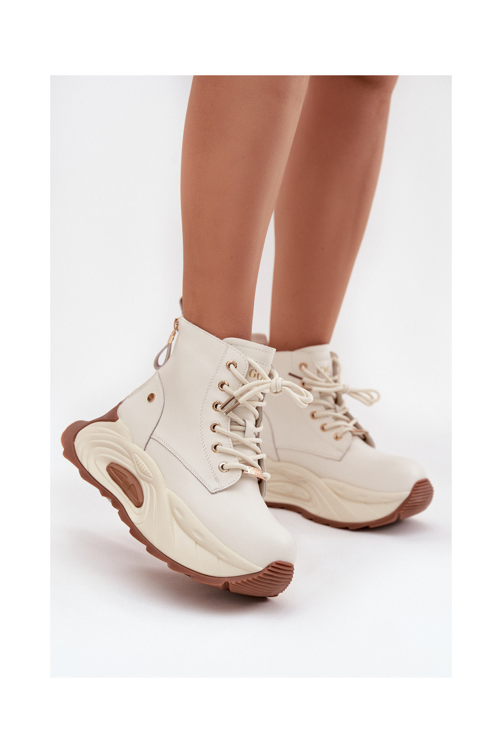 Ādas siltināti sieviešu zābaciņi ar platformu GOE SS2N4300 ziloņkaula krāsā