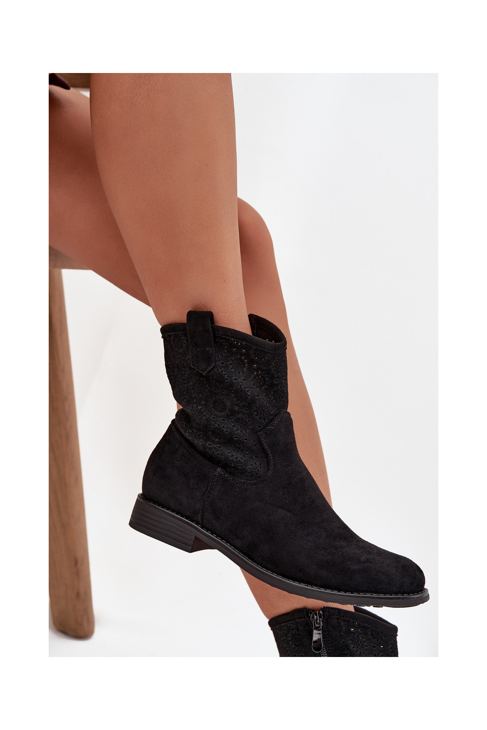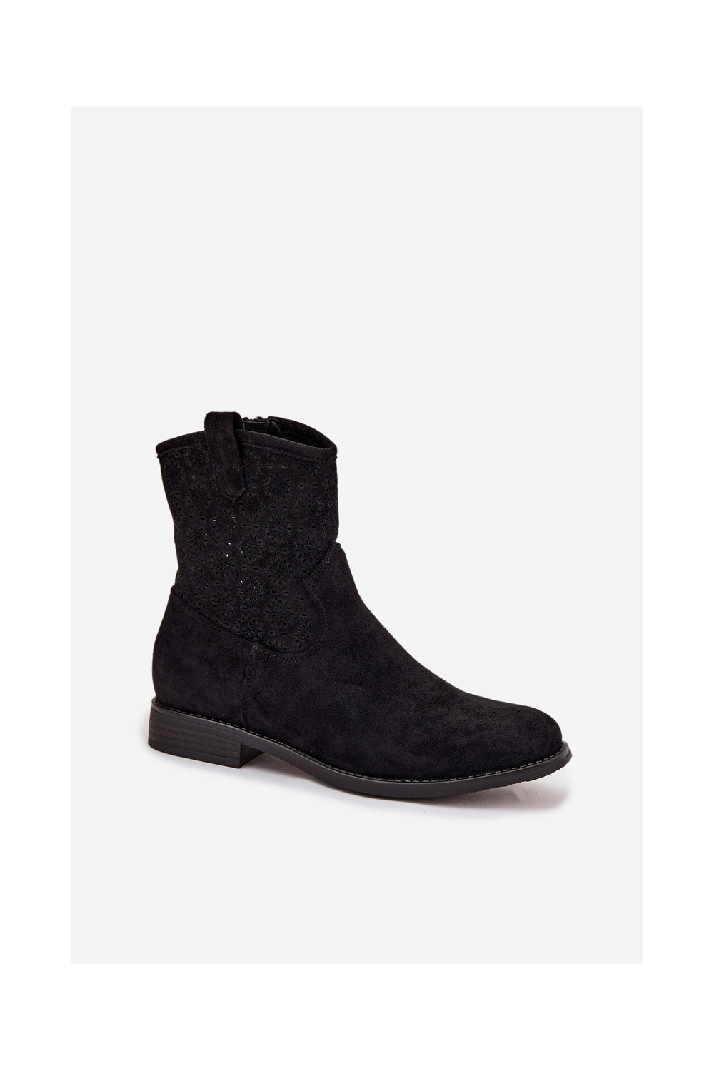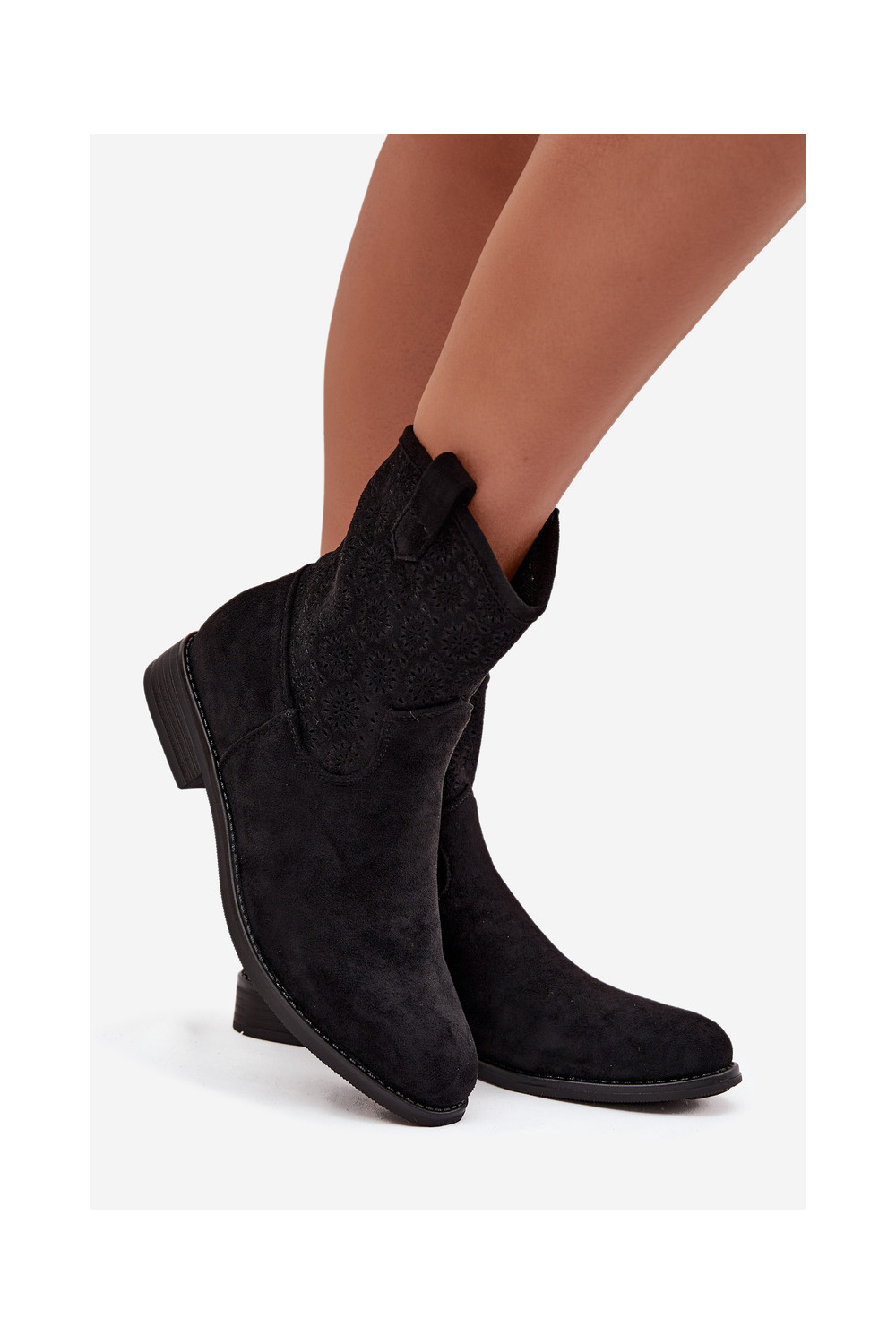 Sieviešu zābaciņi ar platām papēžiem un ažūra elementiem S.Barski HY52-530 melnā krāsā
