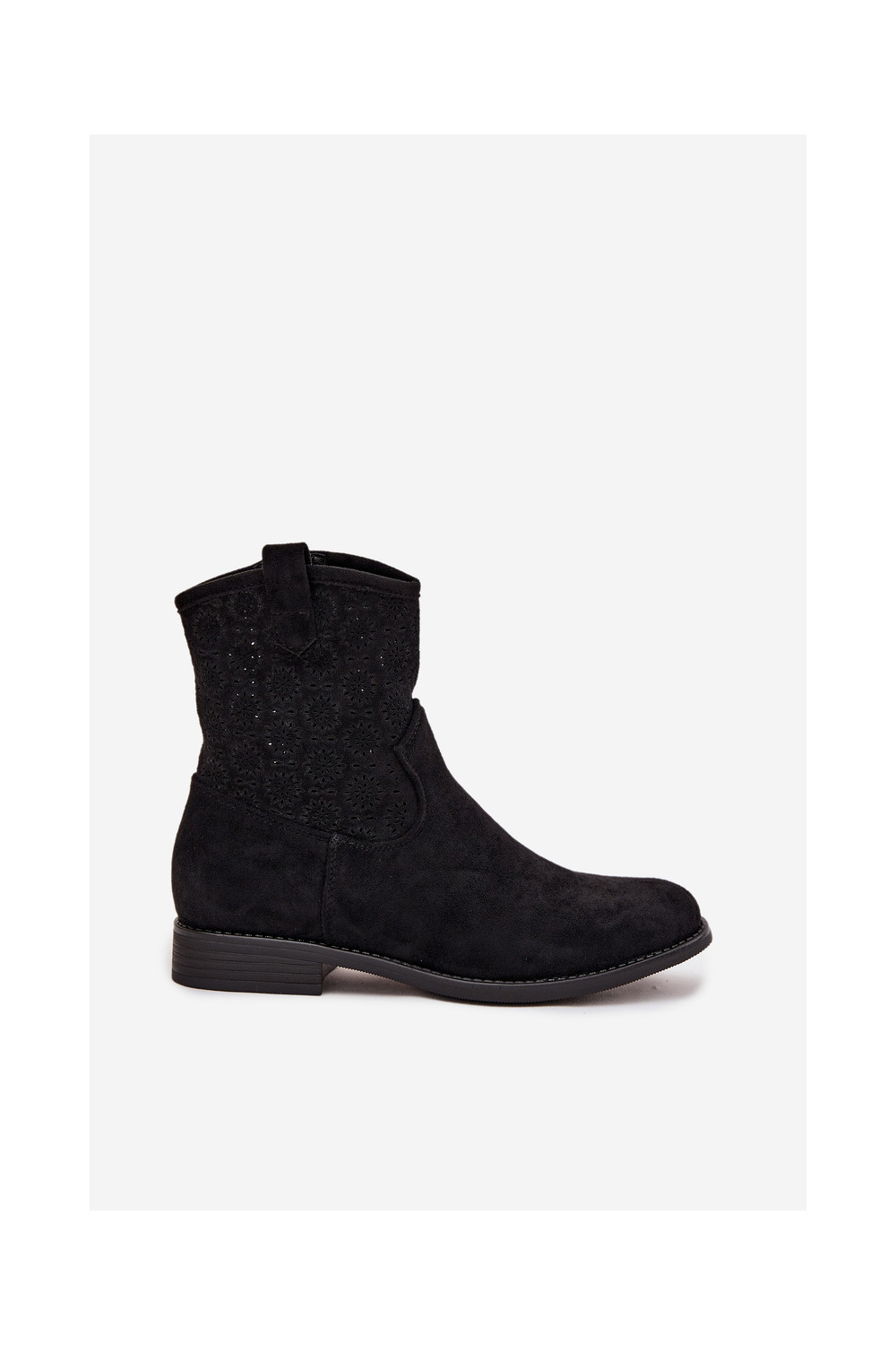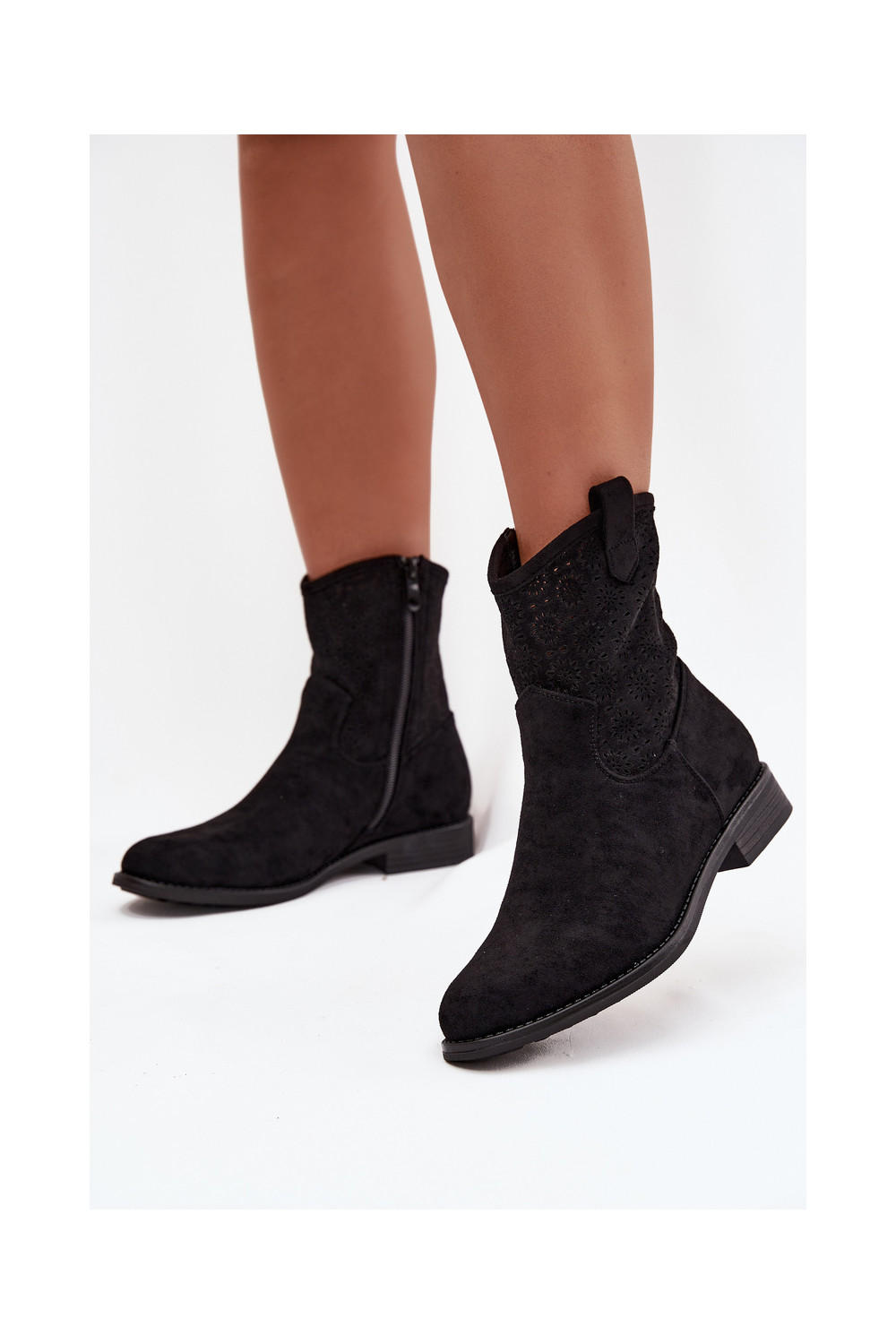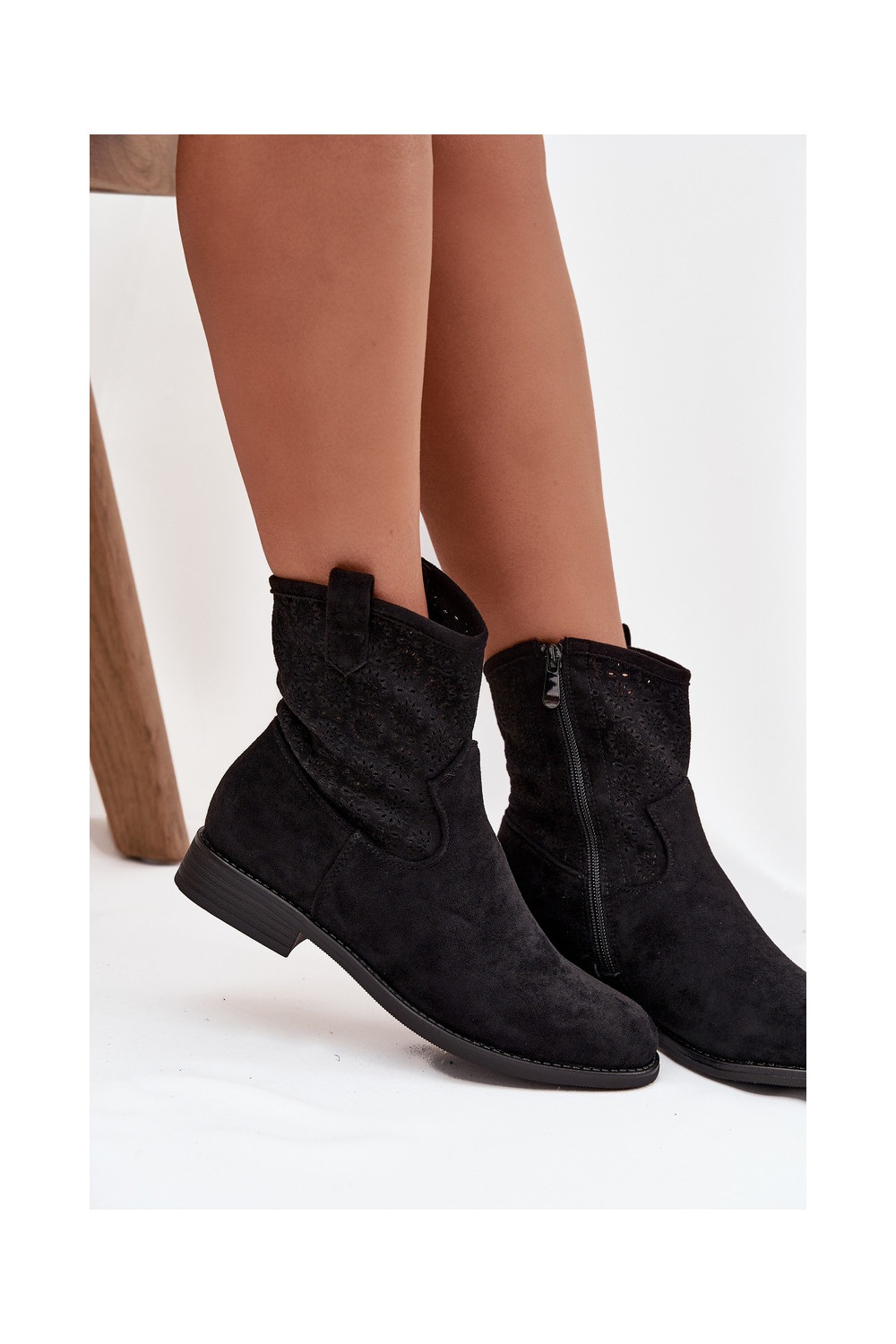 Sieviešu zābaciņi ar platām papēžiem un ažūra elementiem S.Barski HY52-530 melnā krāsā