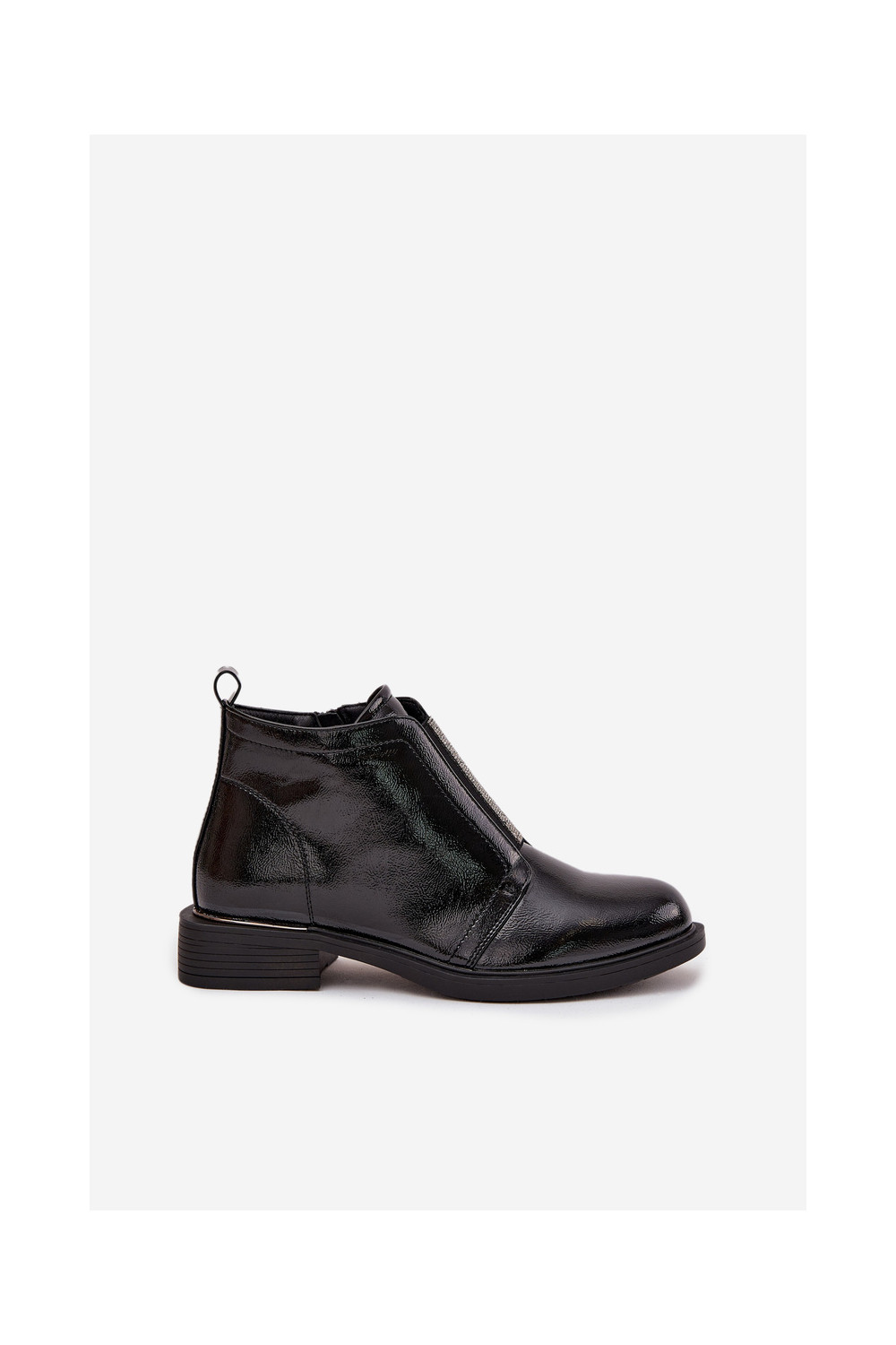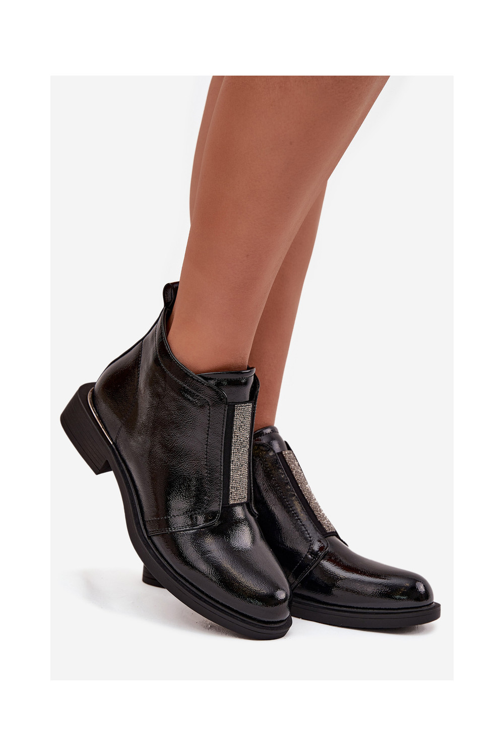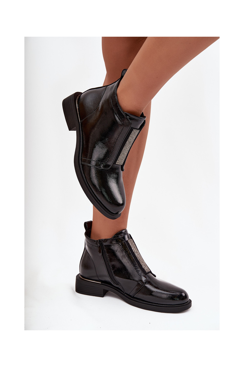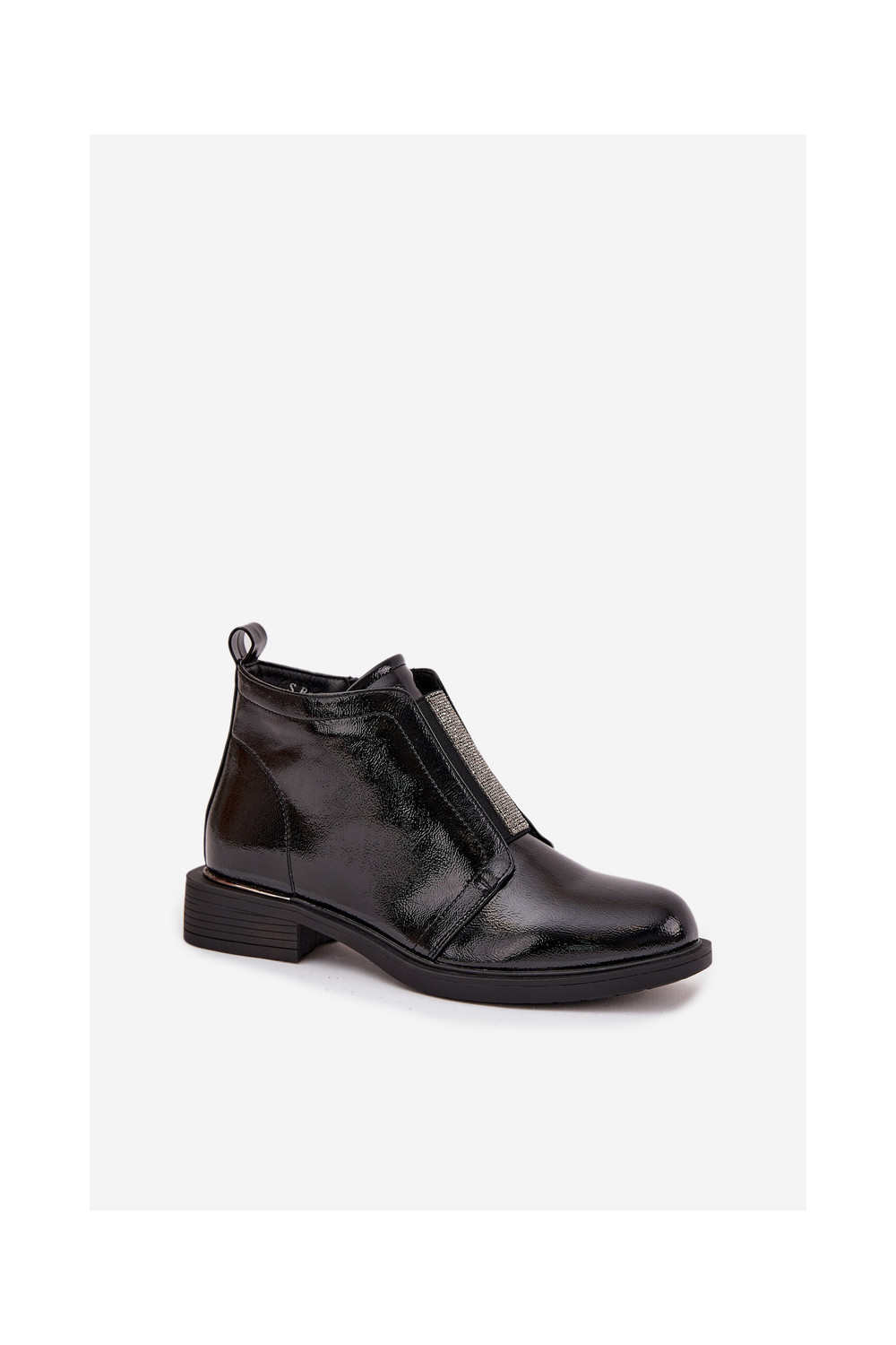 Lakoti siltināti sieviešu zābaciņi uz zemā papēža S.Barski HY52-506 melnā krāsā