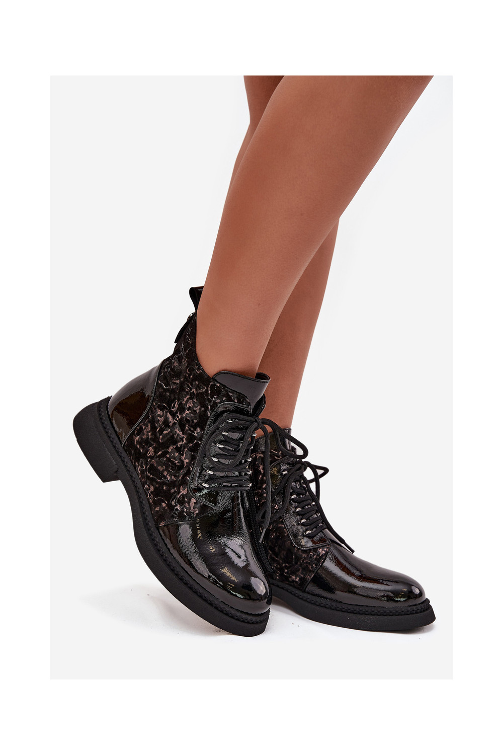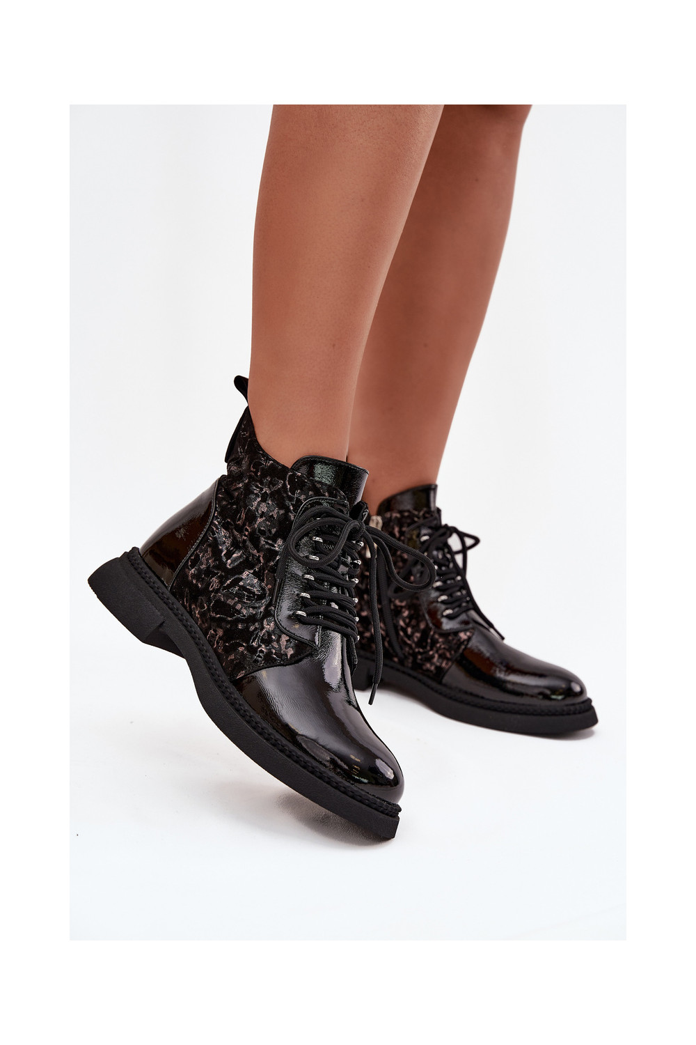 Lakuoti silti sieviešu zābaciņi D&A CR52-613 melnā krāsā