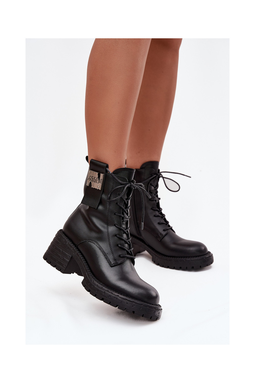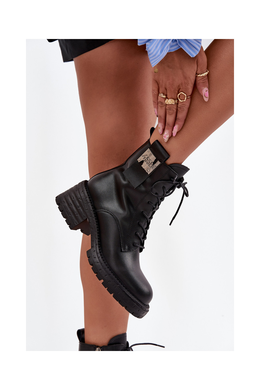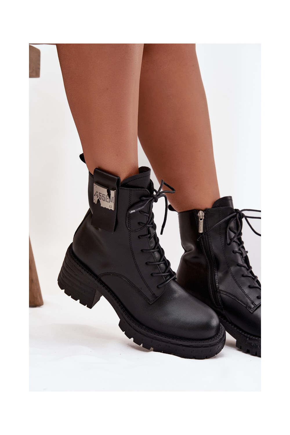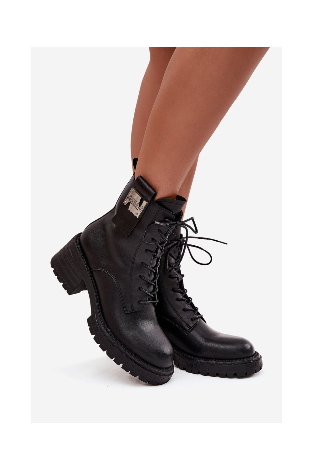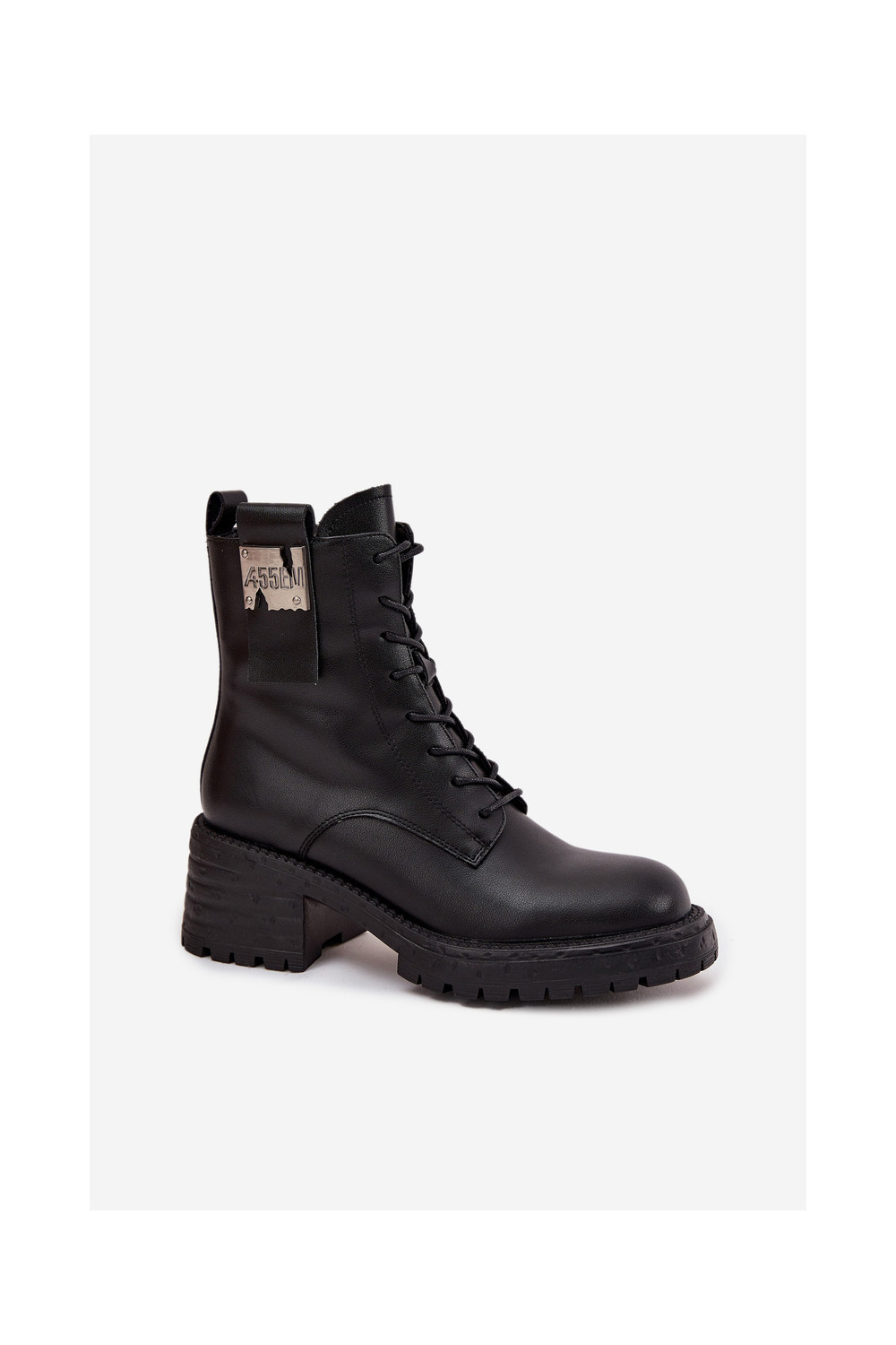 Ādas sieviešu darba zābaciņi ar platformu un greznām detaļām Artiker 57C0214 melnā krāsā