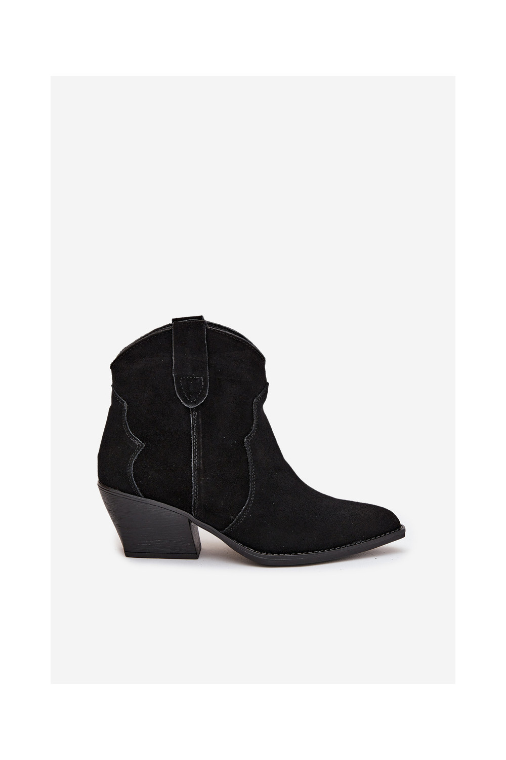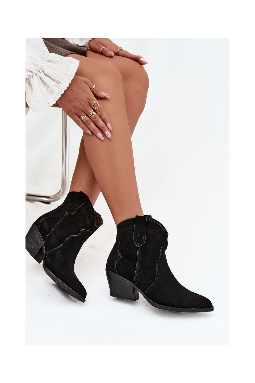 Ievilktie cowboy stila sieviešu zābaciņi no dabīgā zamša Beretta melnā krāsā