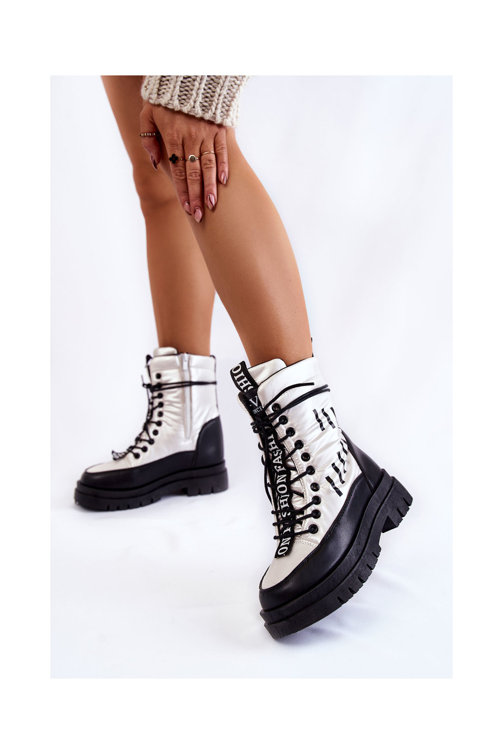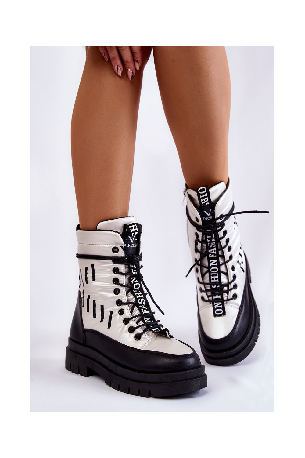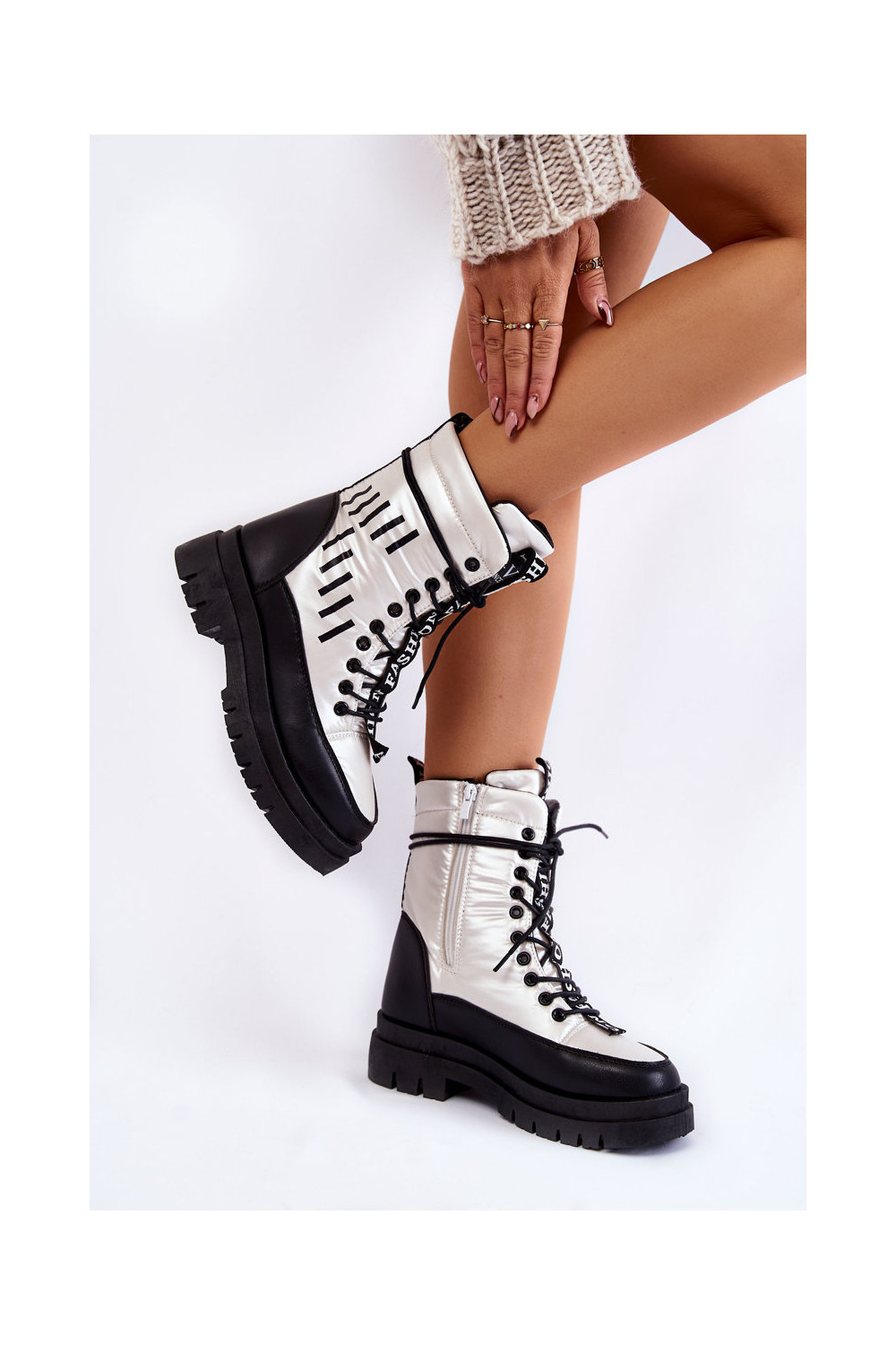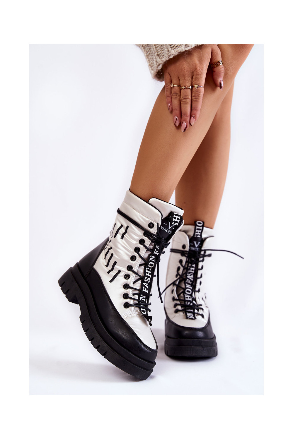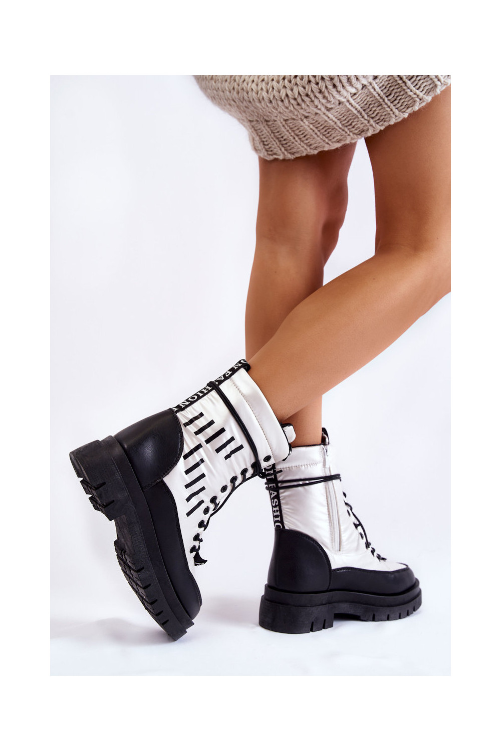 Sieviešu sniega zābaki ar šņorēm baltā-melnā krāsā, modelis Sharmen