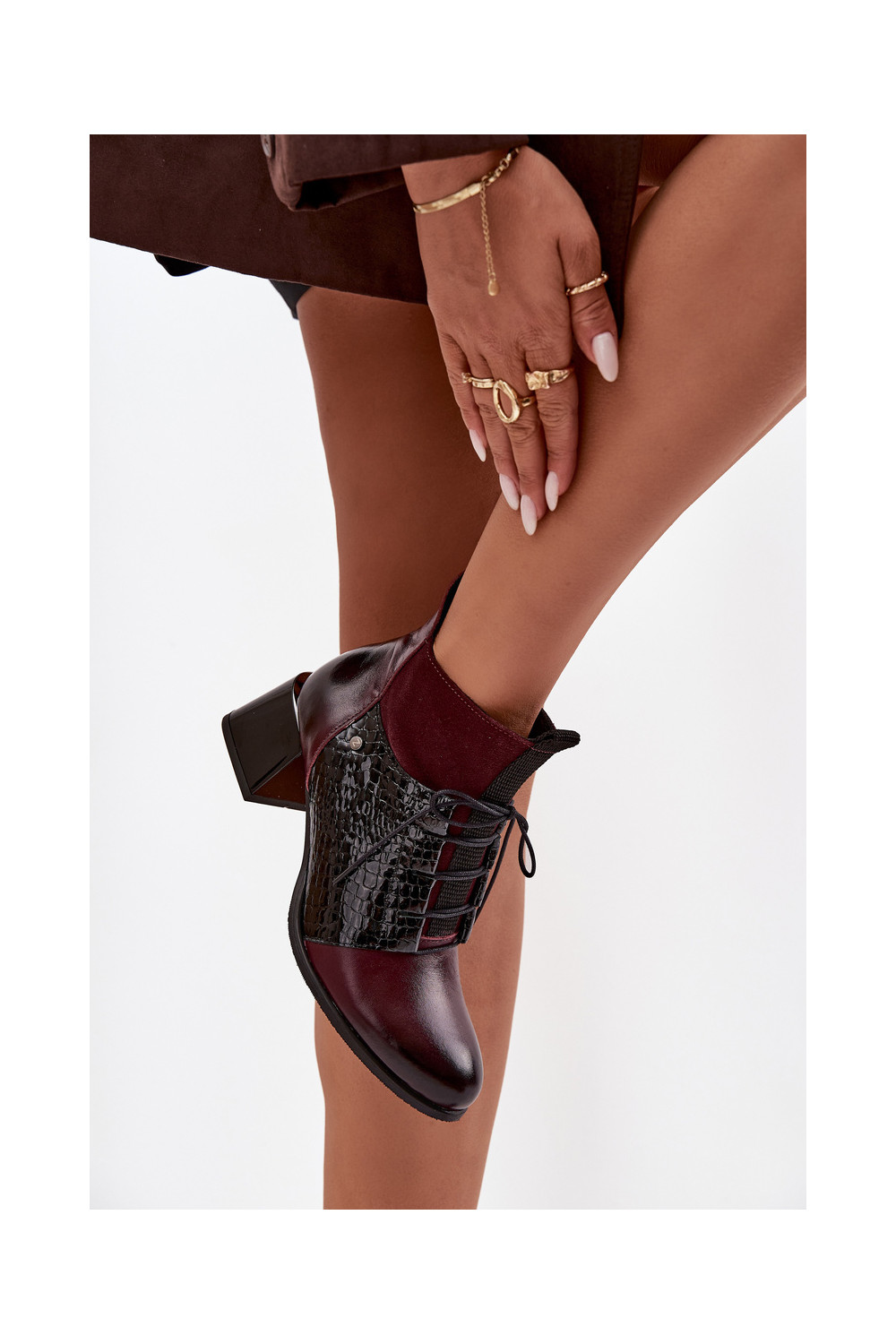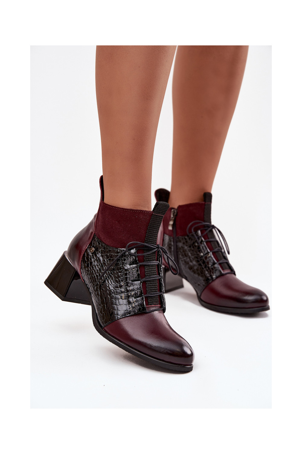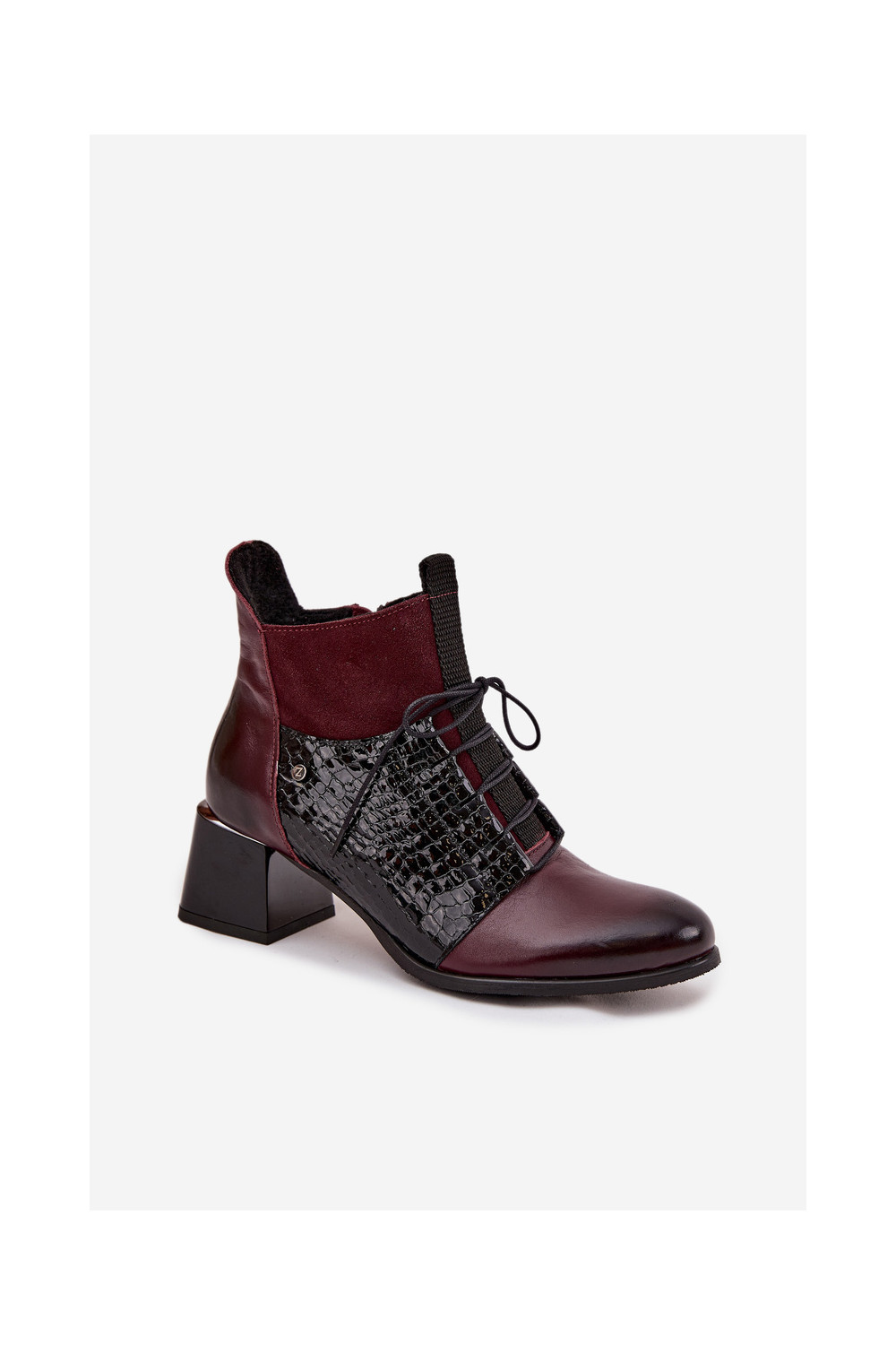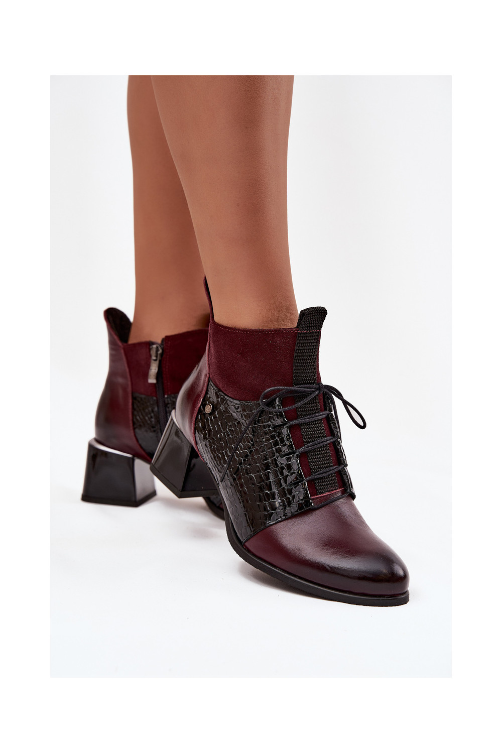 Zazoo 60503 mākslīgās ādas zābaki ar papēžiem siltināti bordo krāsā