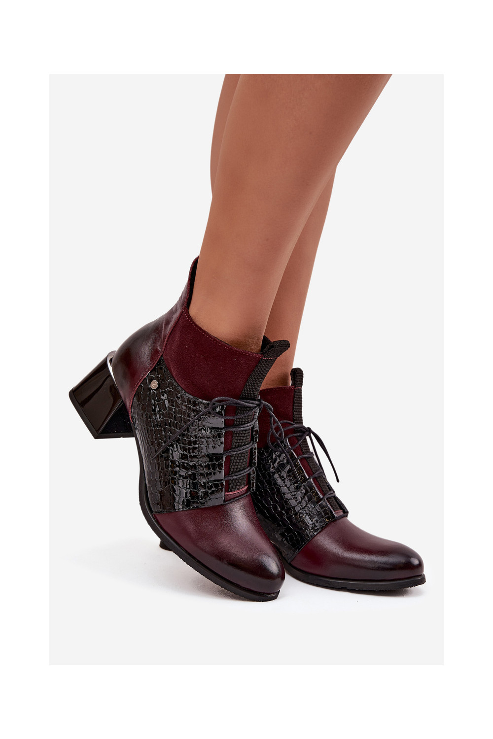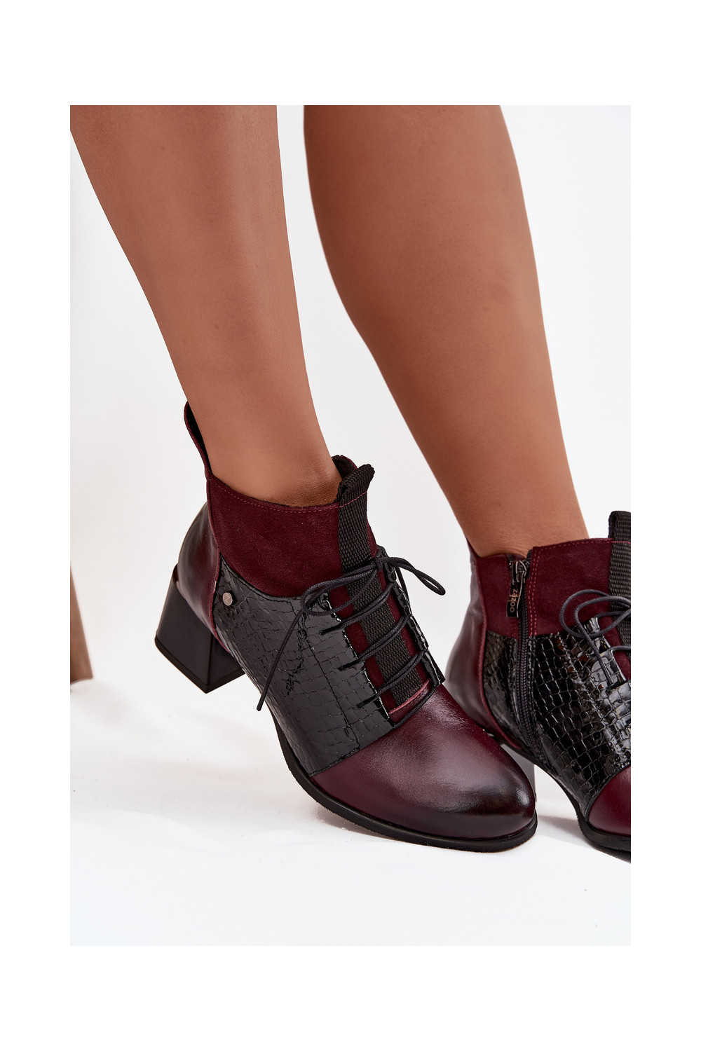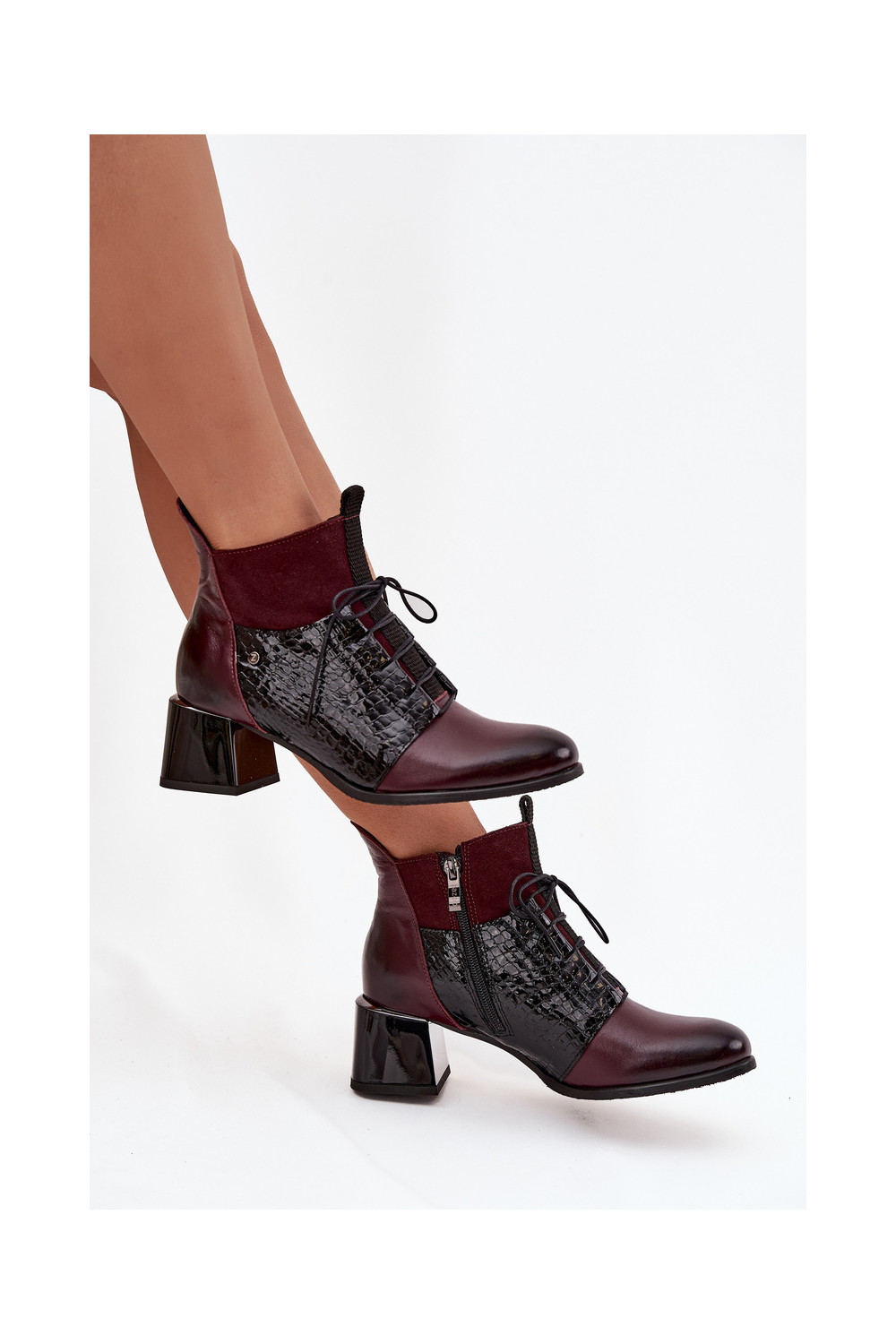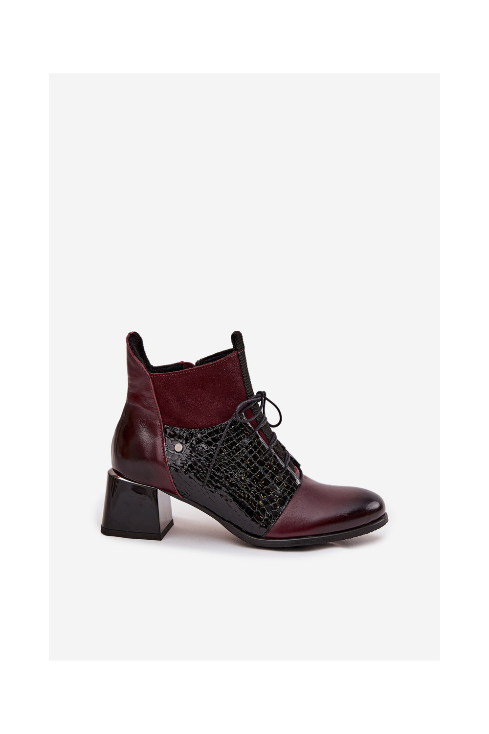 Zazoo 60503 mākslīgās ādas zābaki ar papēžiem siltināti bordo krāsā