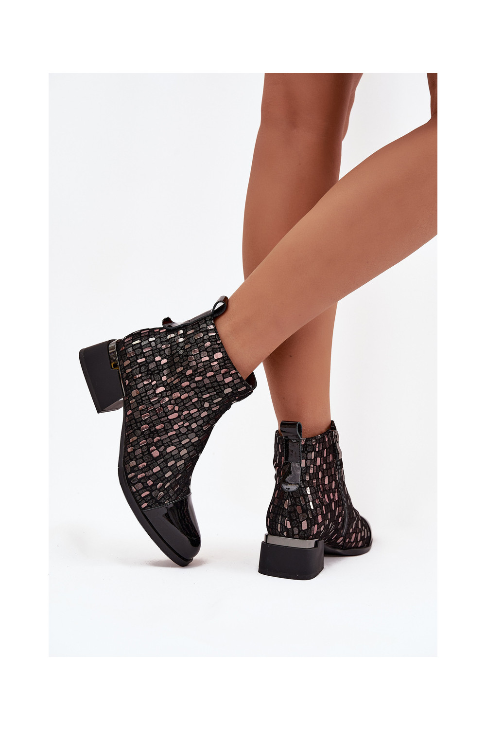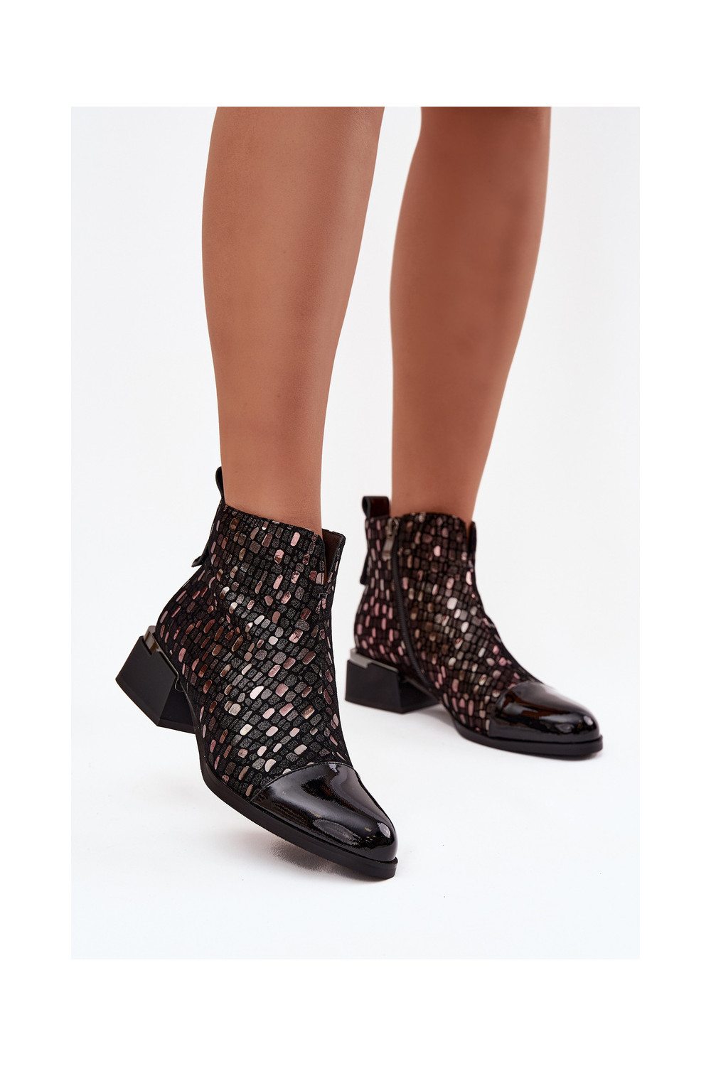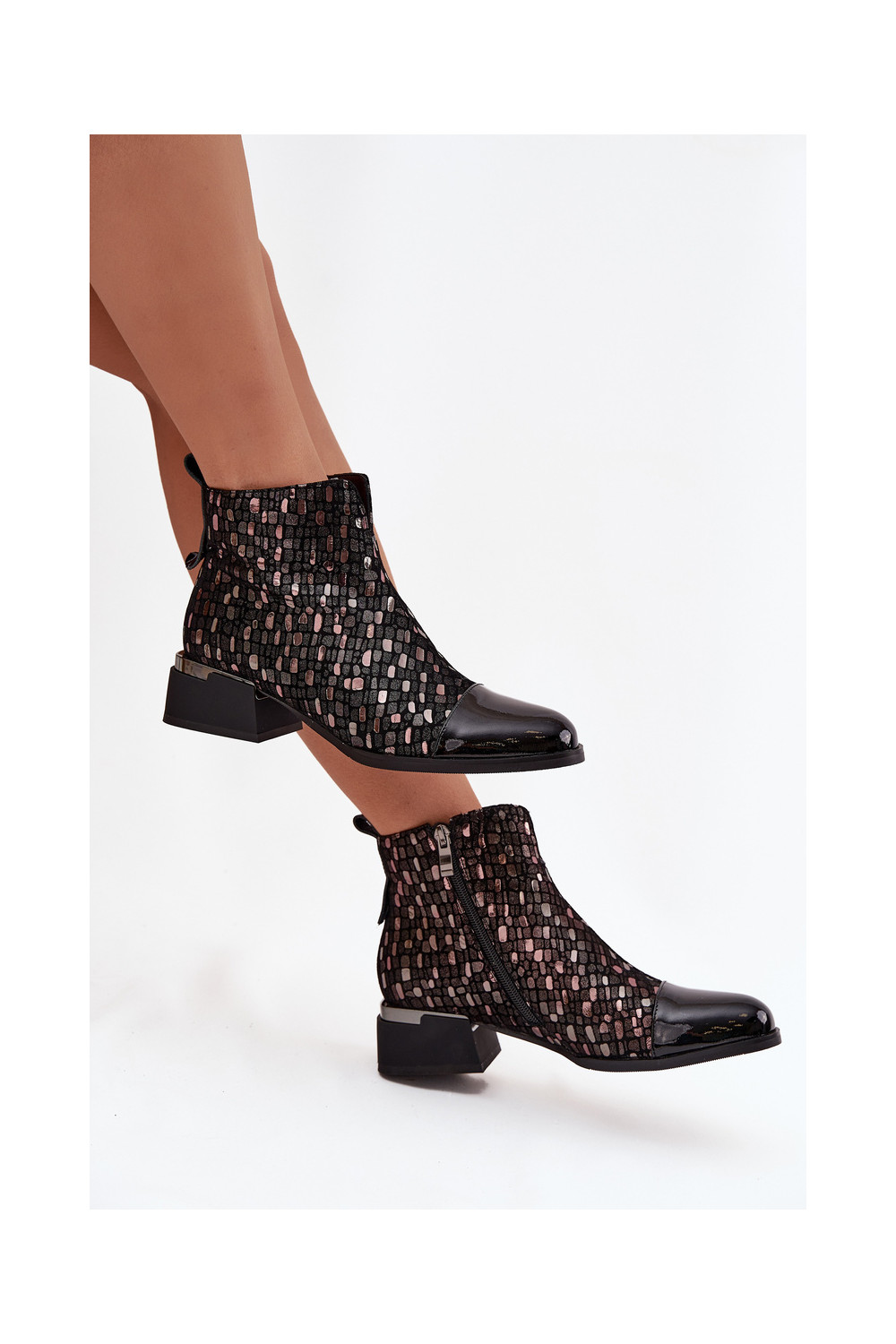Sieviešu zābaki no dabīgās ādas ar lakota efekta uz zema papēža D&A LZ52-960 melnā krāsā