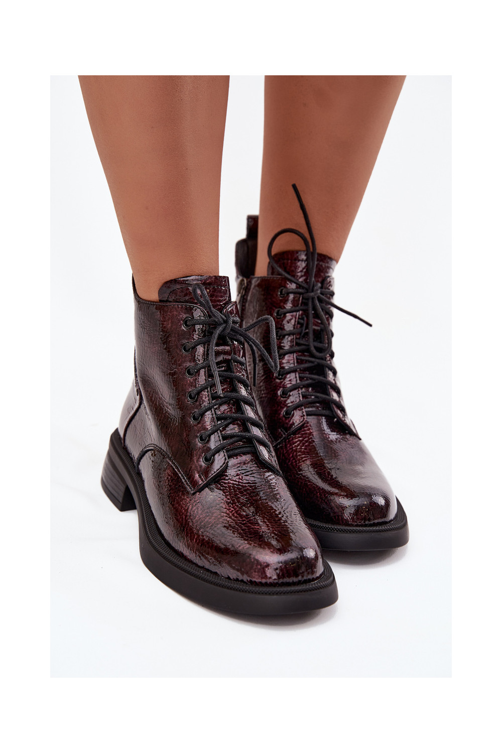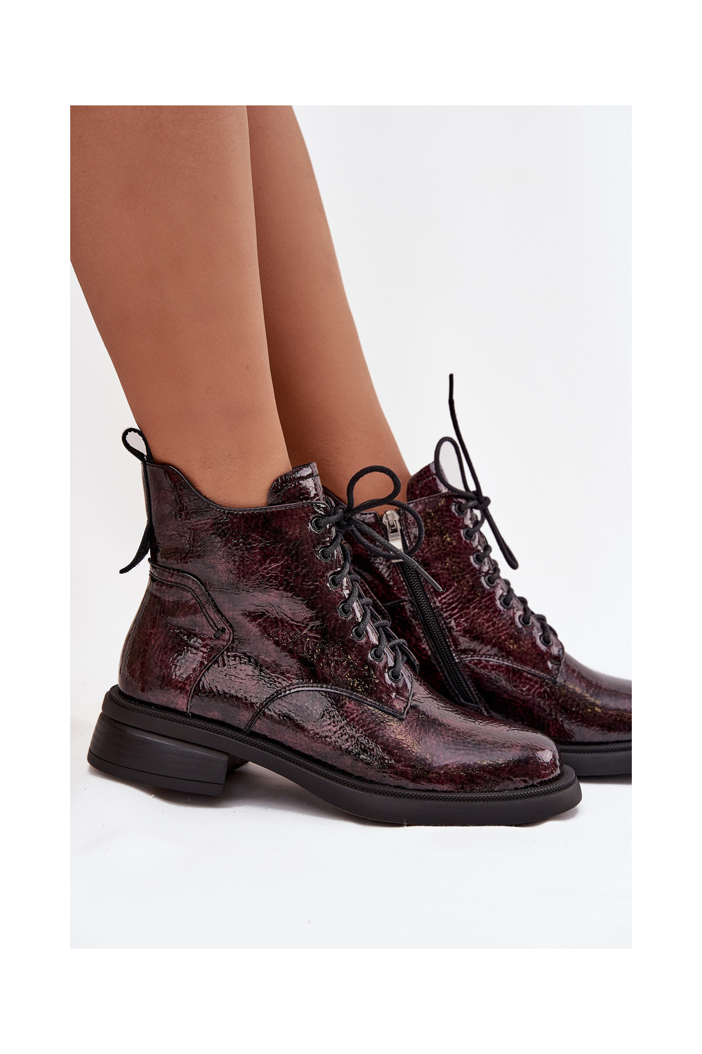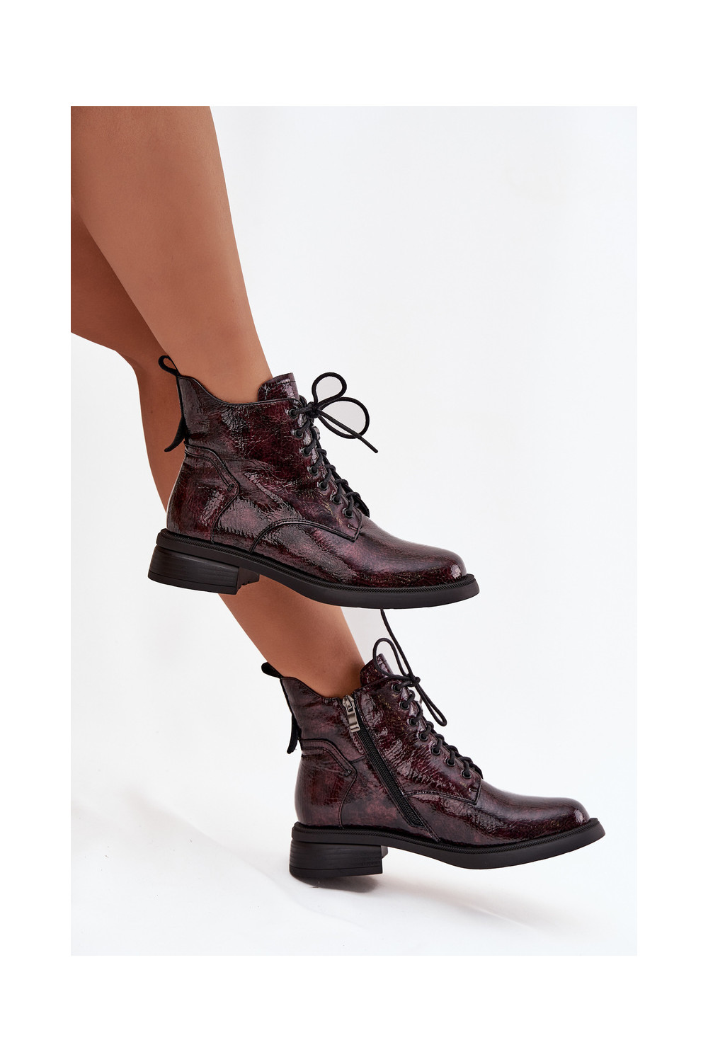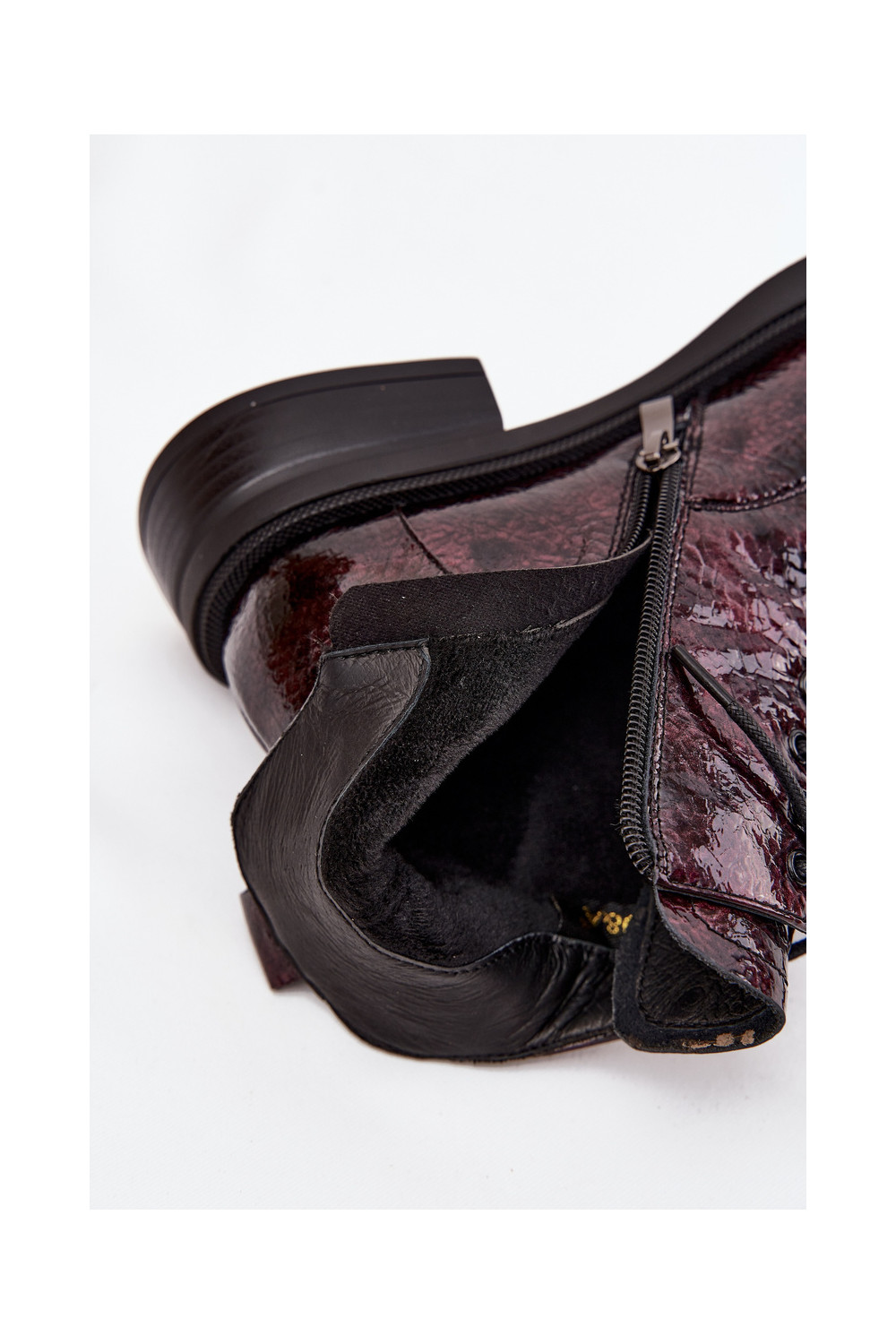 Mākslīgās ādas sieviešu zābaki ar lakota efekta uz papēža D&A LZ52-954 bordo krāsā