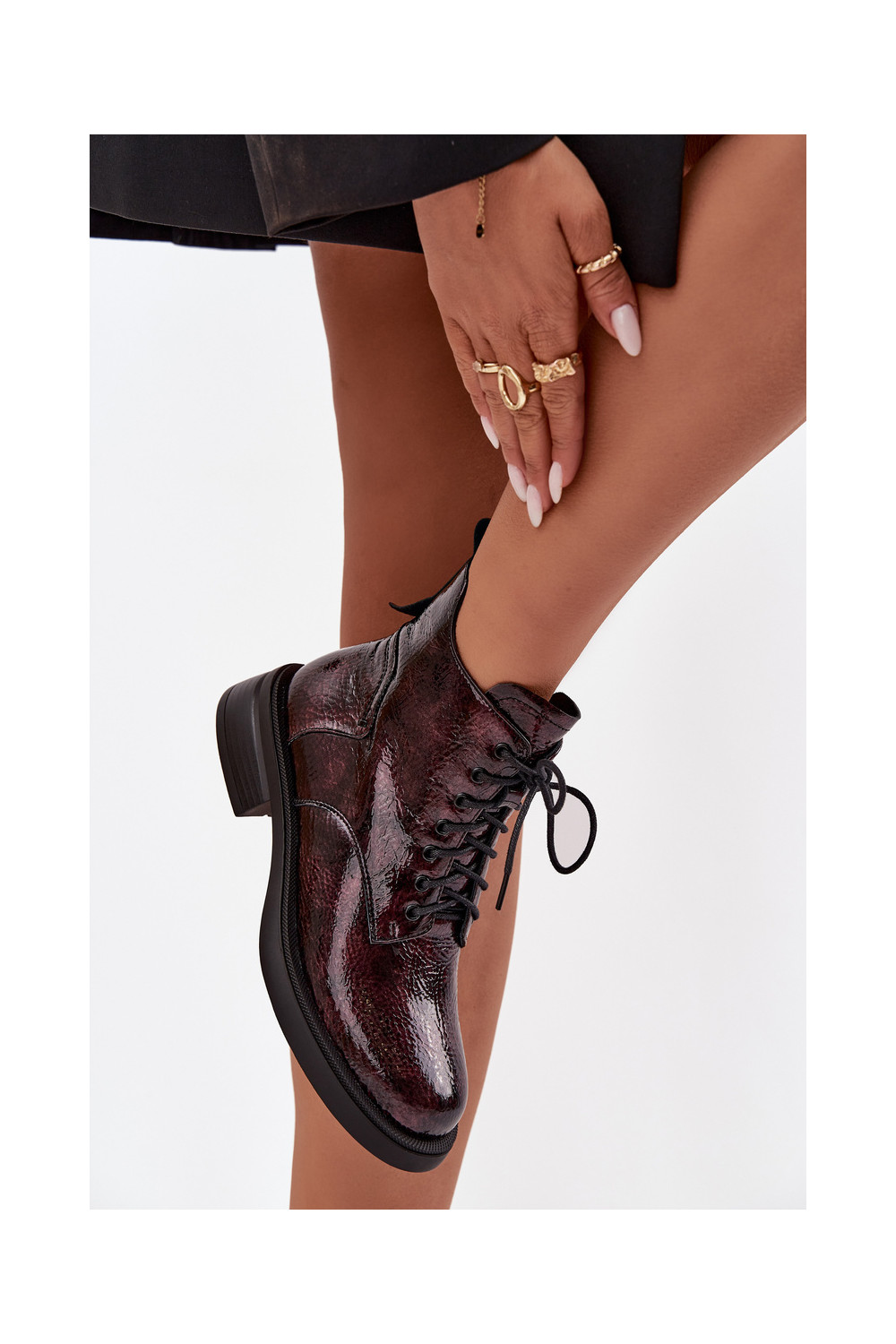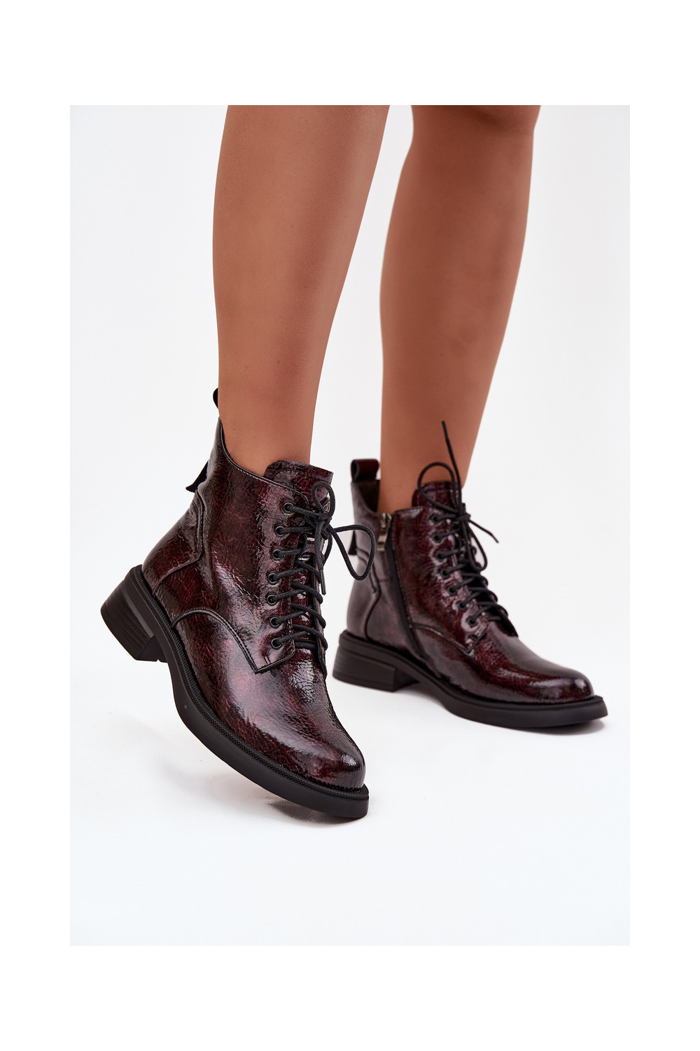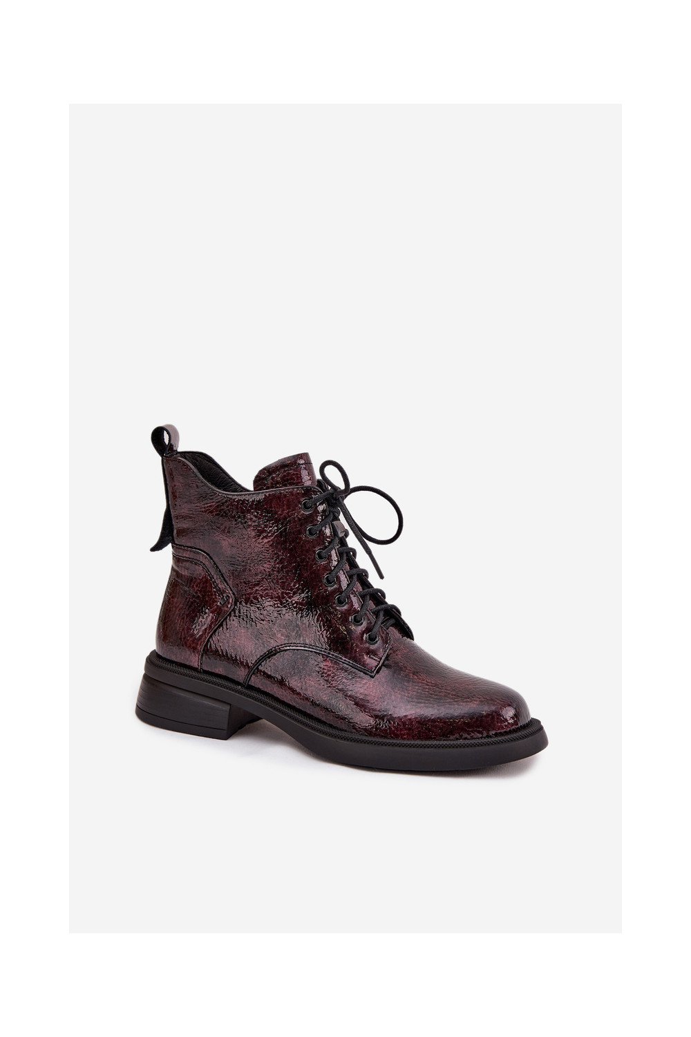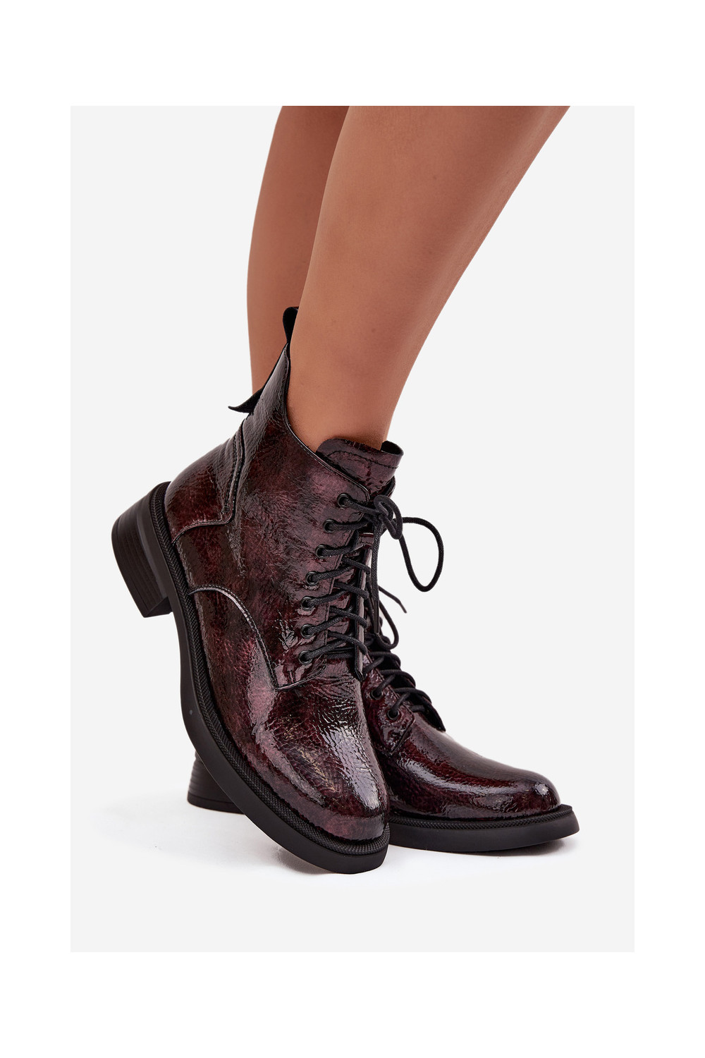 Mākslīgās ādas sieviešu zābaki ar lakota efekta uz papēža D&A LZ52-954 bordo krāsā