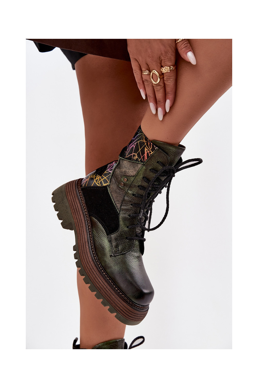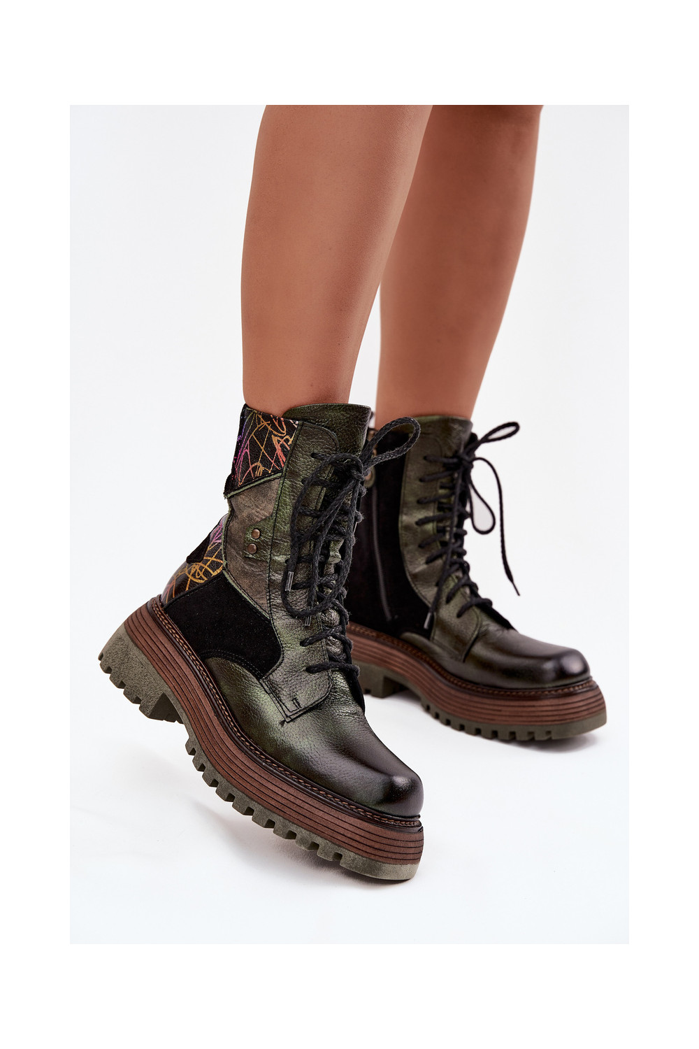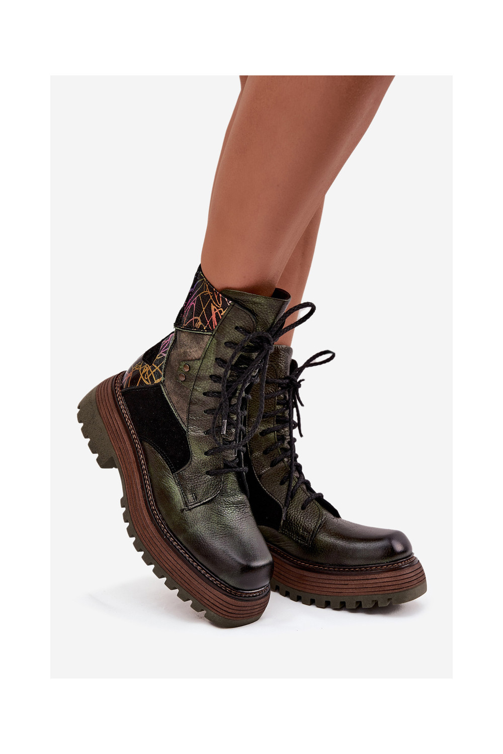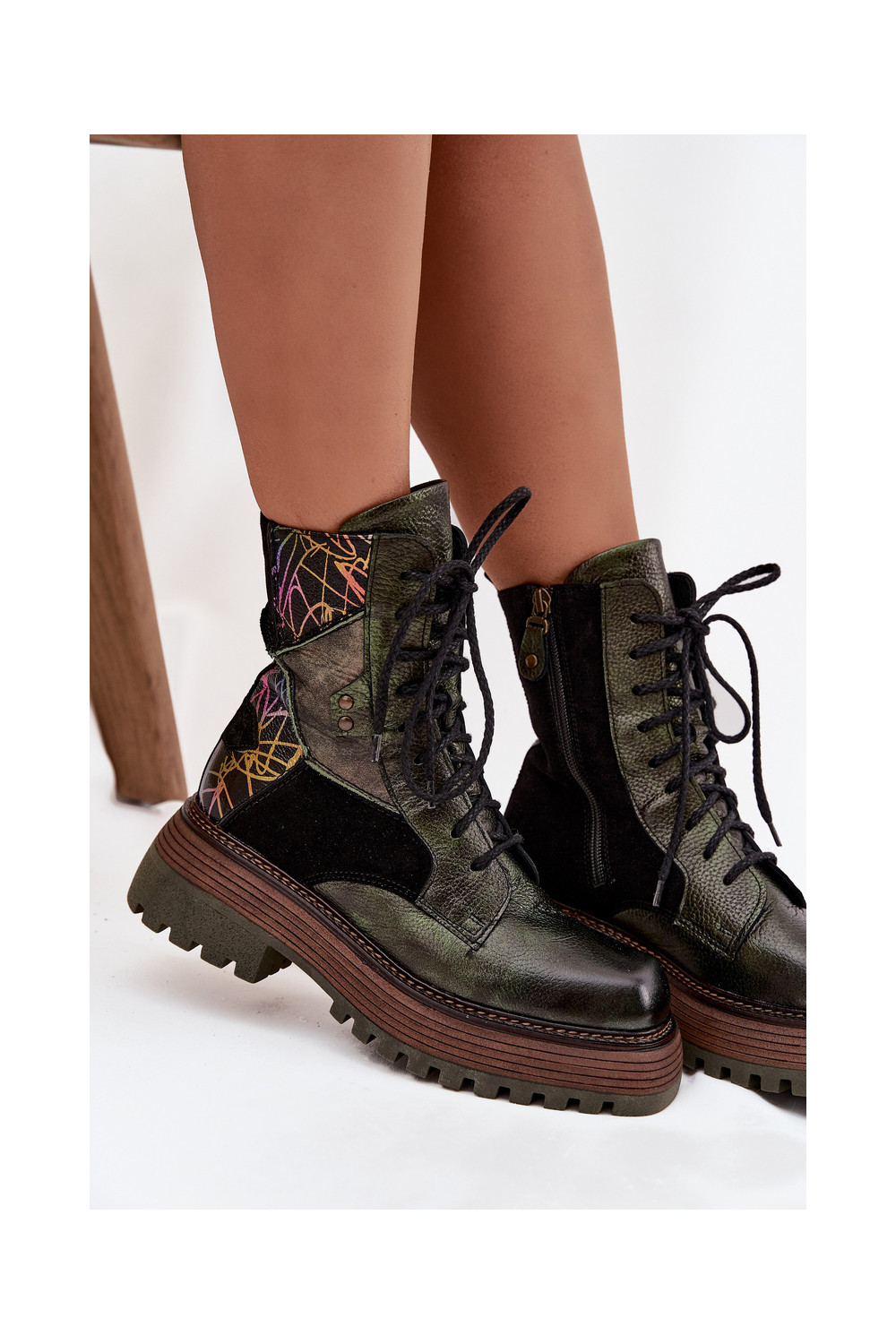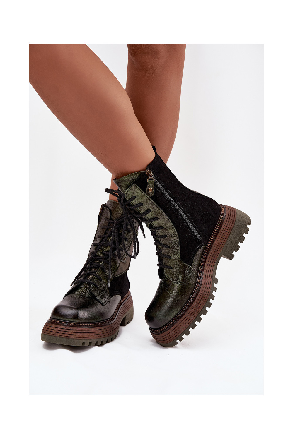 Ādas darba sieviešu potīšu zābaki ar platformu Tai turiciejka 07104-09 haki krāsā