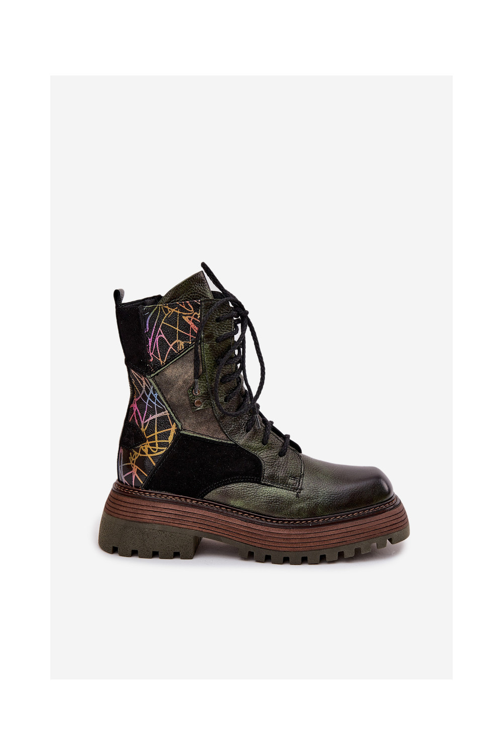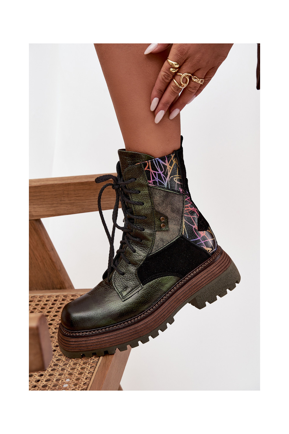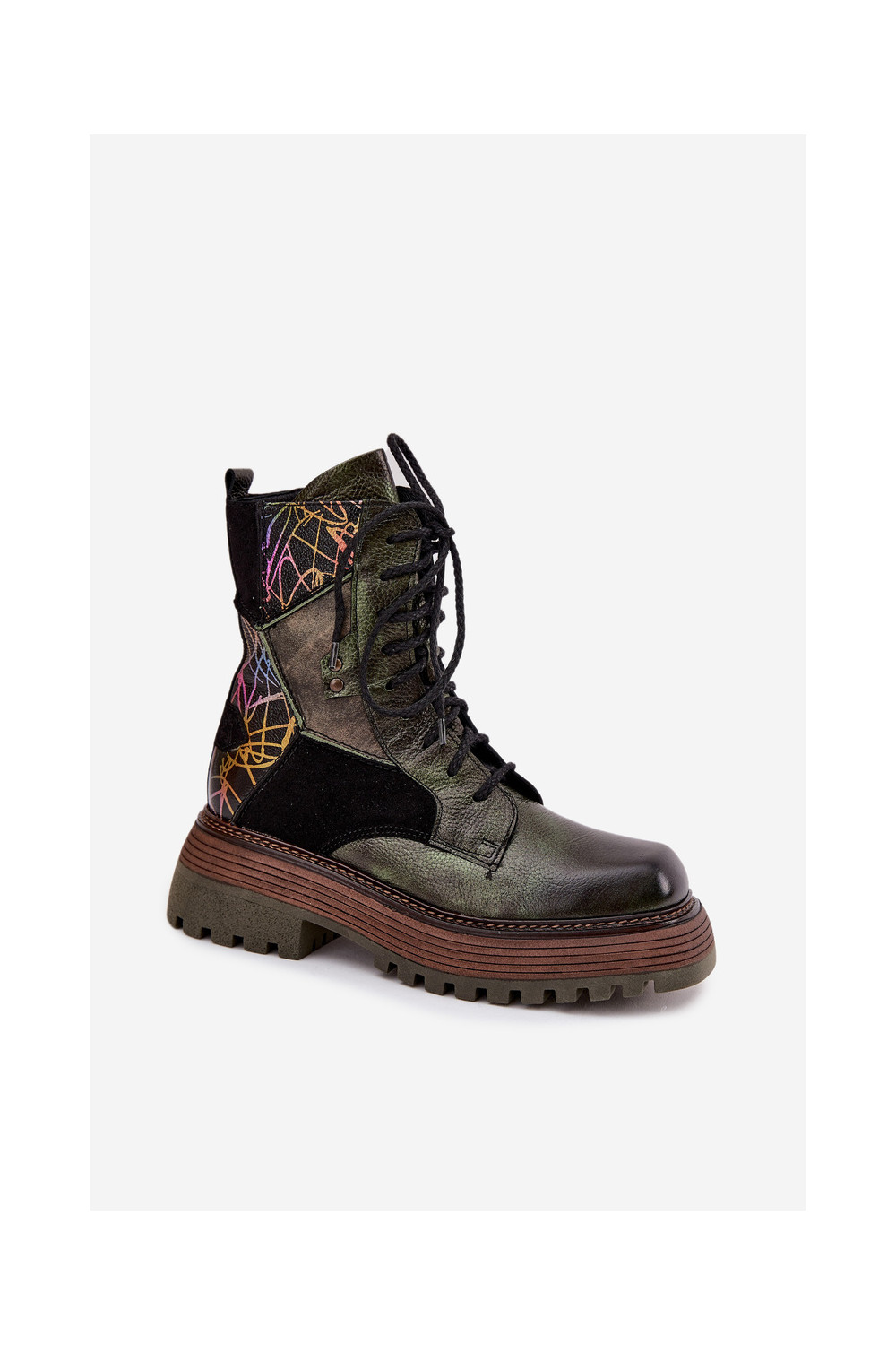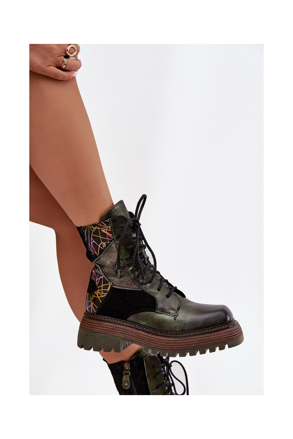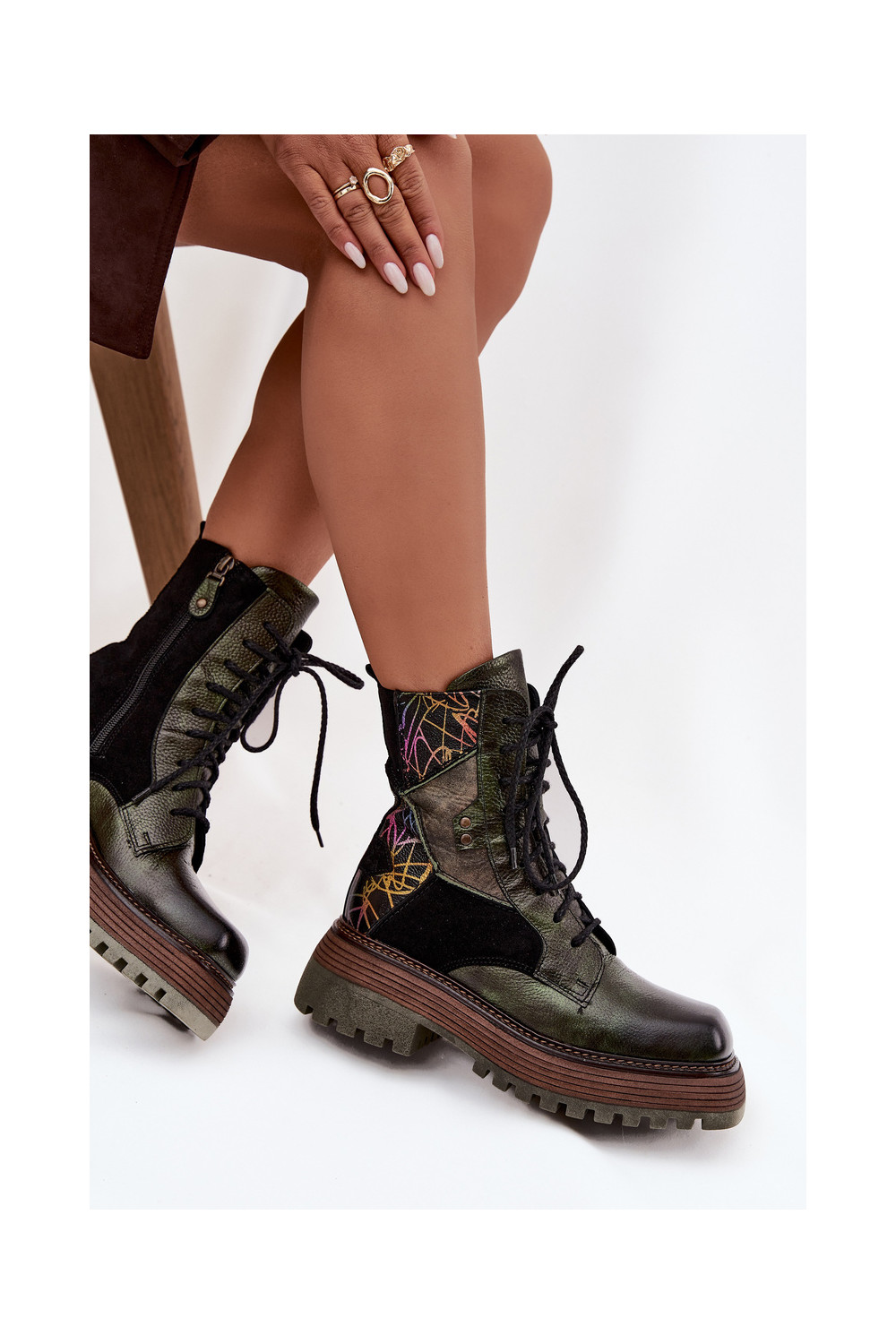 Ādas darba sieviešu potīšu zābaki ar platformu Tai turiciejka 07104-09 haki krāsā