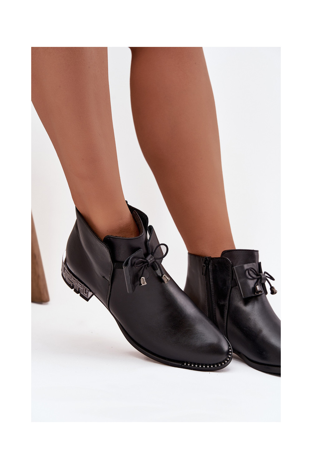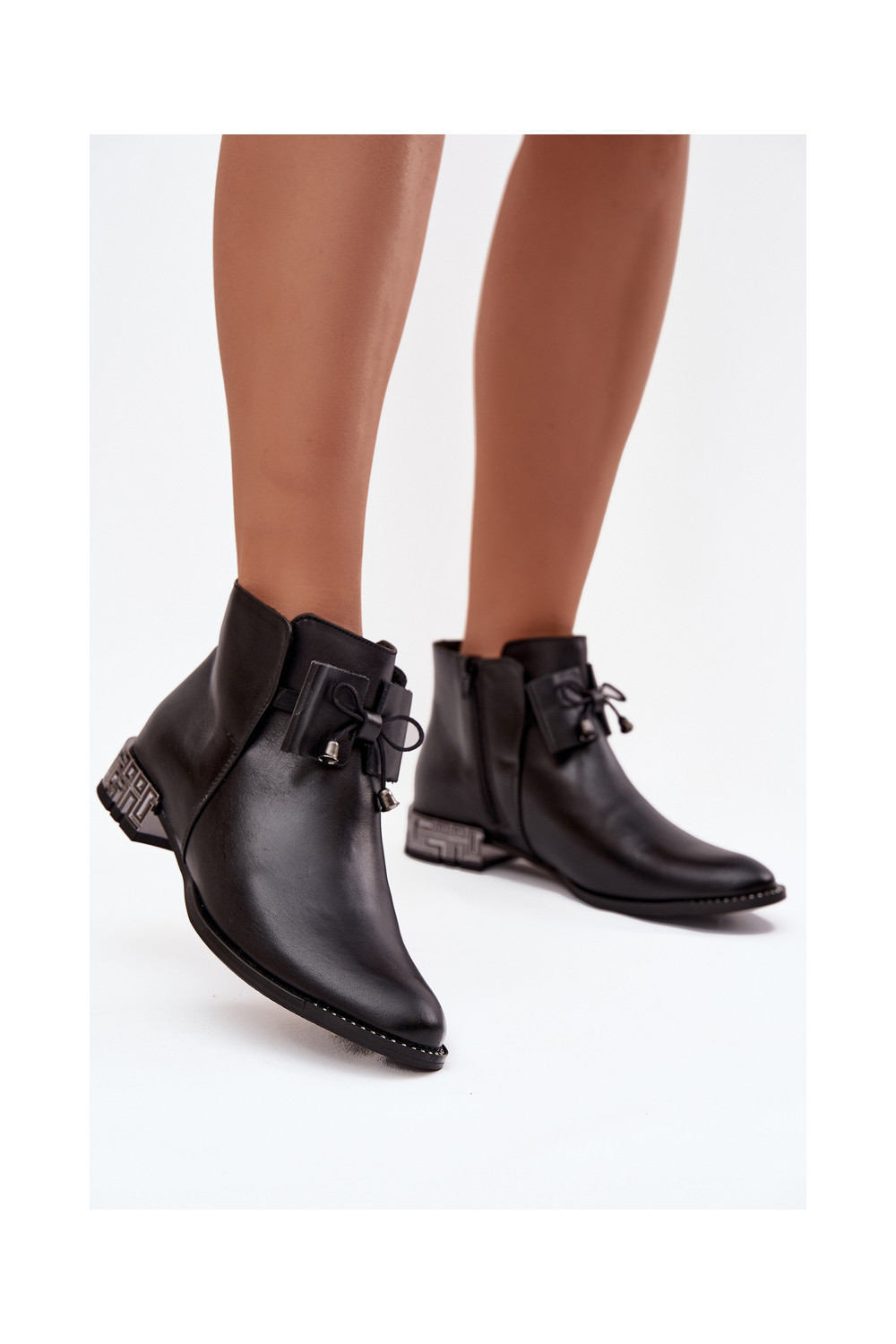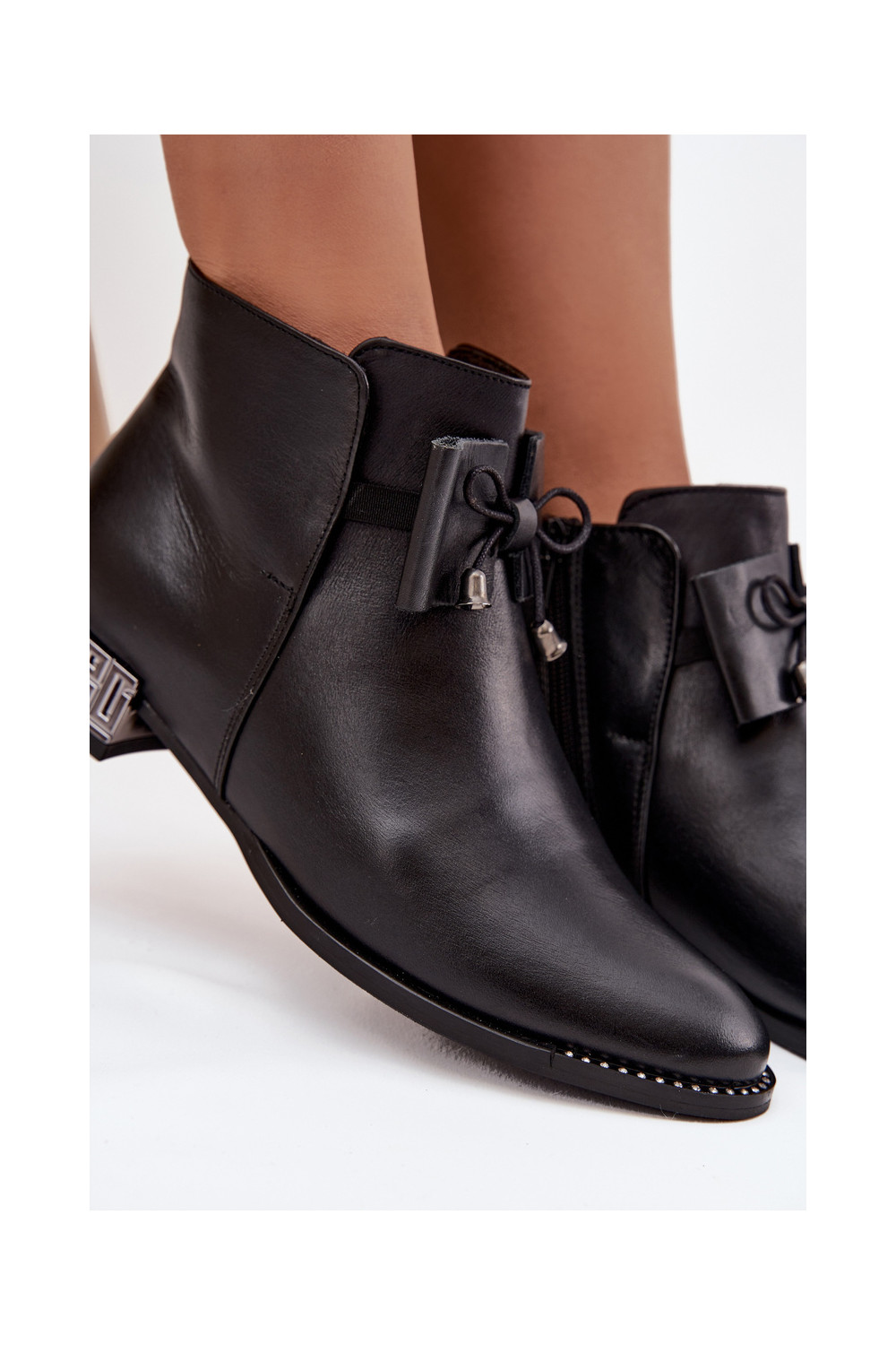 Sieviešu zābaki no dabīgās ādas uz zema papēža Zazoo 1396 melnā krāsā