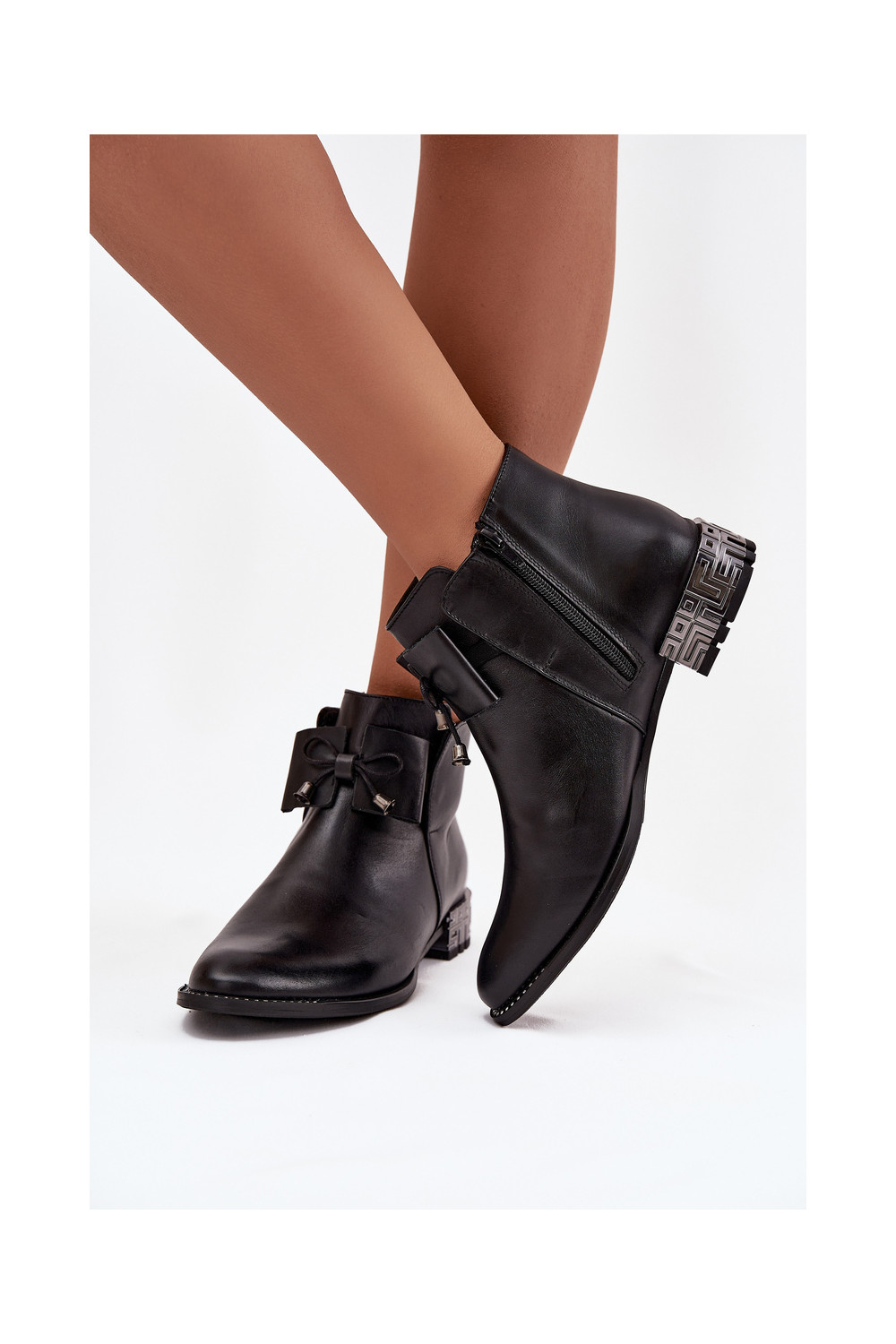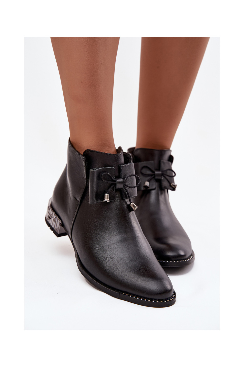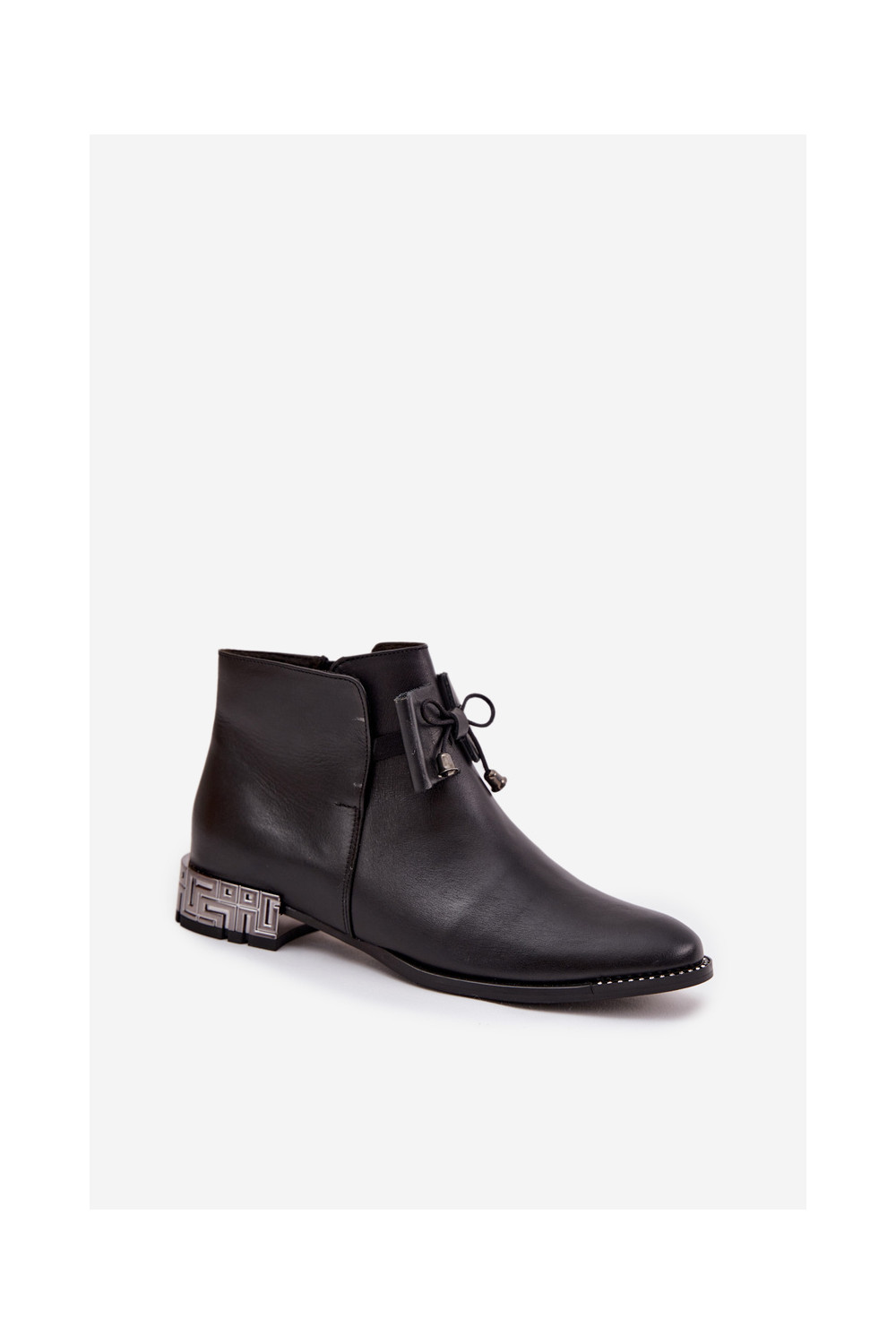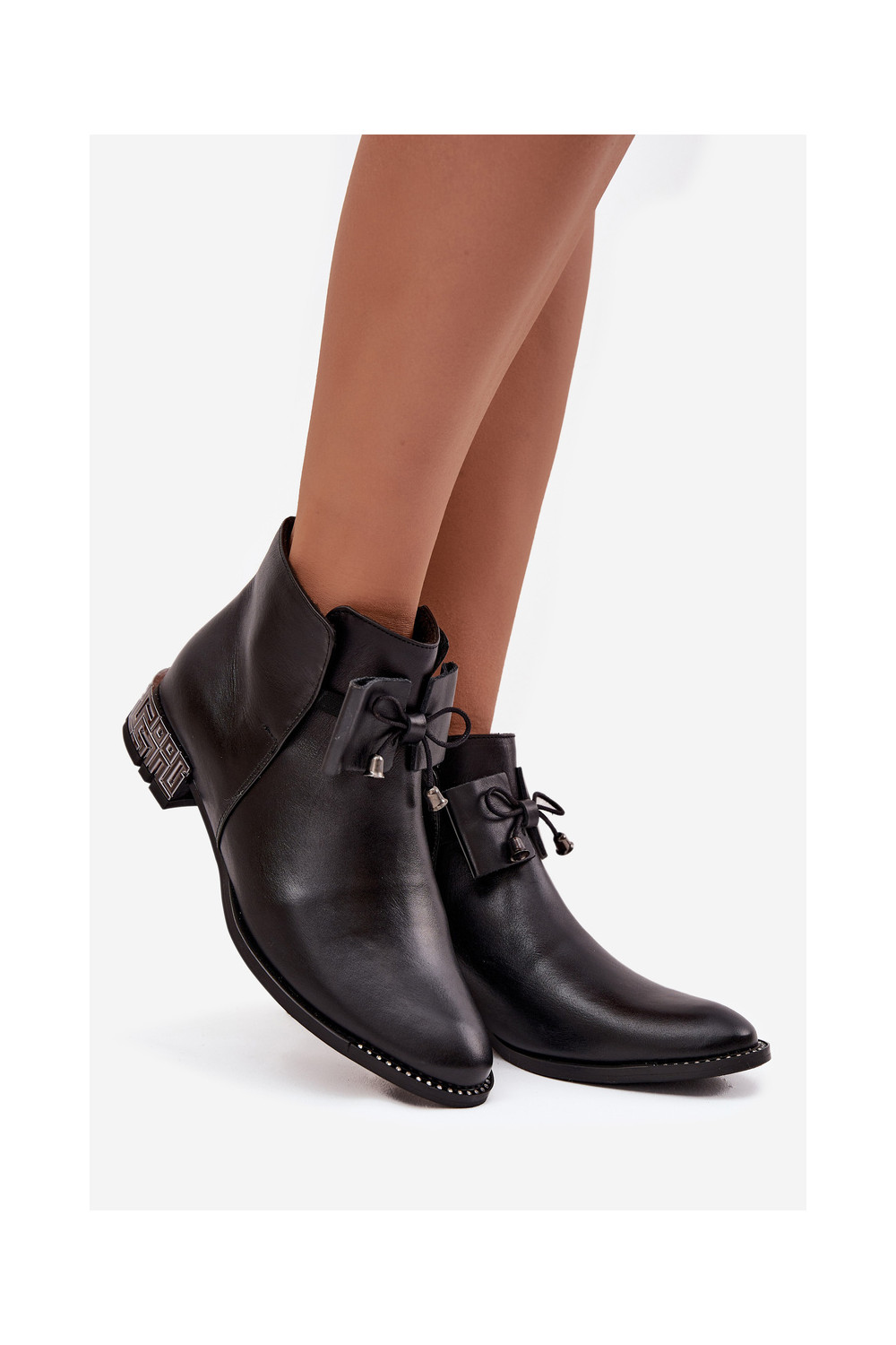 Sieviešu zābaki no dabīgās ādas uz zema papēža Zazoo 1396 melnā krāsā