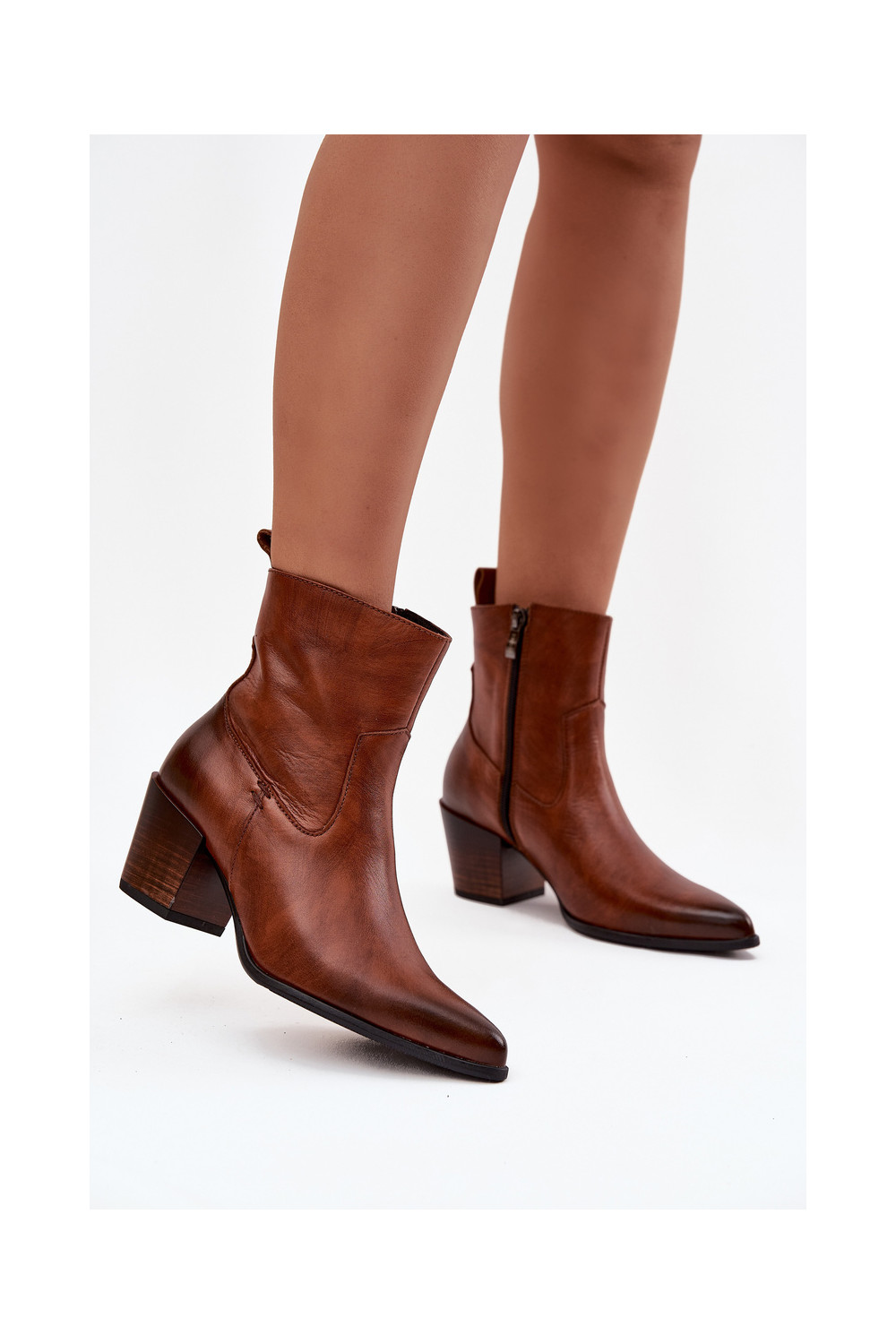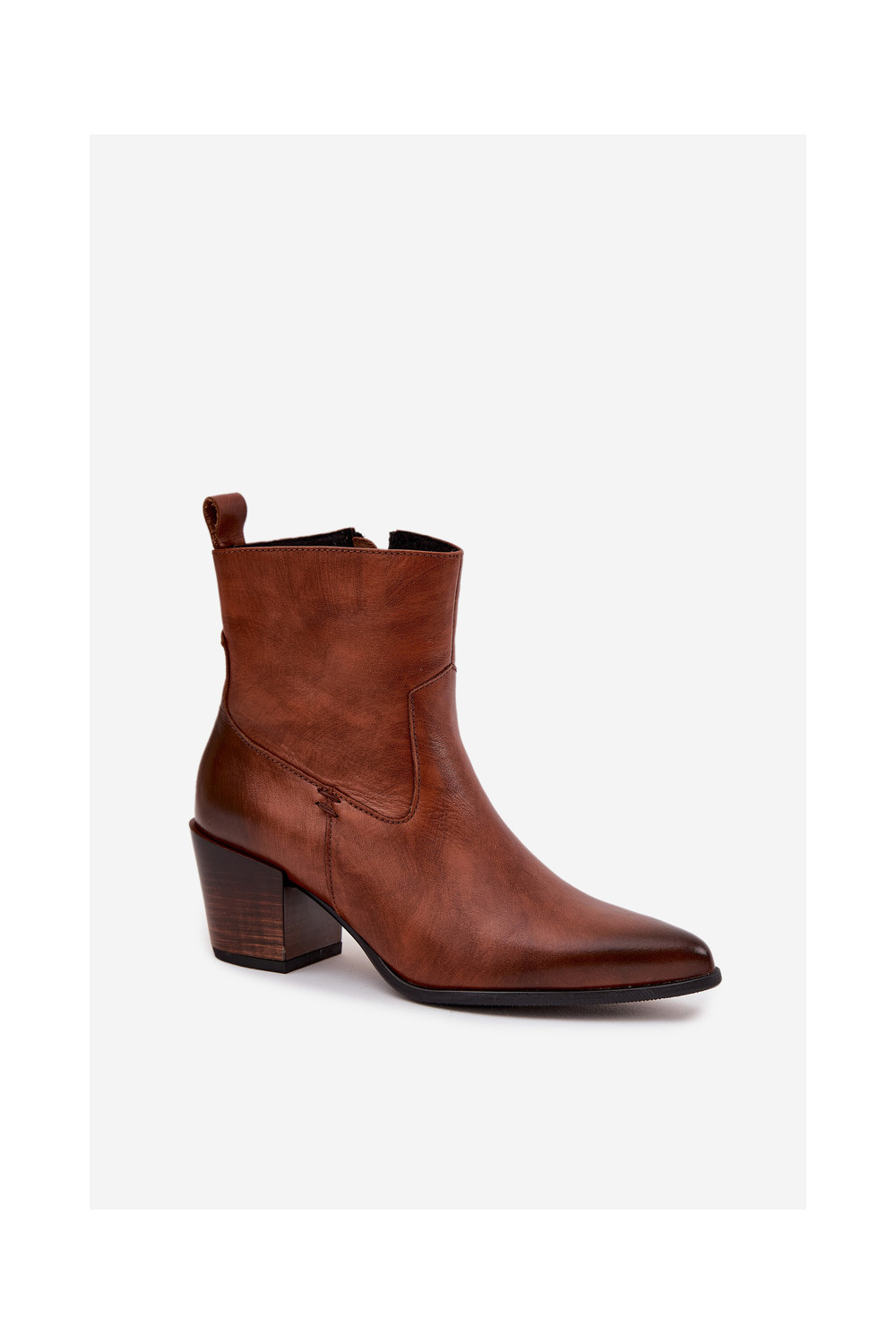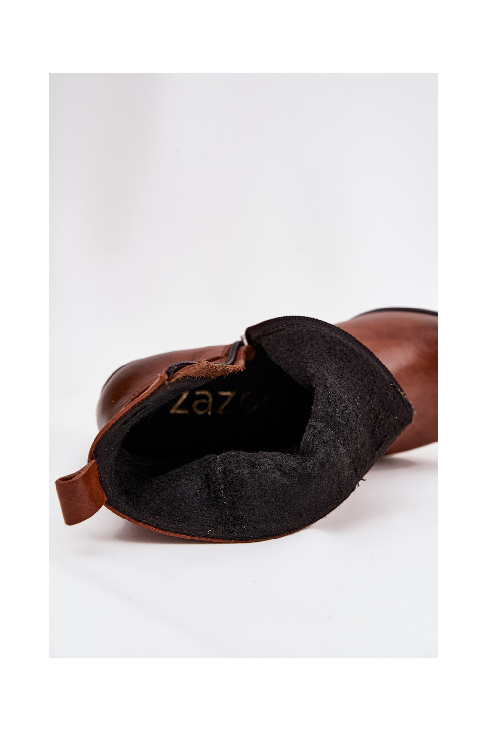 Ādas kovboju stila sieviešu zābaki ar papēžiem siltināti Zazoo 60565 brūnā krāsā