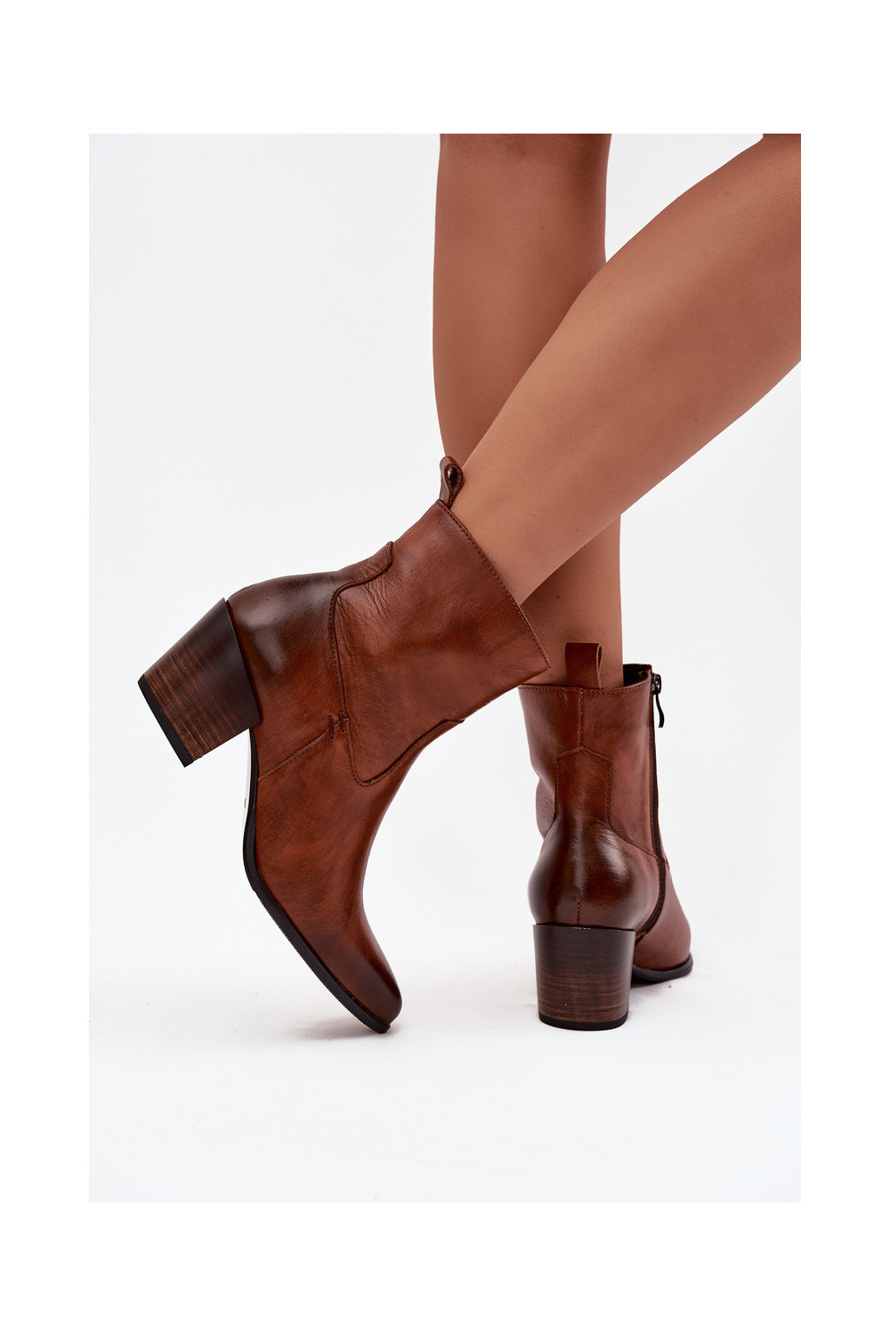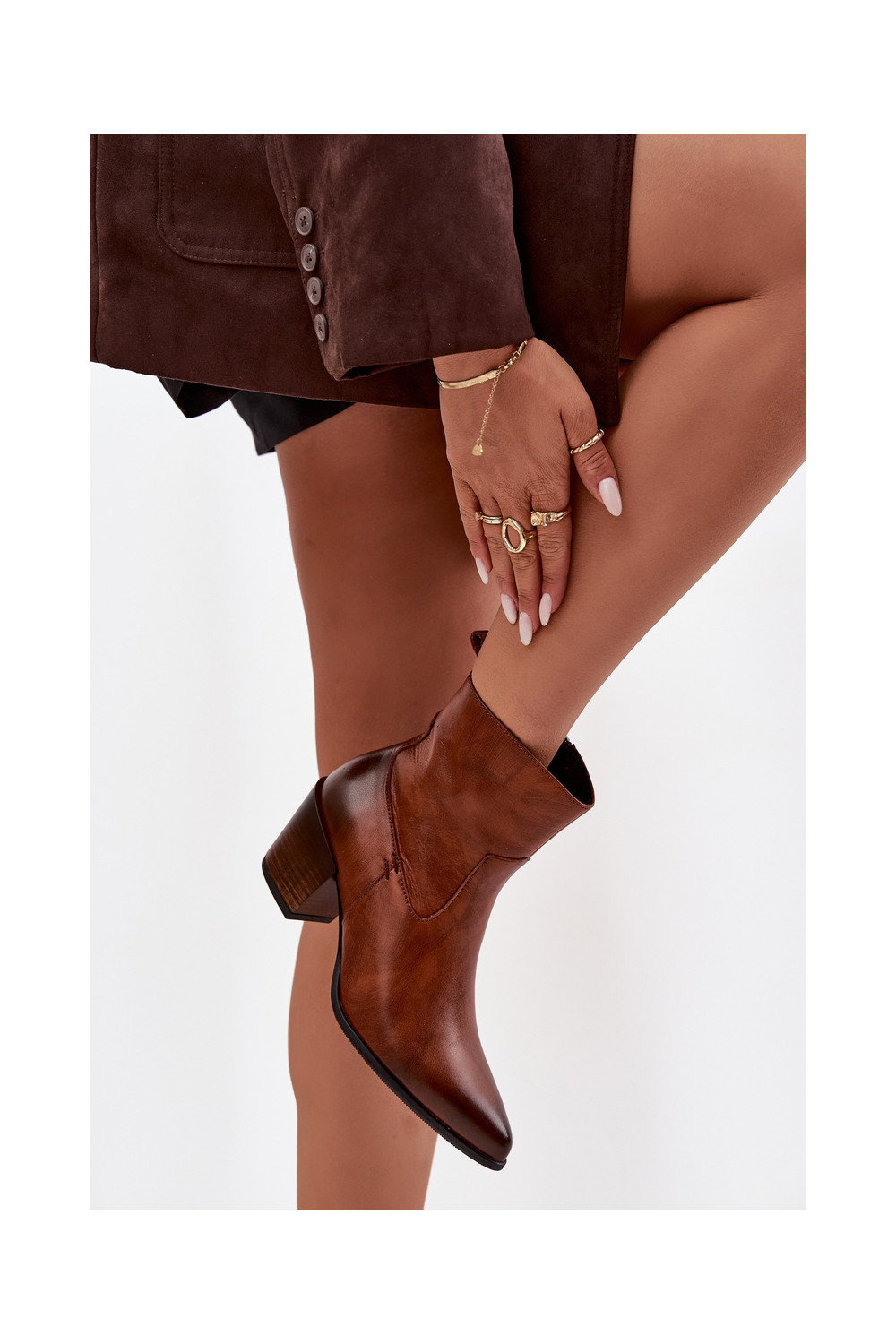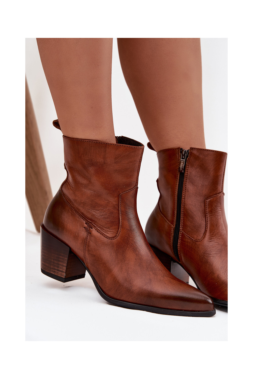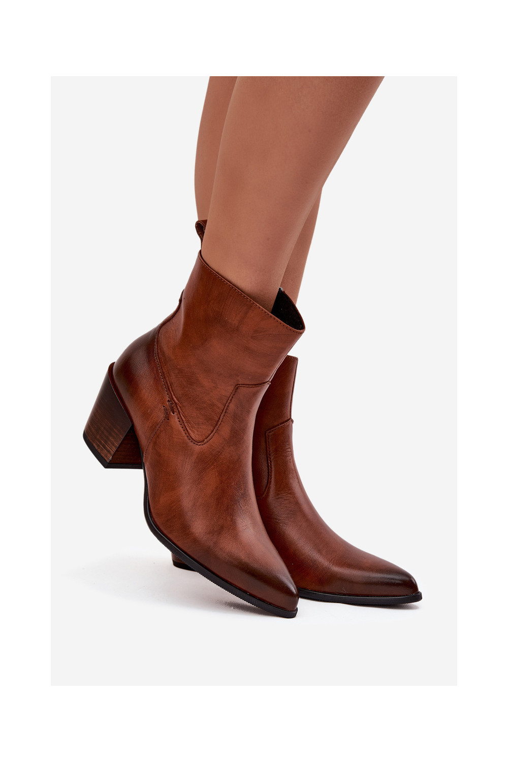 Ādas kovboju stila sieviešu zābaki ar papēžiem siltināti Zazoo 60565 brūnā krāsā