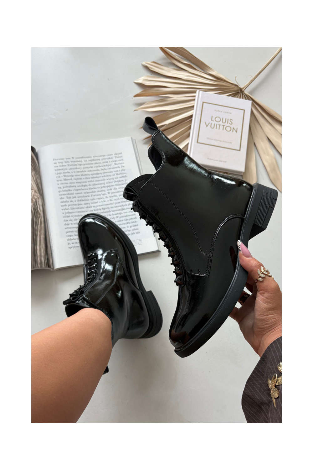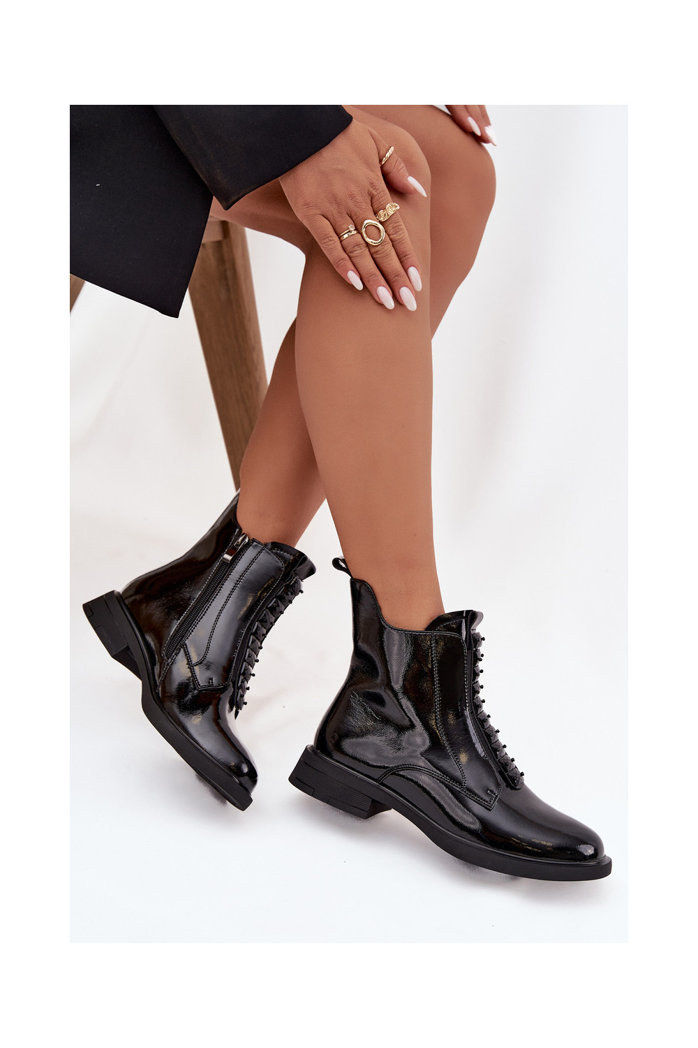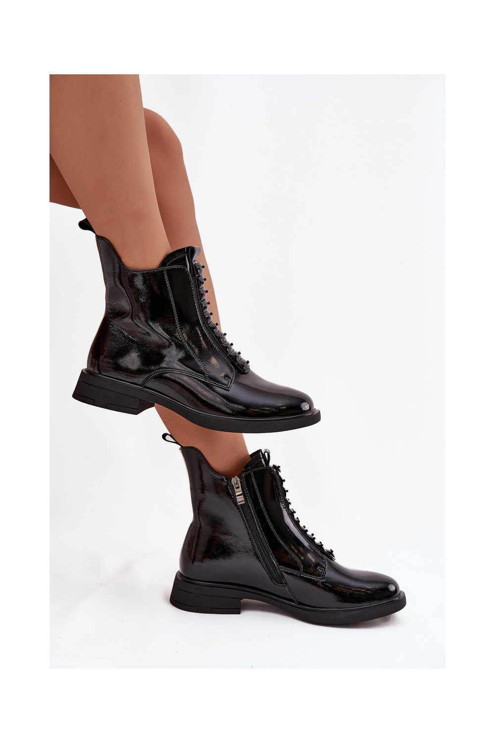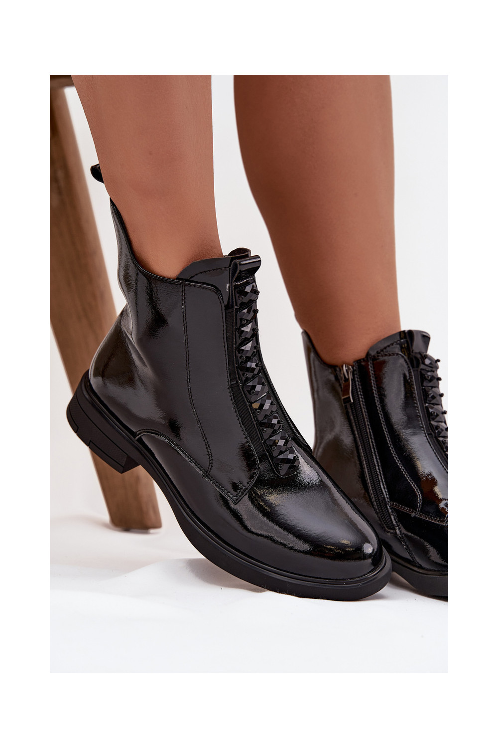 Sieviešu lakoti zābaciņi no mākslīgās ādas D&A MR52-108 melnā krāsā
