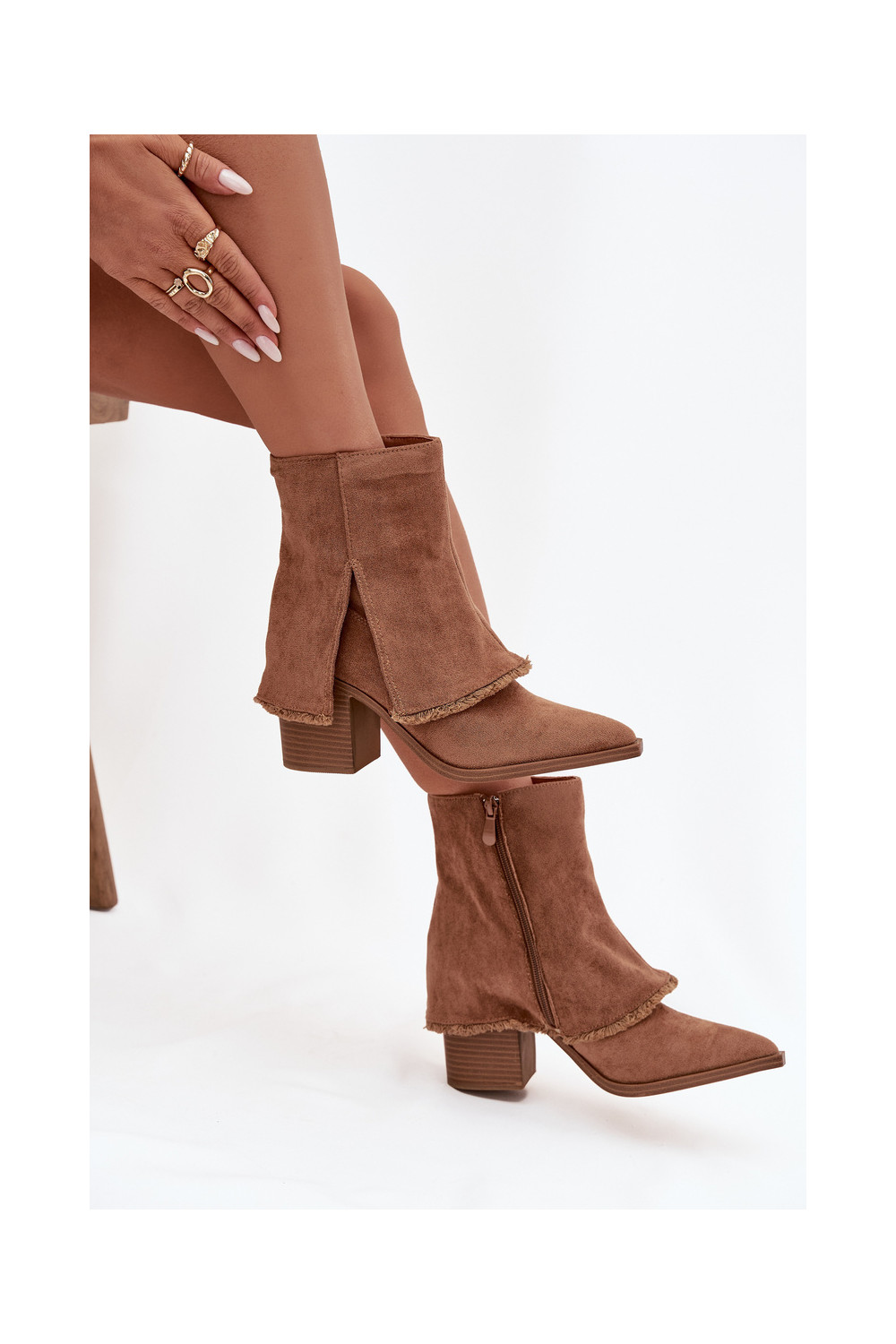 Sieviešu zābaciņi ar izšūtu cholewa brūnā krāsā Idalia