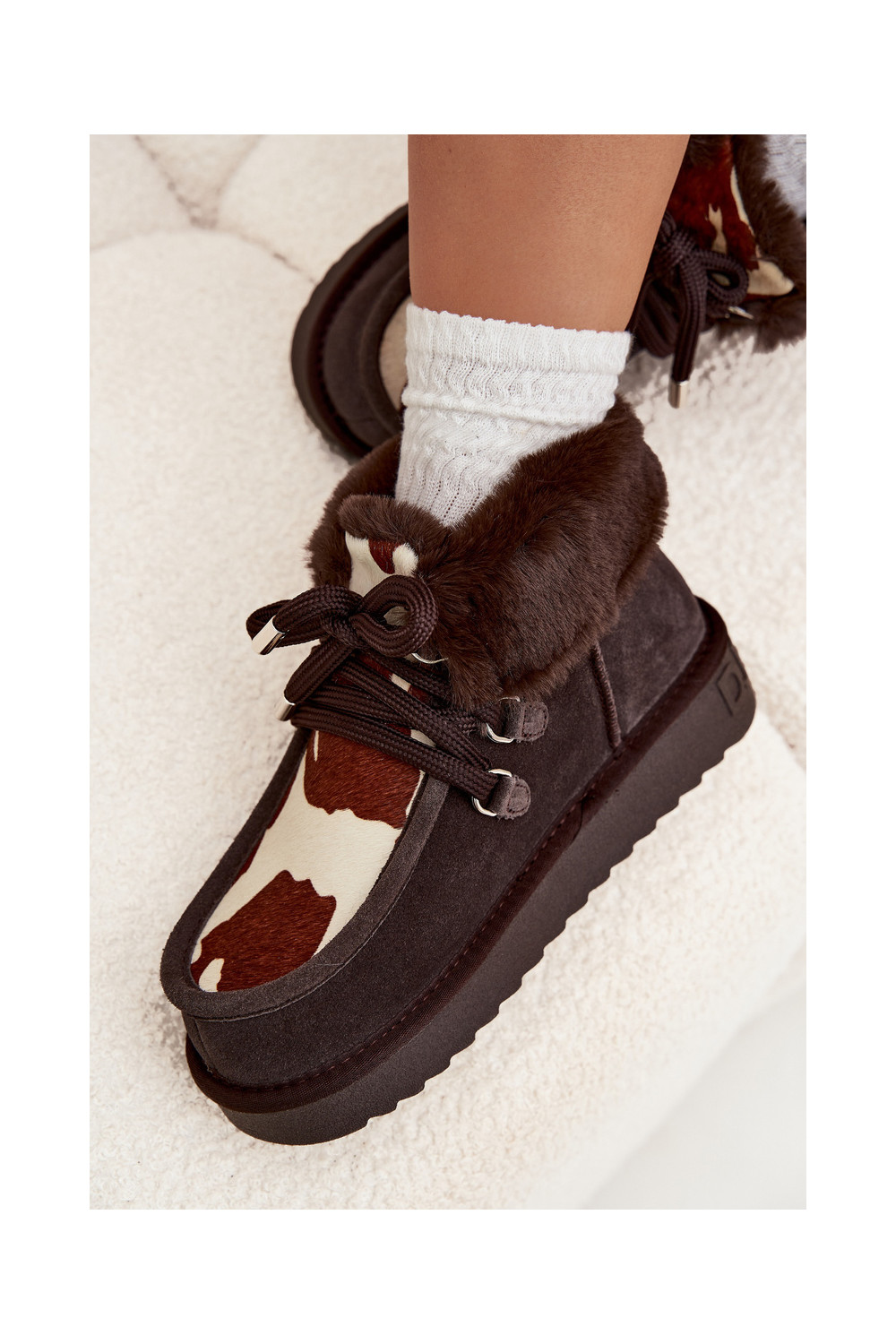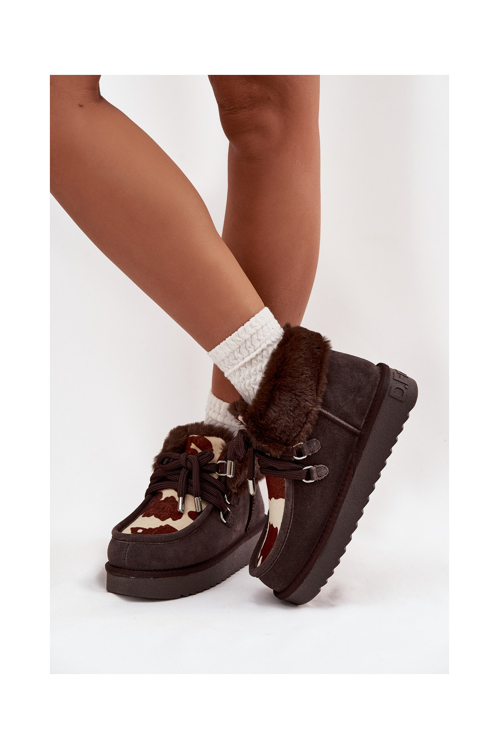 sniega apavi Z Naturalnego Zamszu Łaty D.Franklin DFSH375008 Czekoladowe