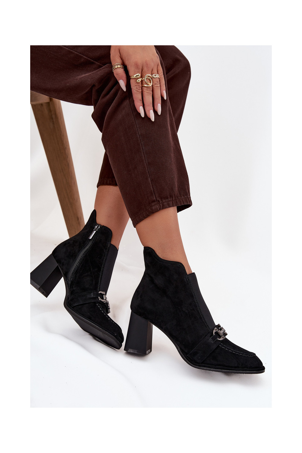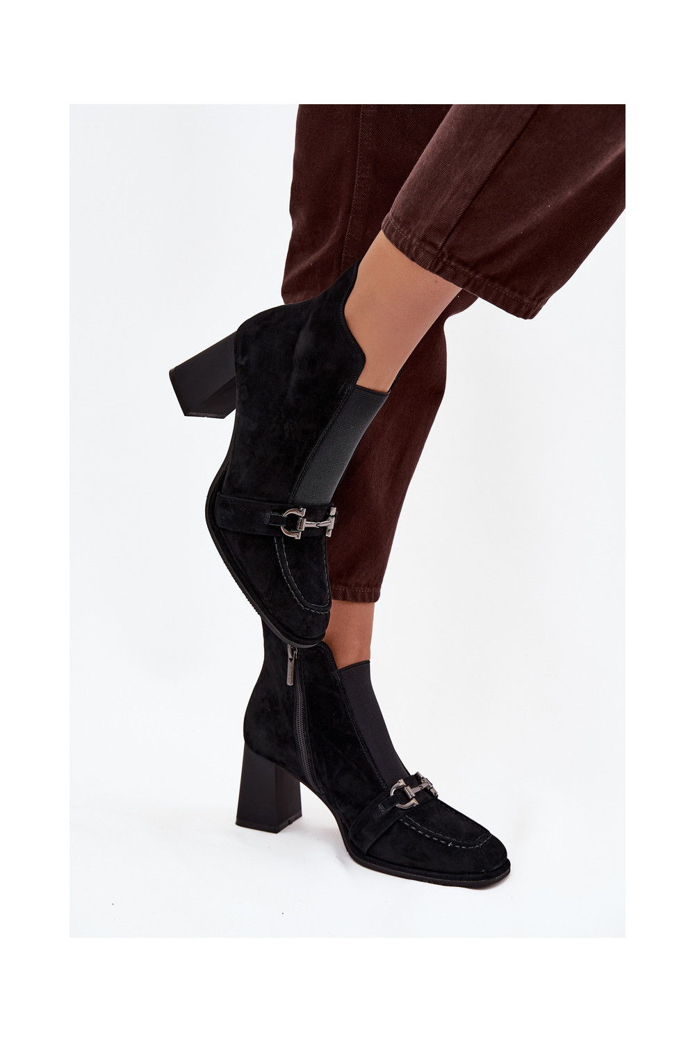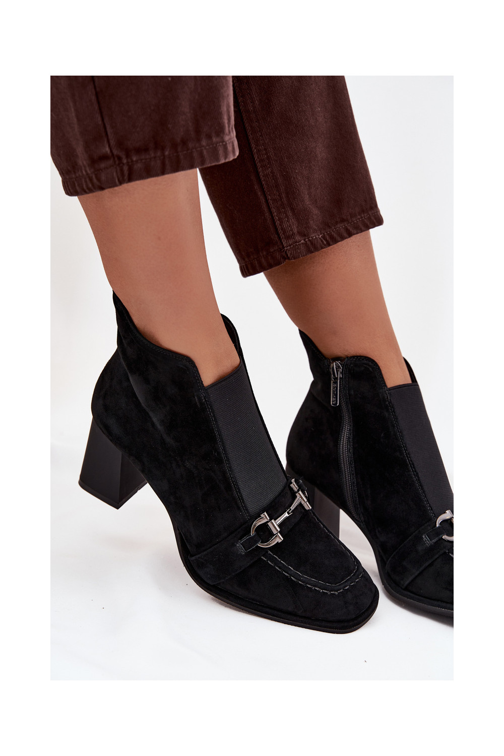 Sieviešu puszābaki Z Naturalnego Zamszu ar papēdi Artiker 57C0124 Melns