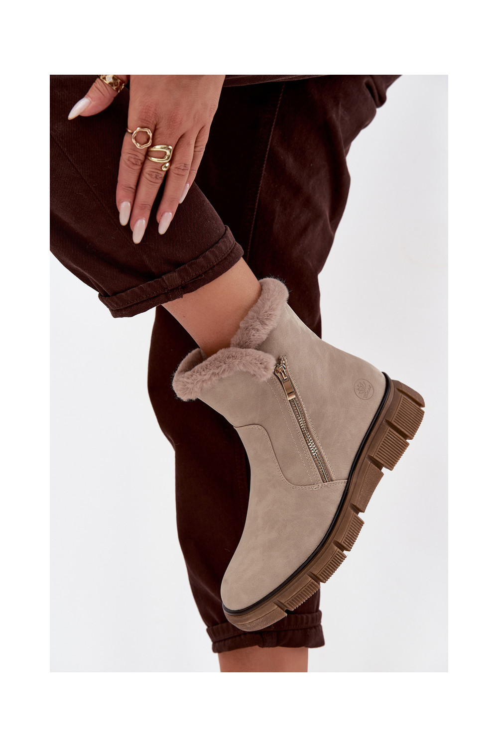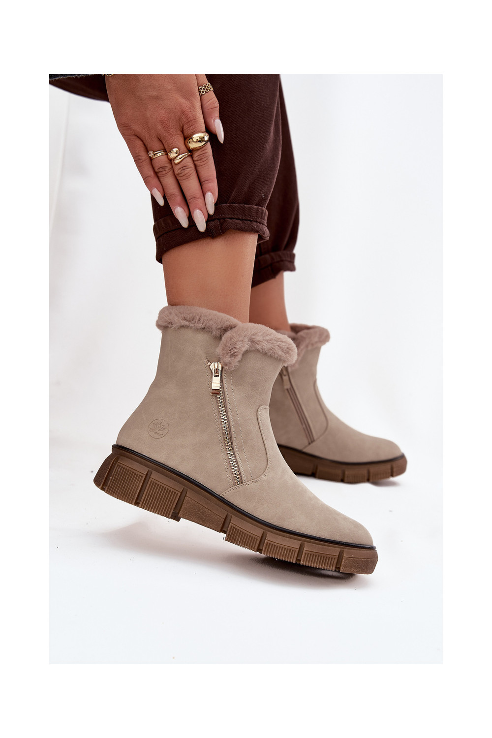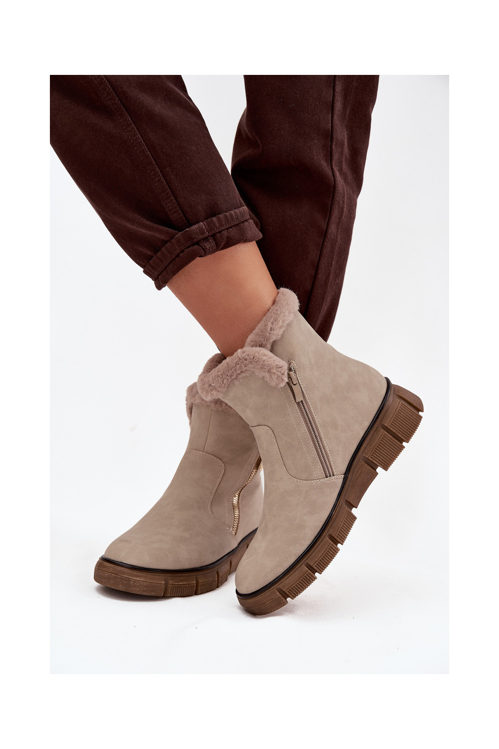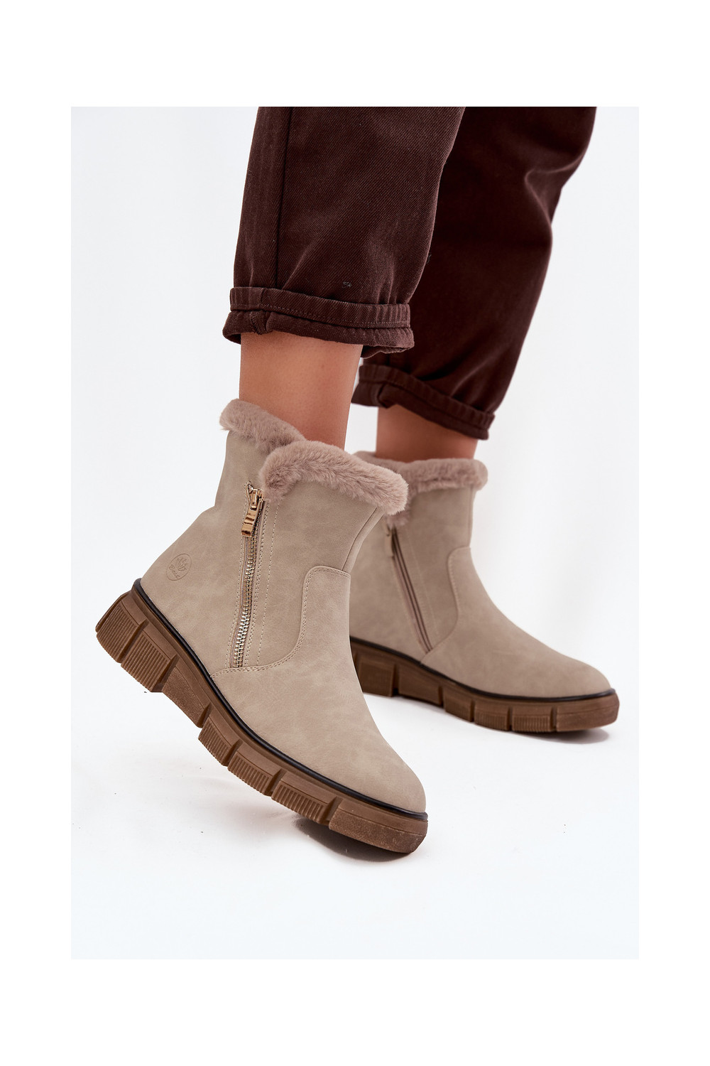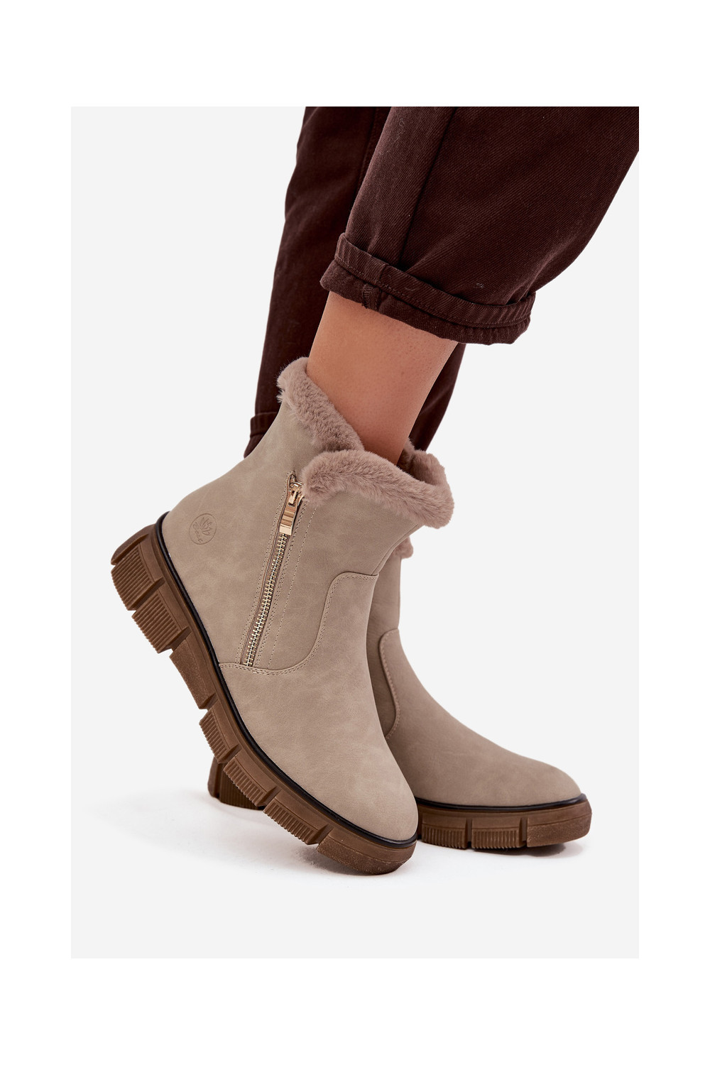 sniega apavi  ar platformu ar kažokādu smilšu krāsas Briselle