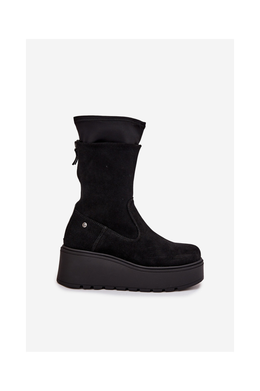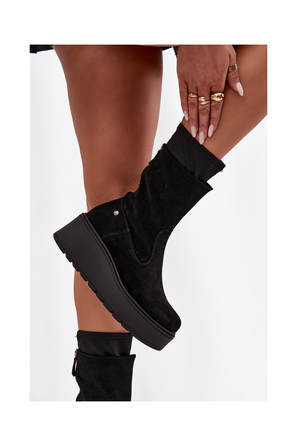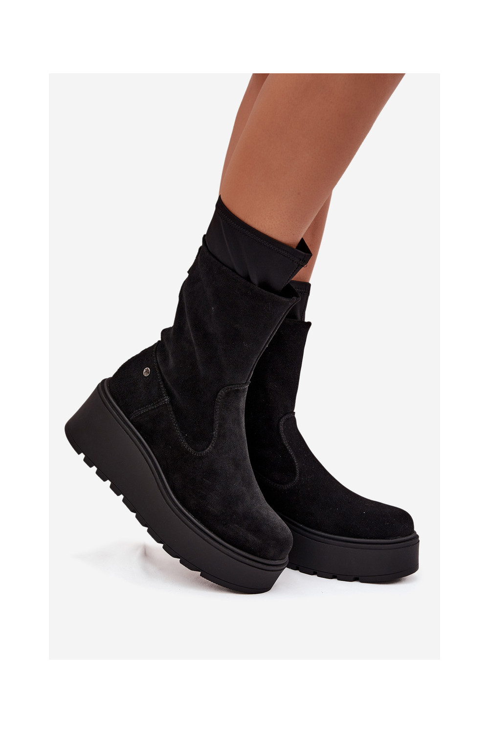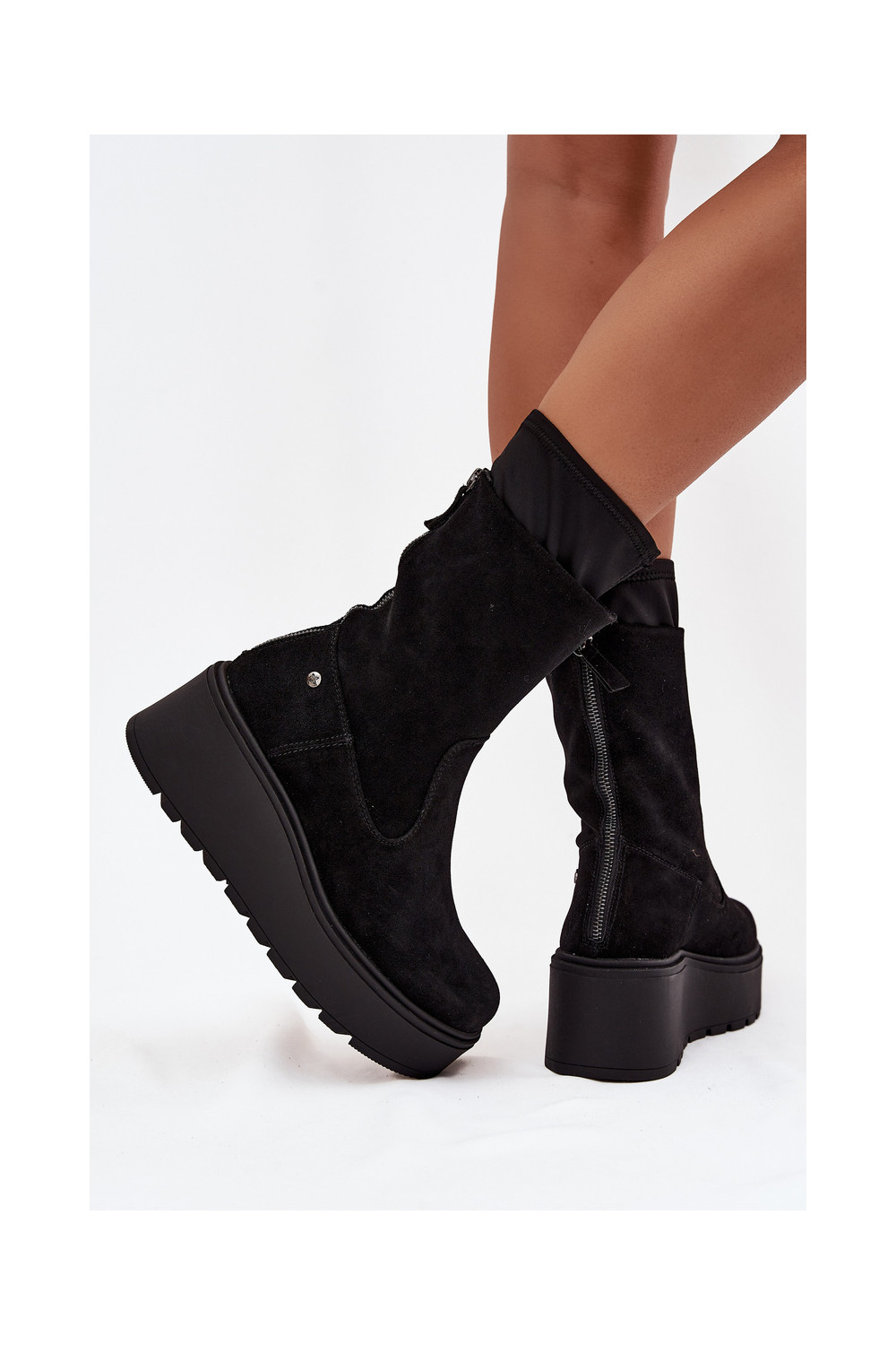 Sieviešu Āda Zamšādas kurpes ar platformu Tā irciejka A7161-20 melnas krāsas