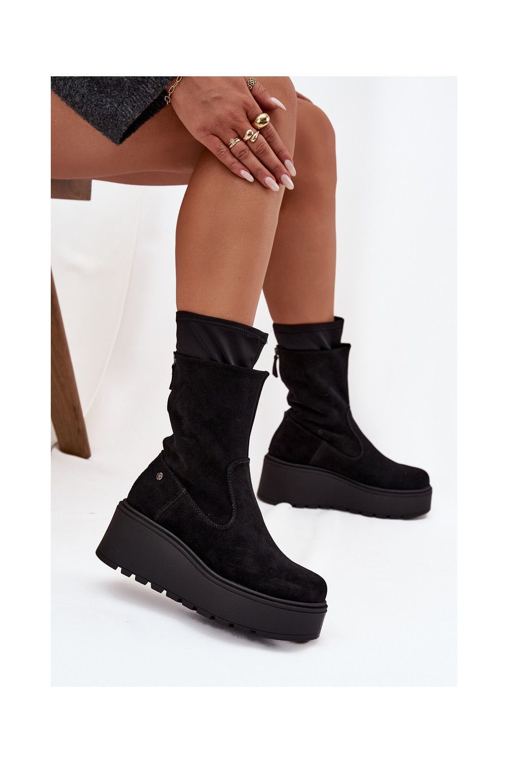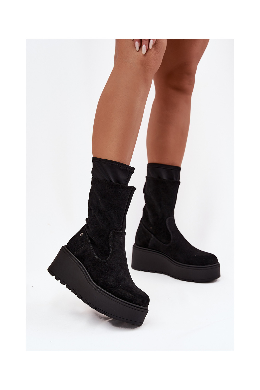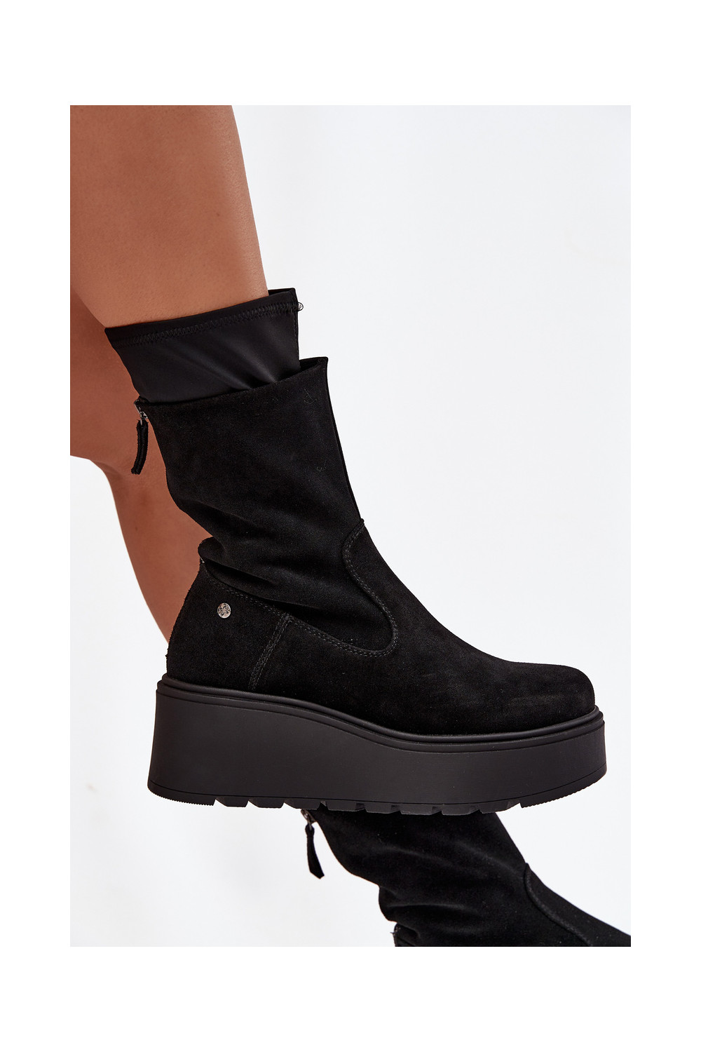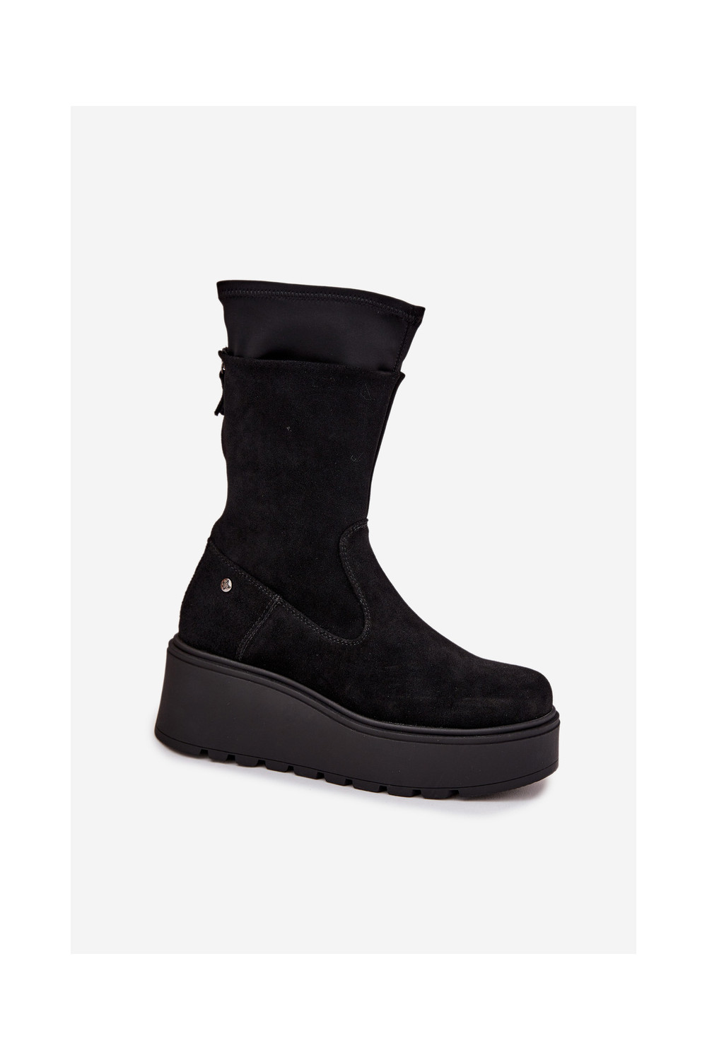 Sieviešu Āda Zamšādas kurpes ar platformu Tā irciejka A7161-20 melnas krāsas