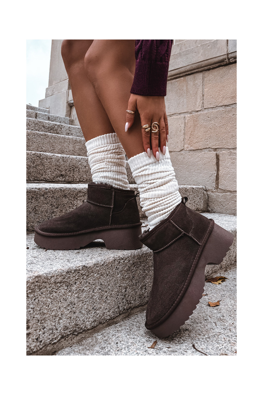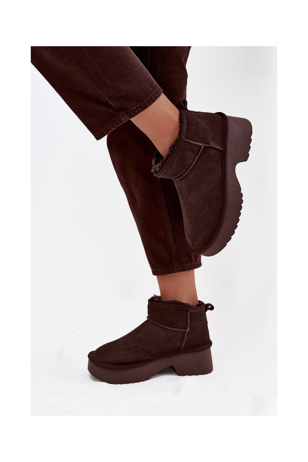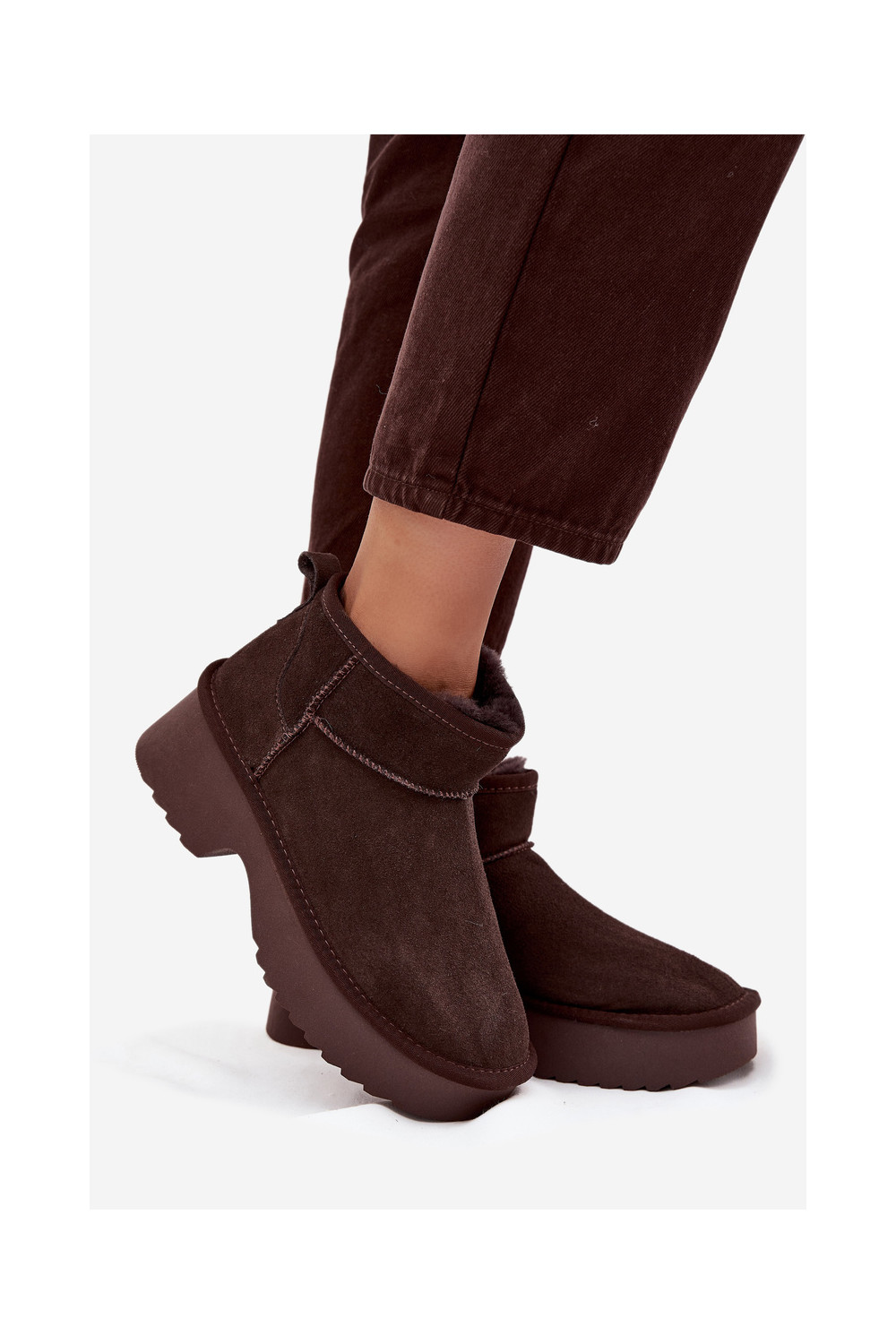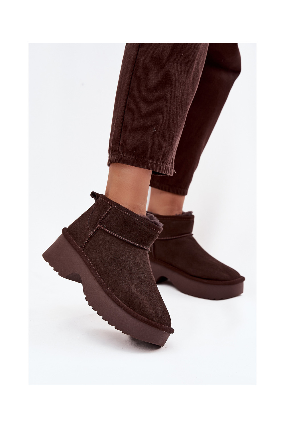 sniega apavi SieviešuIeslēgtsturalnego zamšādasu siltināti ar kažokādu CzekoladoIne Milora