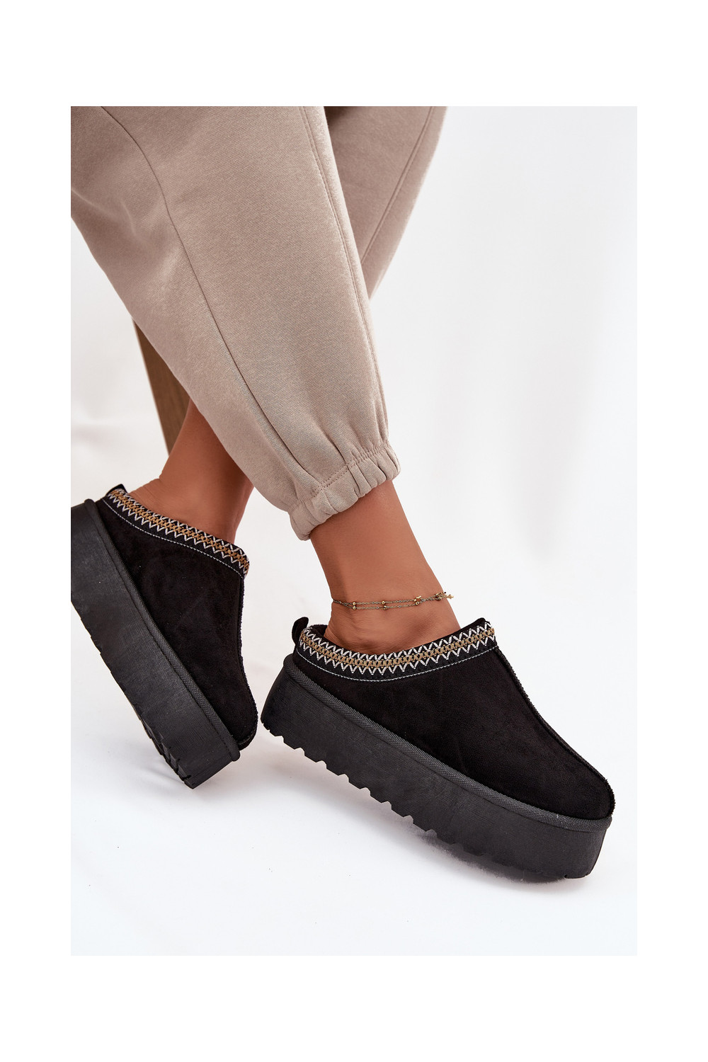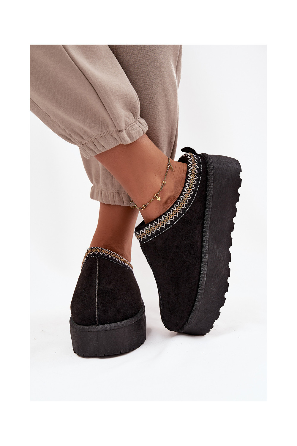 sniega apavi Sieviešu Ar greznu Haftem melnas krāsas Jenira