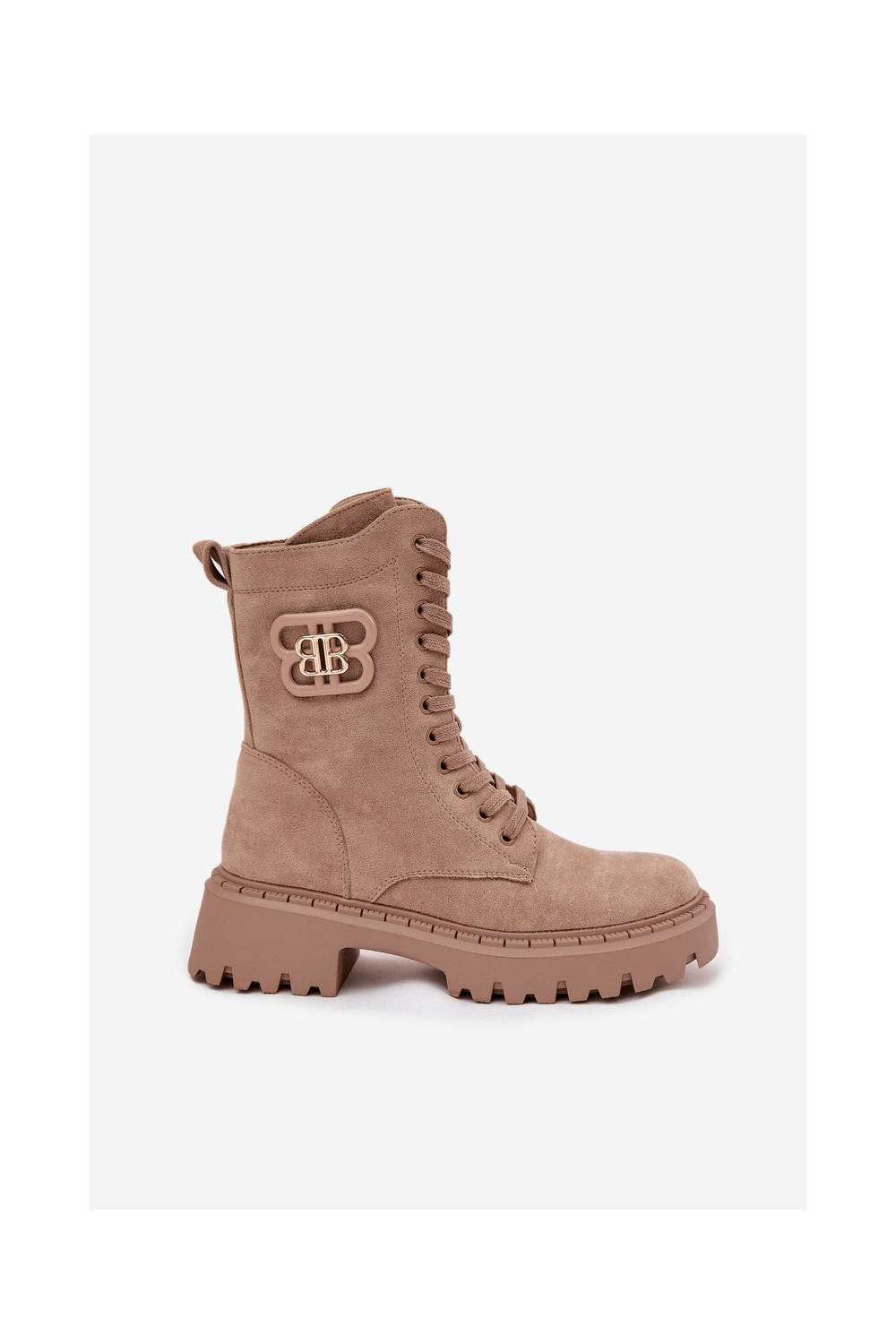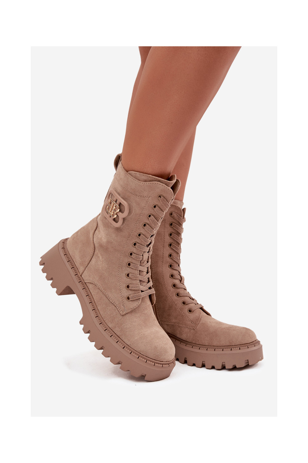 LOVED sieviešu zābaki. Mežģīņu zābaki no zamšādas imitācijas ir ideāls piedāvājums šai sezonai! Tie ir uz biezas zoles. Modelis nav siltināts. Ideāli piemēroti rudens un ziemas stilam.