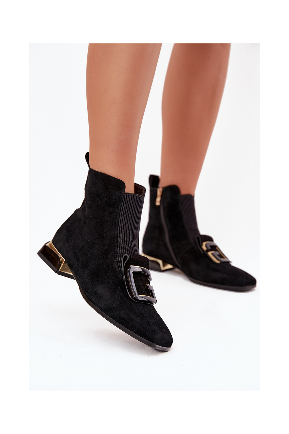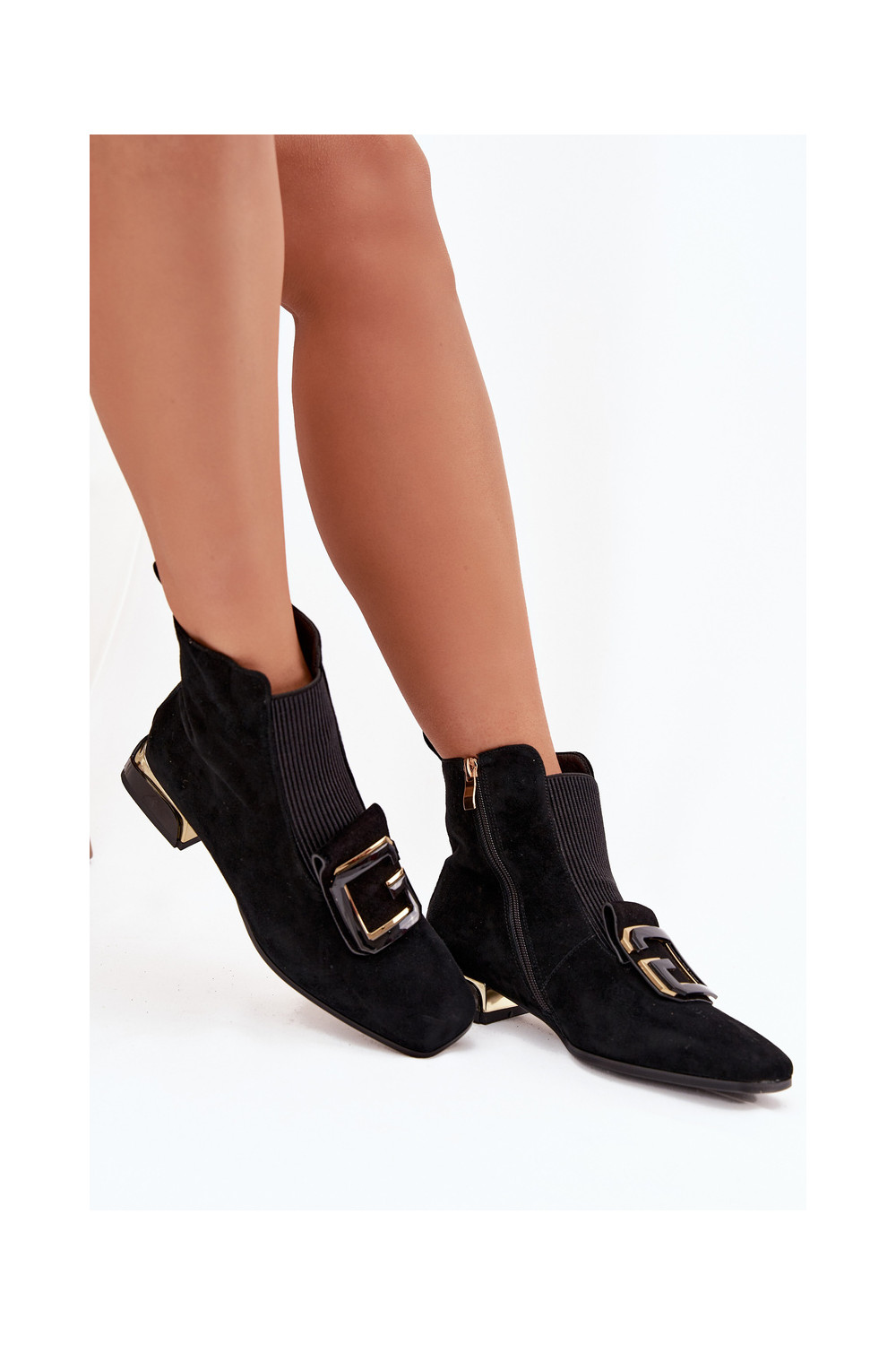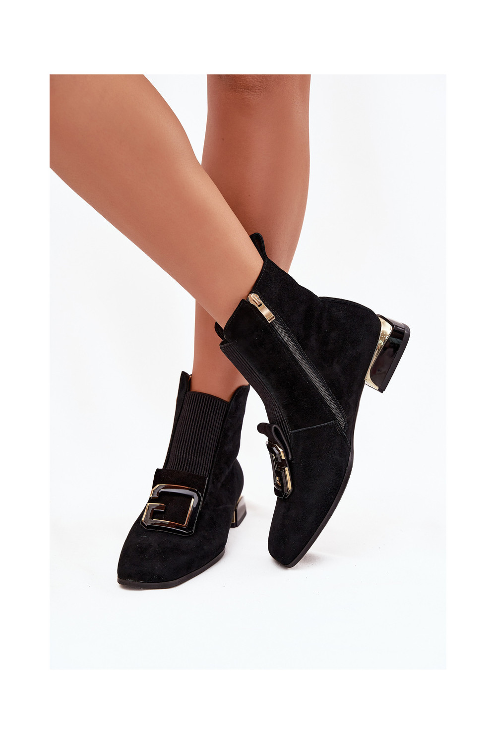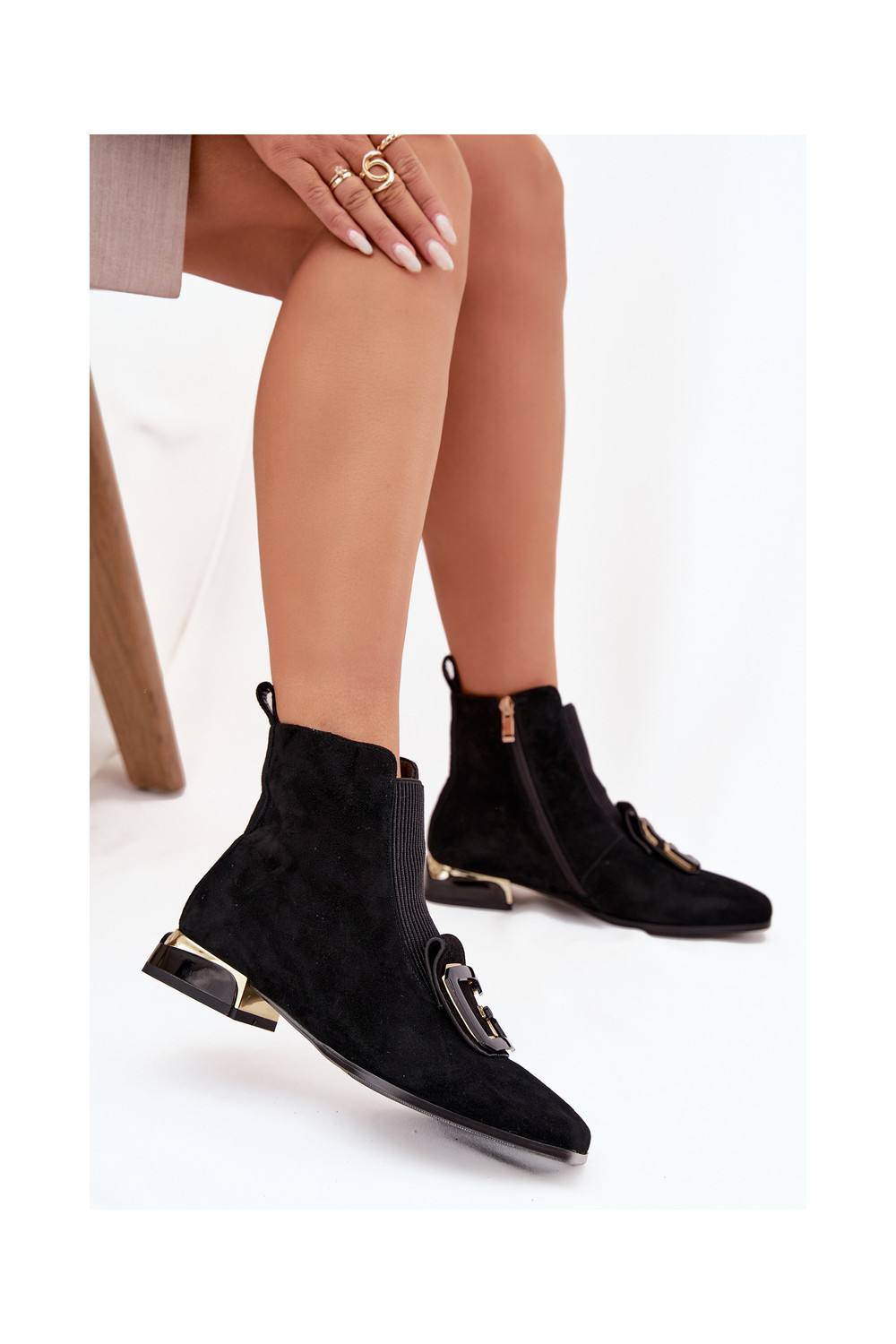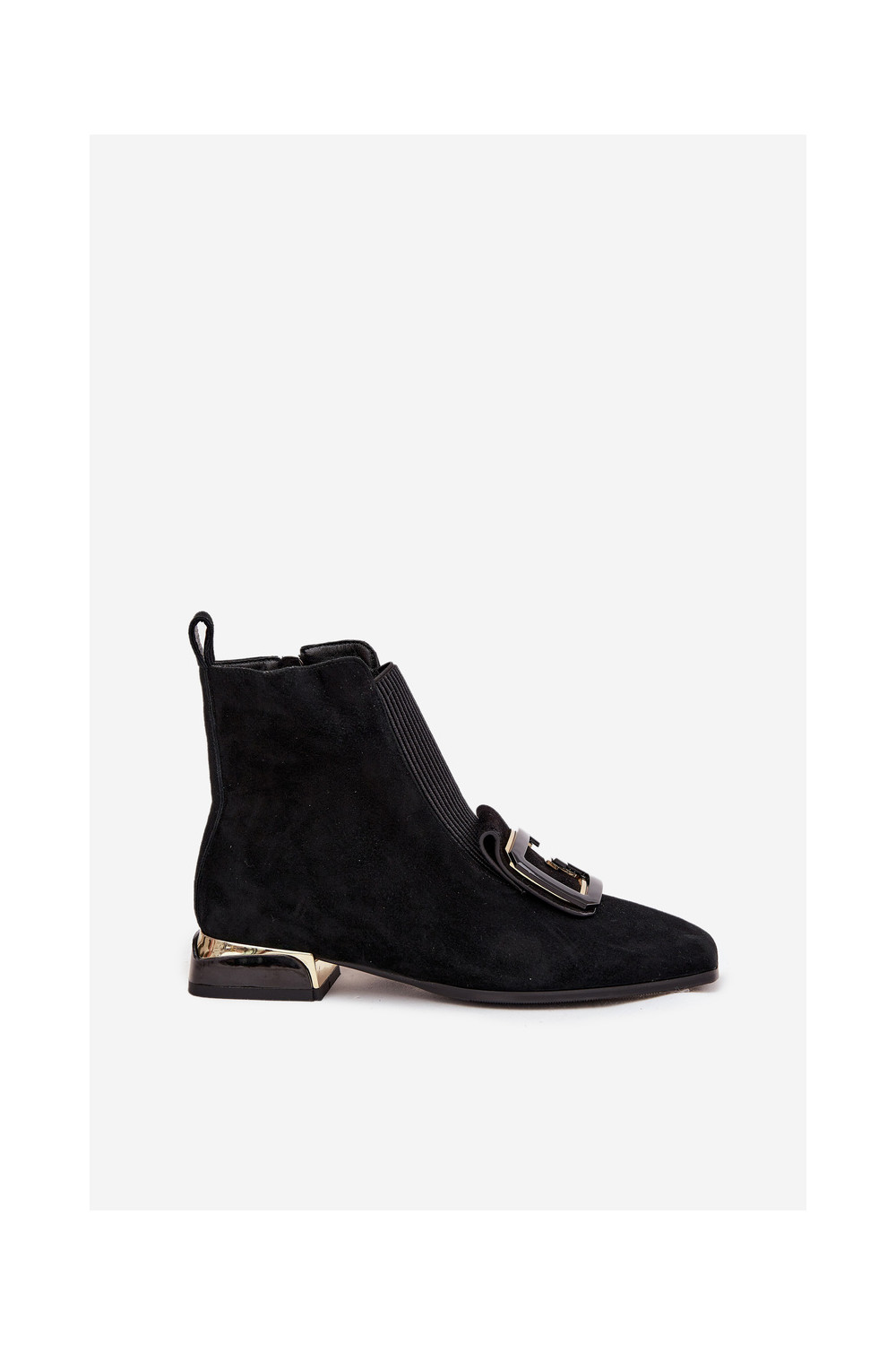 Āda Zamšādas kurpes Sieviešu Uz Zema Papēža ar ornamentiem D&A MR52-217 melnas krāsas