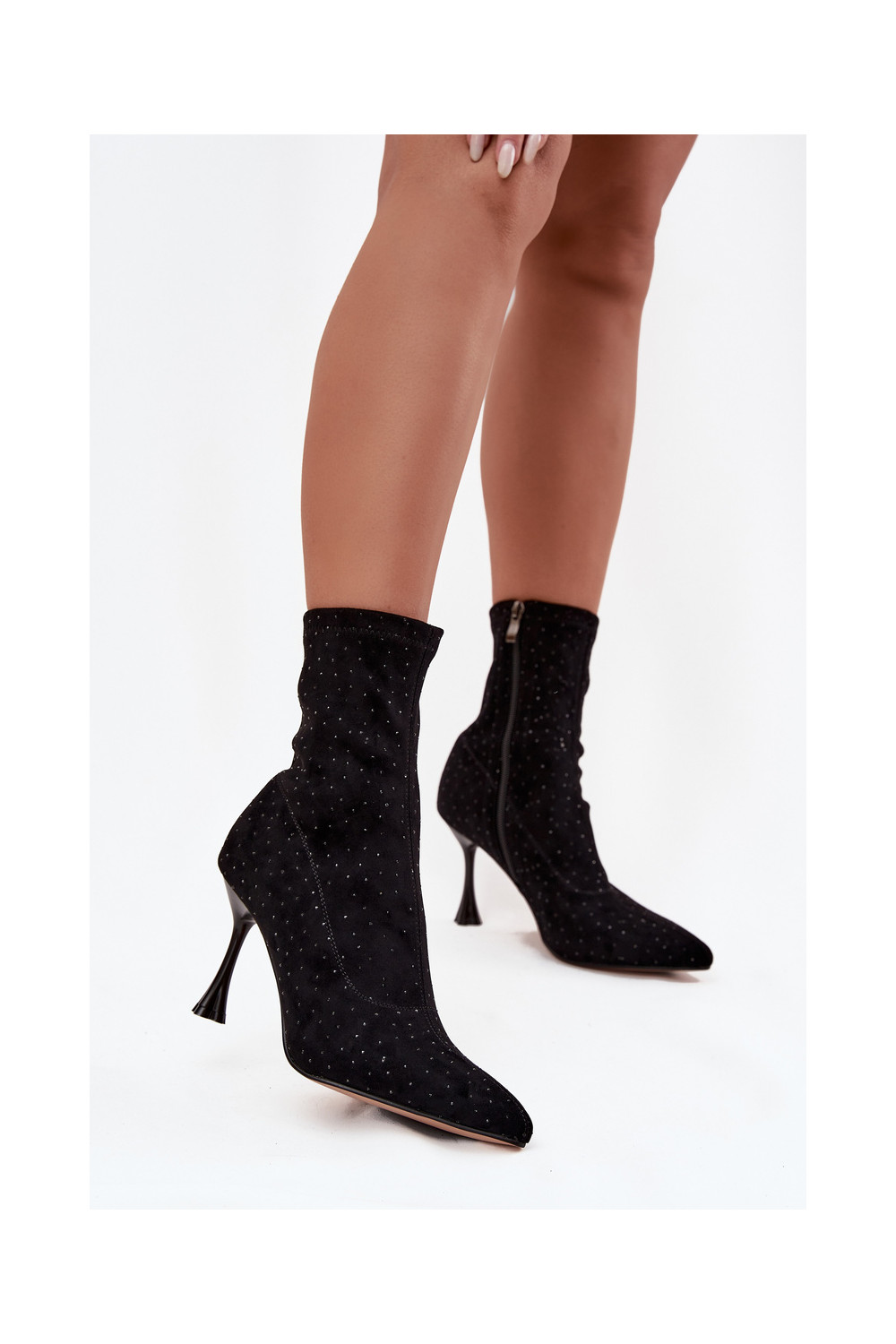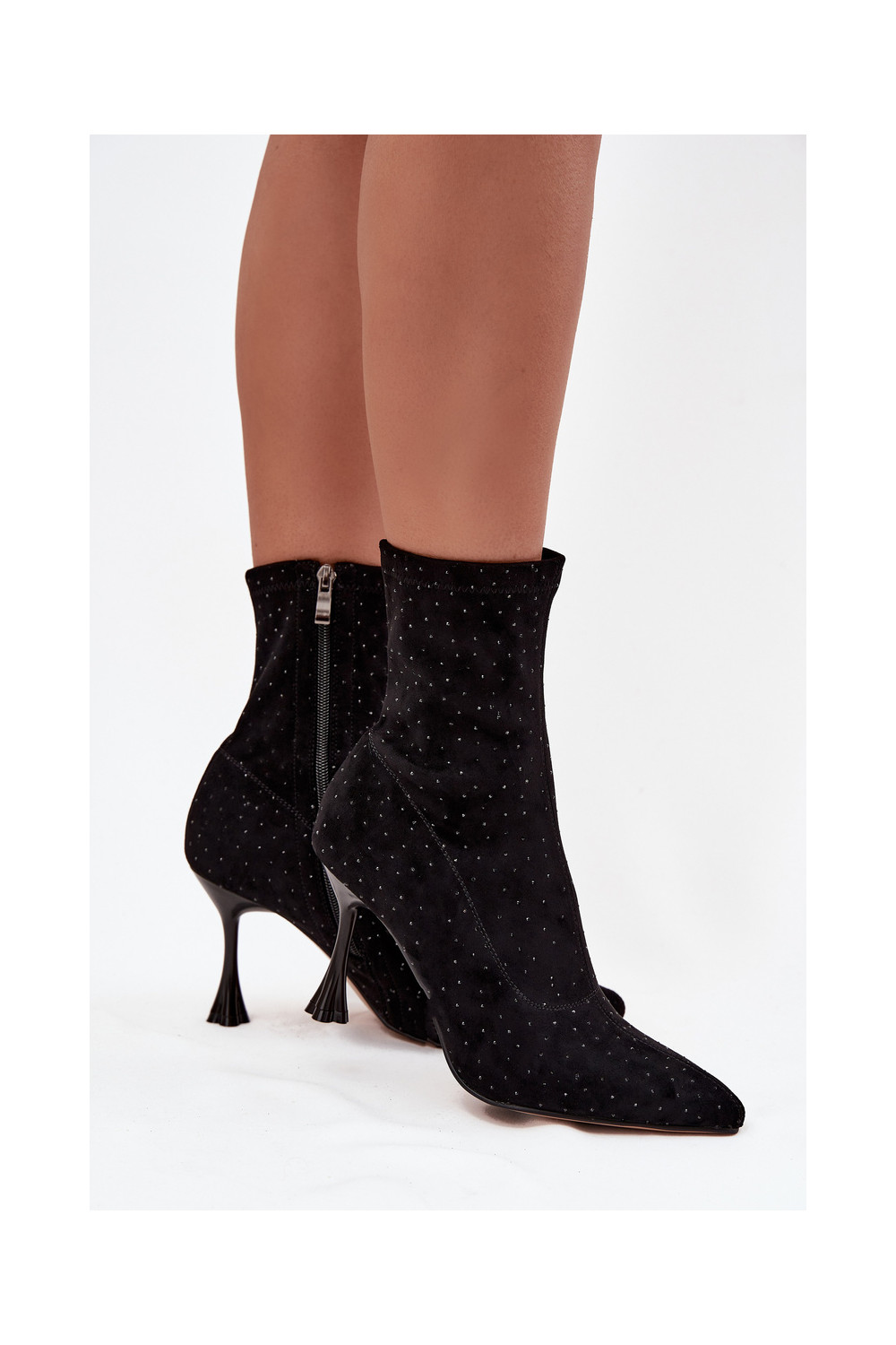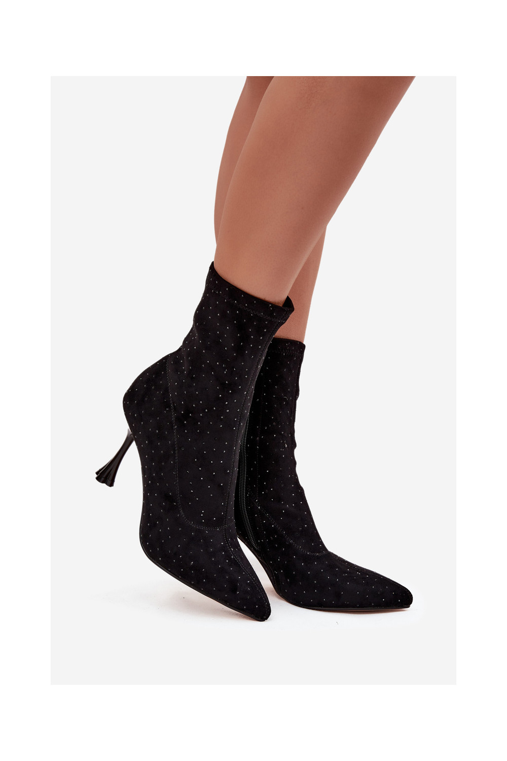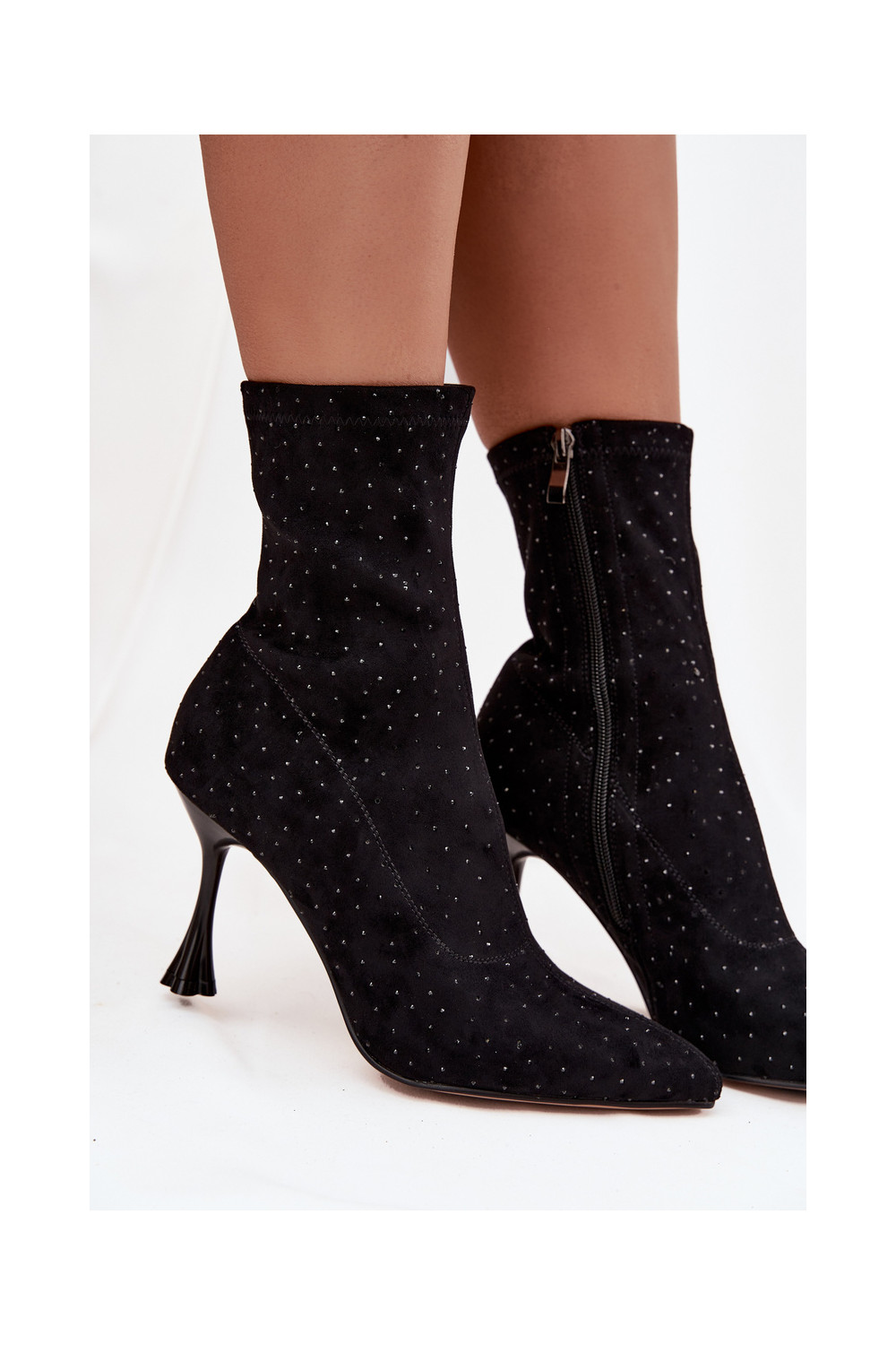Sieviešu dekorētie zābaki ar plāniem papēžiem D&A JC52-882 melnā krāsā