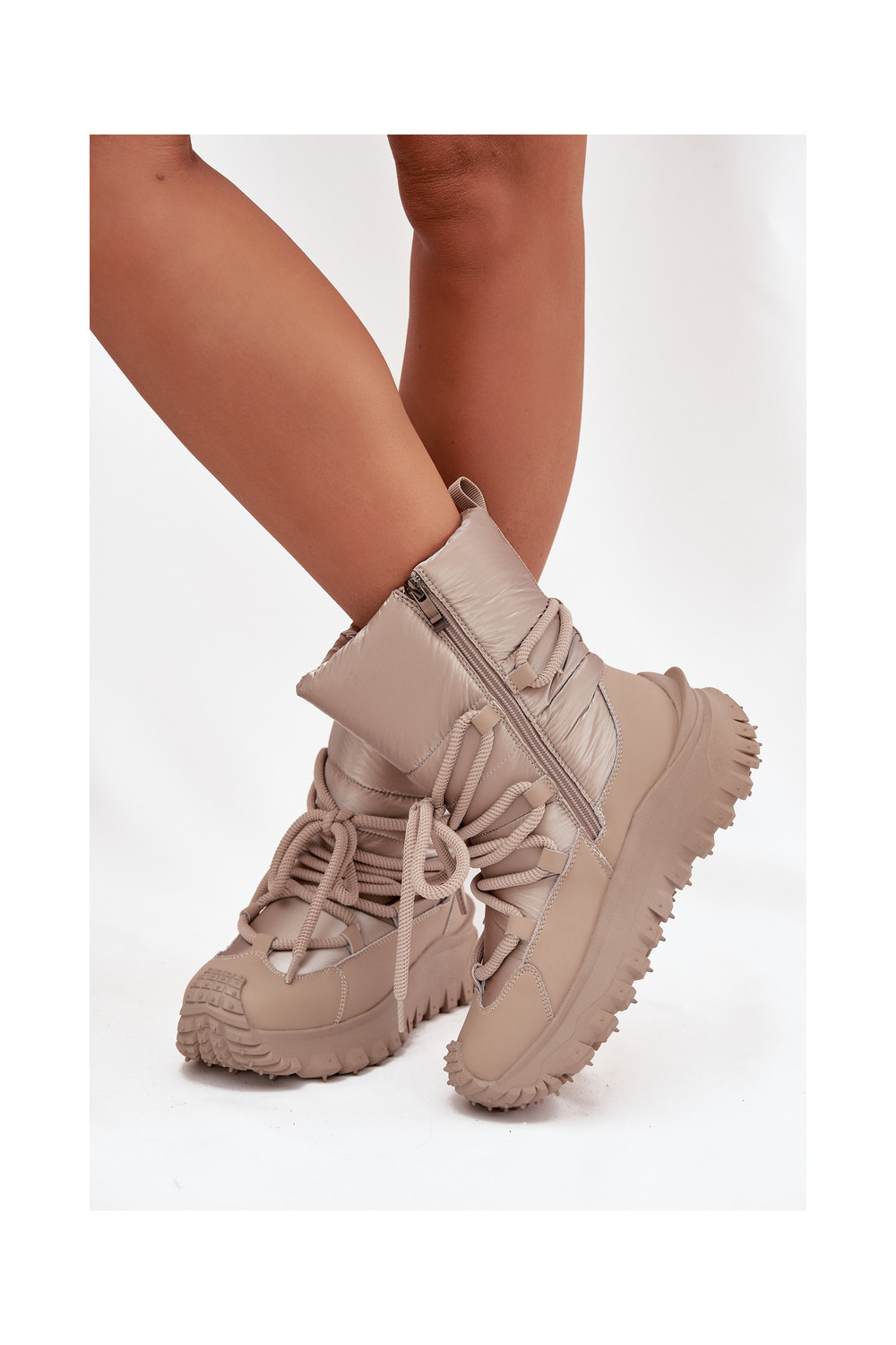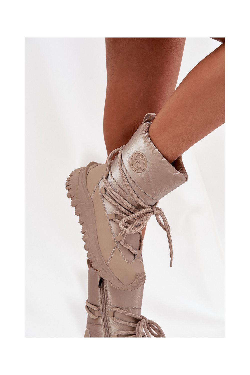 Mākslīgas ādas Lee Cooper LCJ-25-12-3663 smilšu-zelta krāsas sniega apavi ar platformu