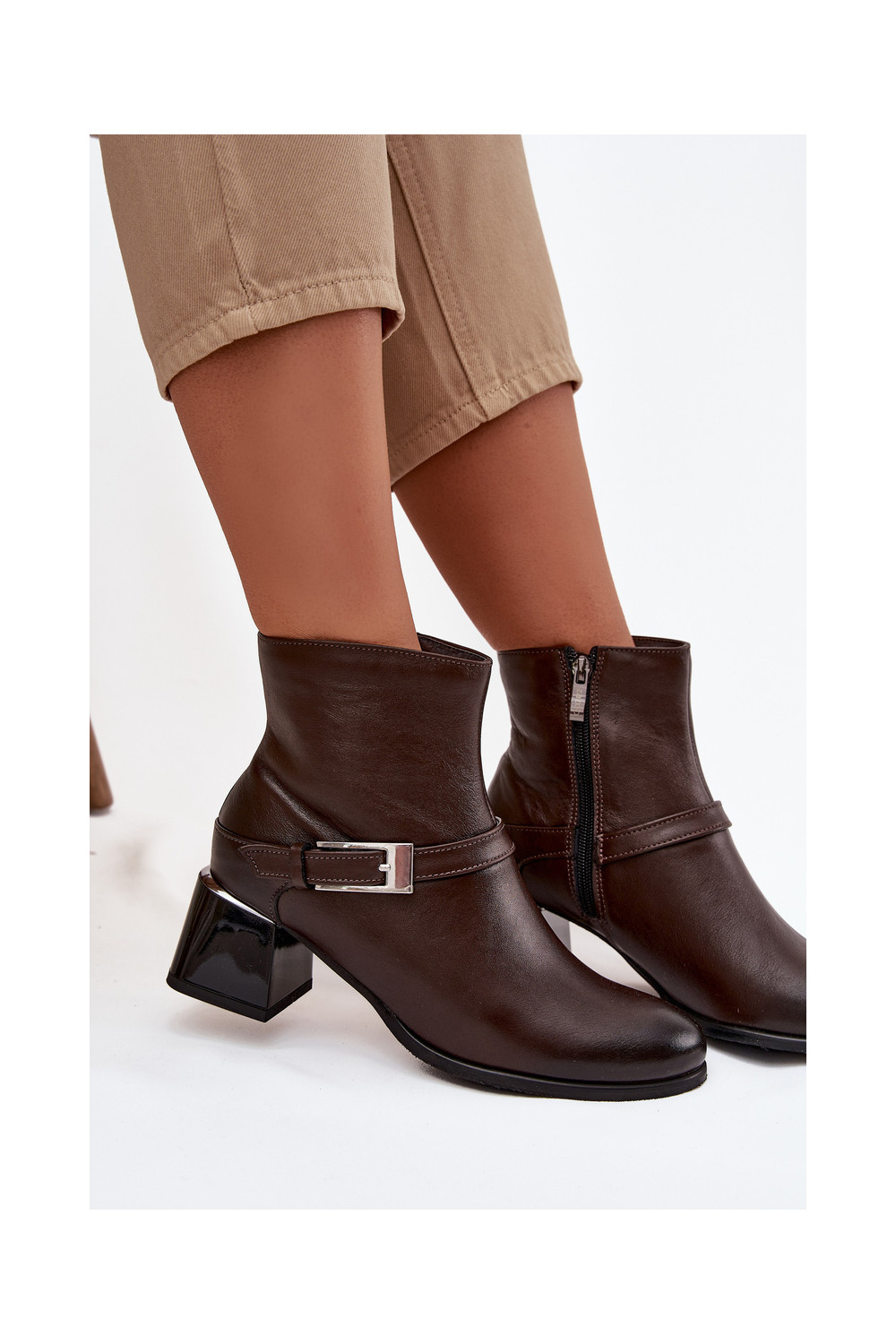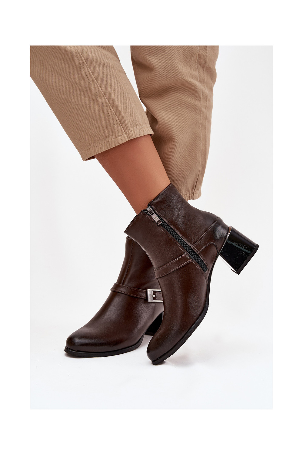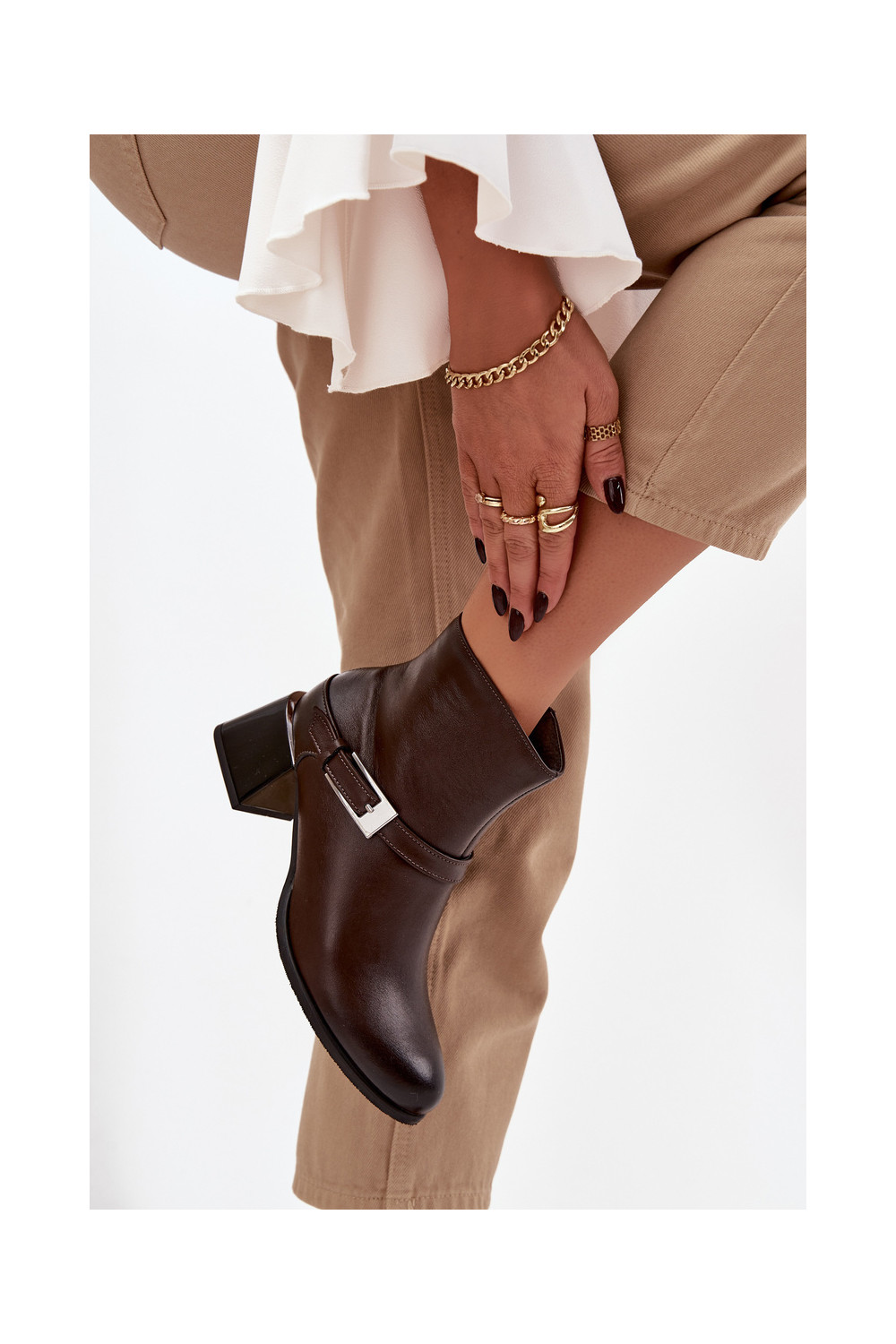 sieviešu zābaki ar papēdi ar sprādzēm Zazoo 60562 Czekoladowe