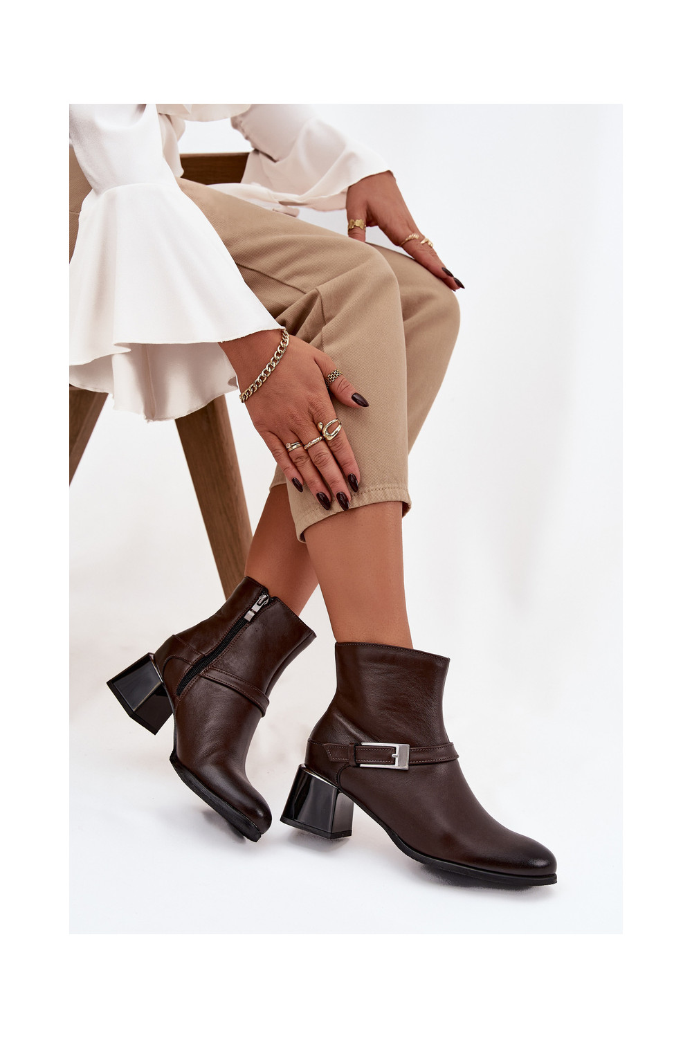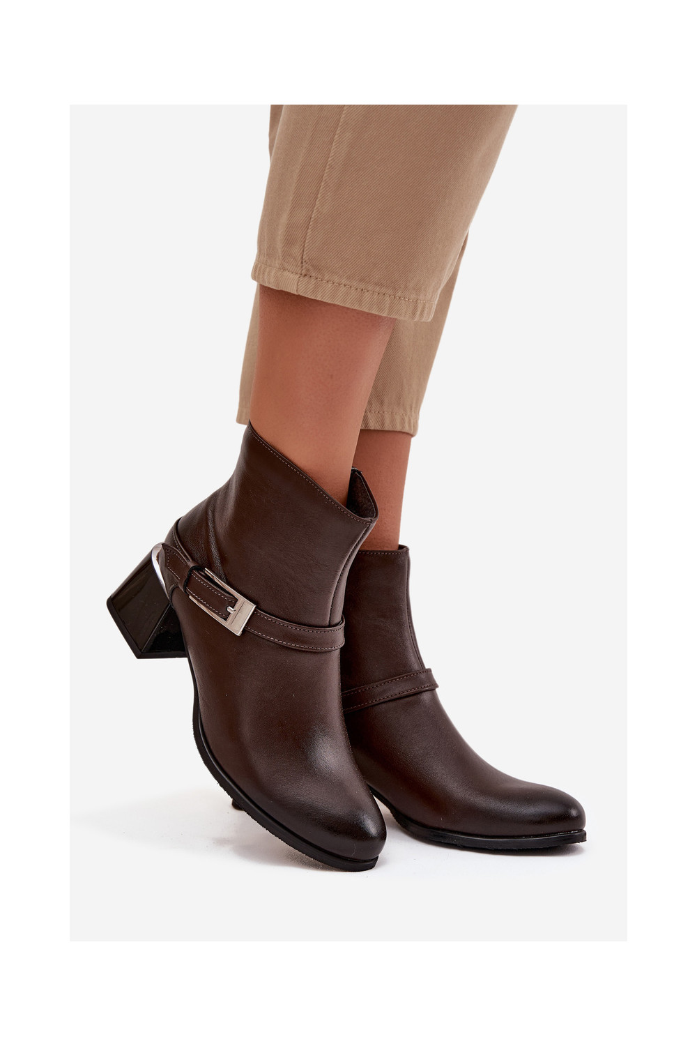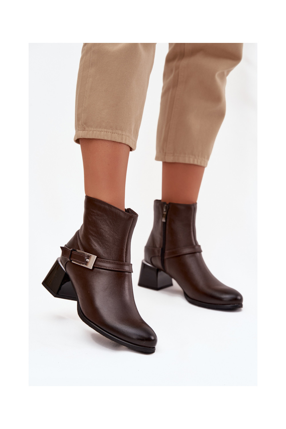 sieviešu zābaki ar papēdi ar sprādzēm Zazoo 60562 Czekoladowe