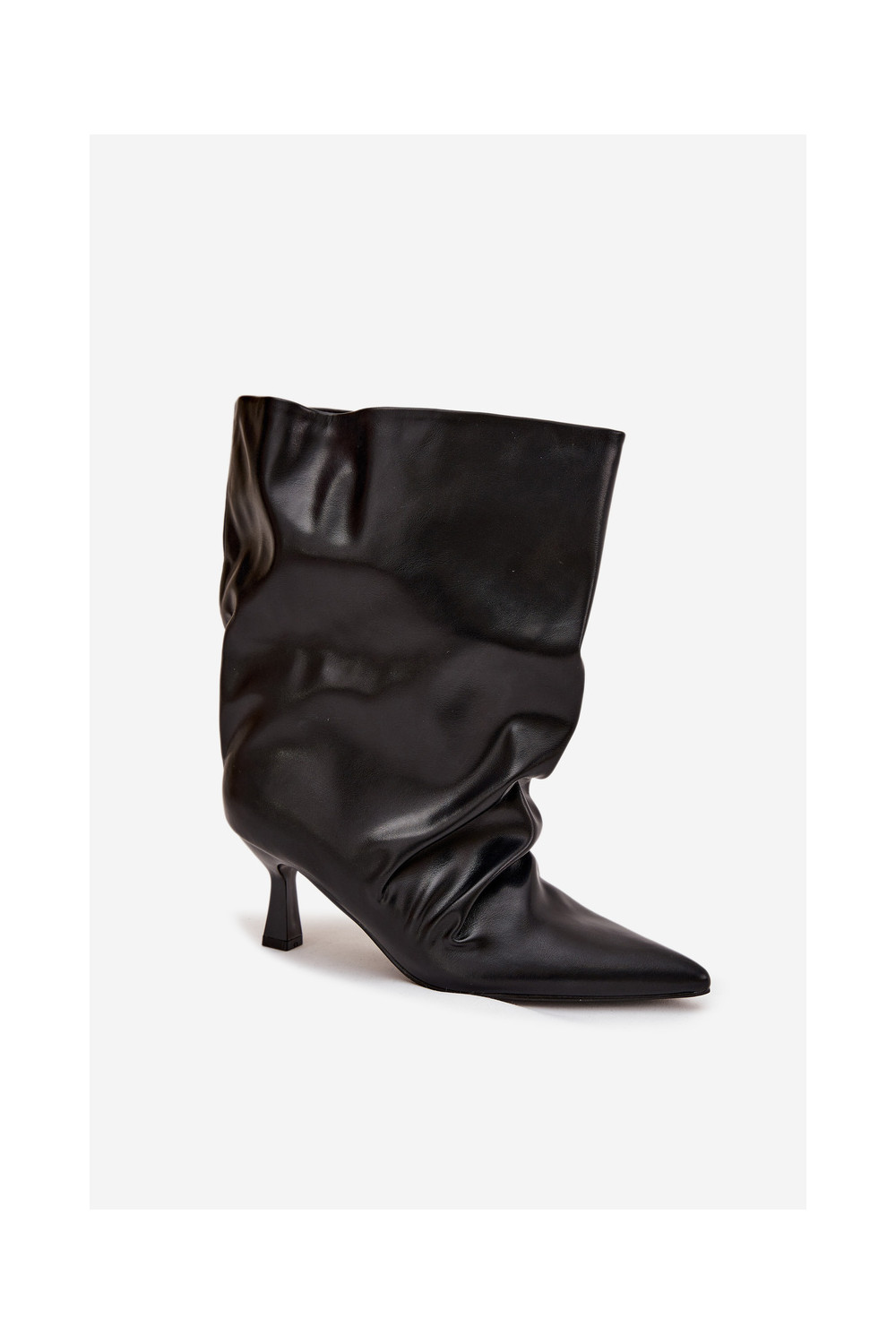 Sieviešu ievelkamie zābaciņi ar plāniem papēžiem un viļņotu augšdaļu melnā krāsā Inarisse