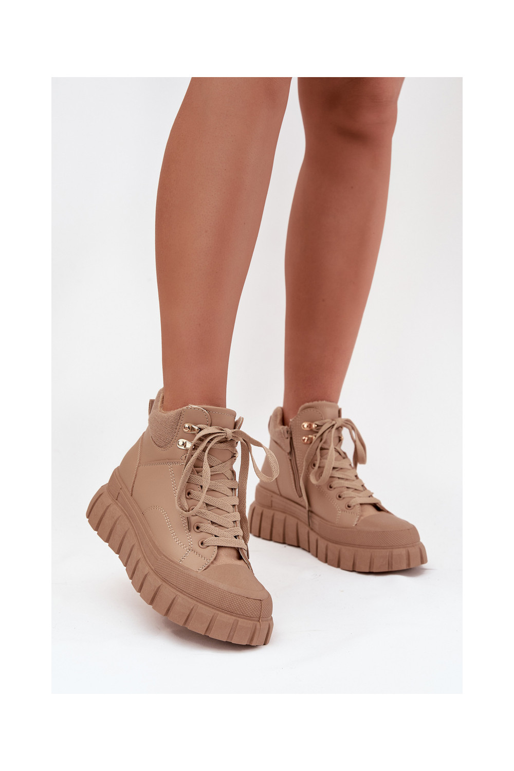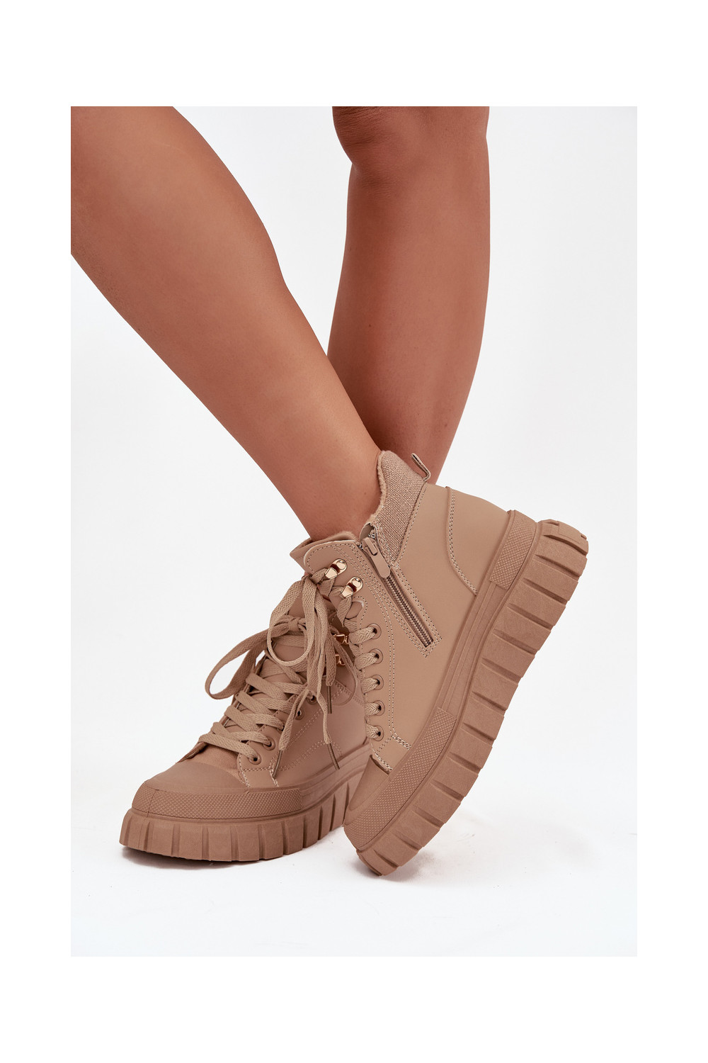 Sieviešu siltināti Sieviešu puszābaki apavi ar platformu brūnas krāsas Carenna