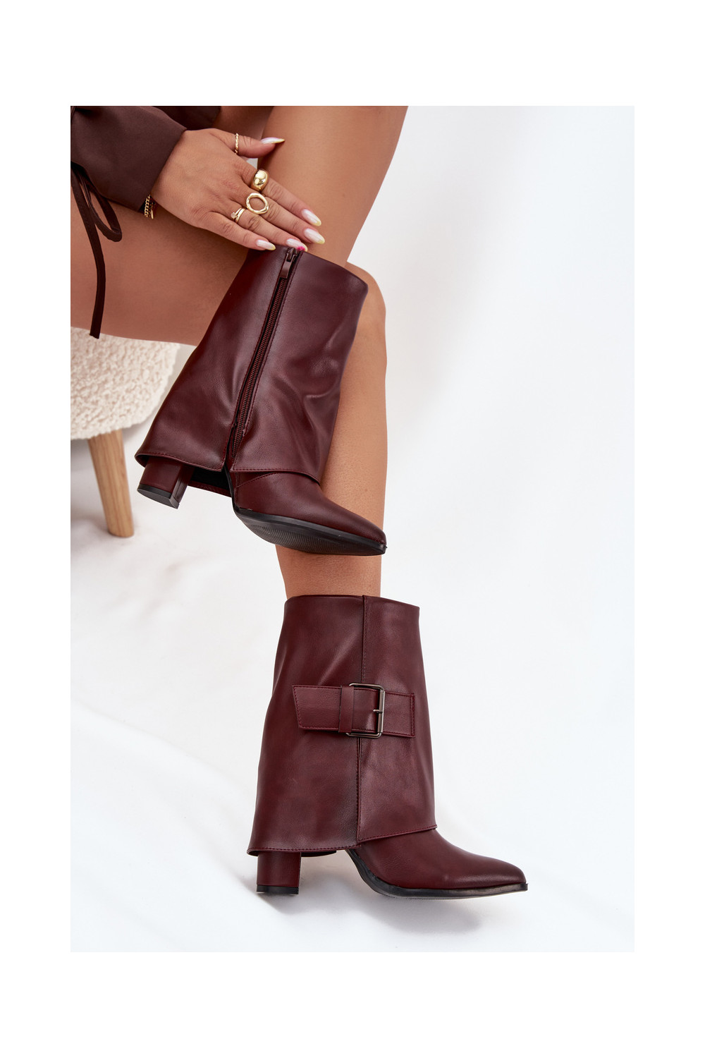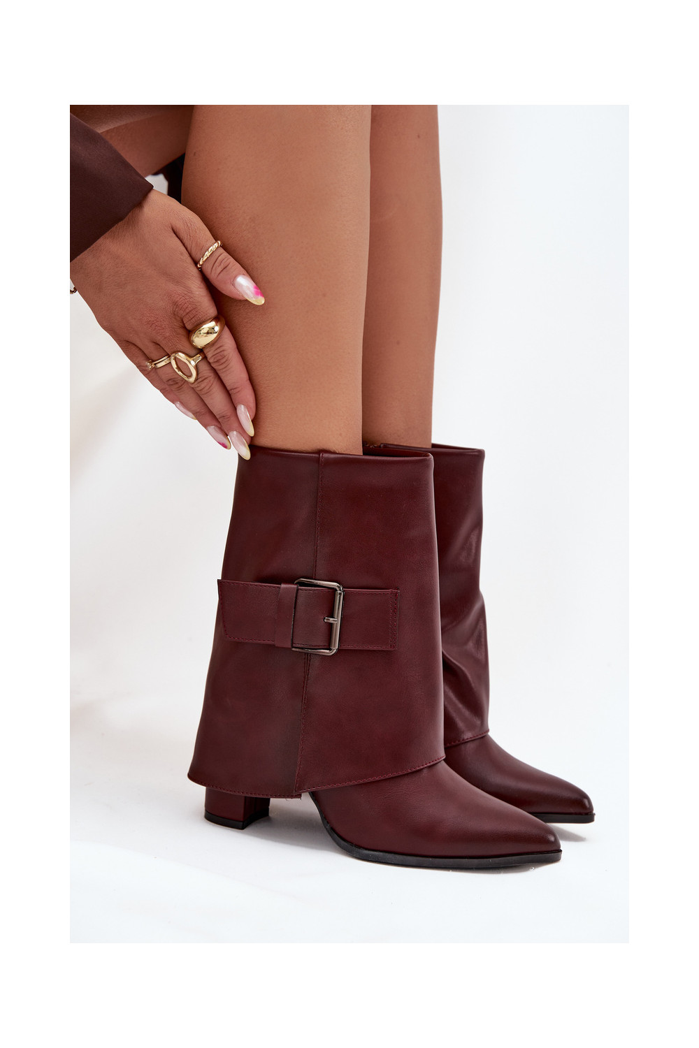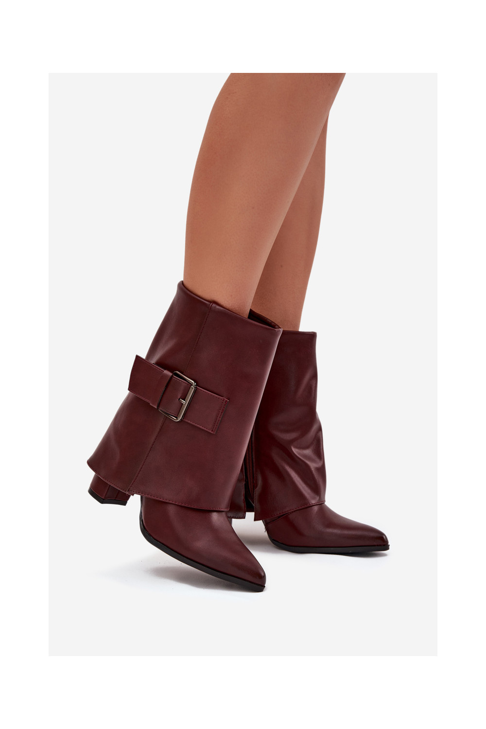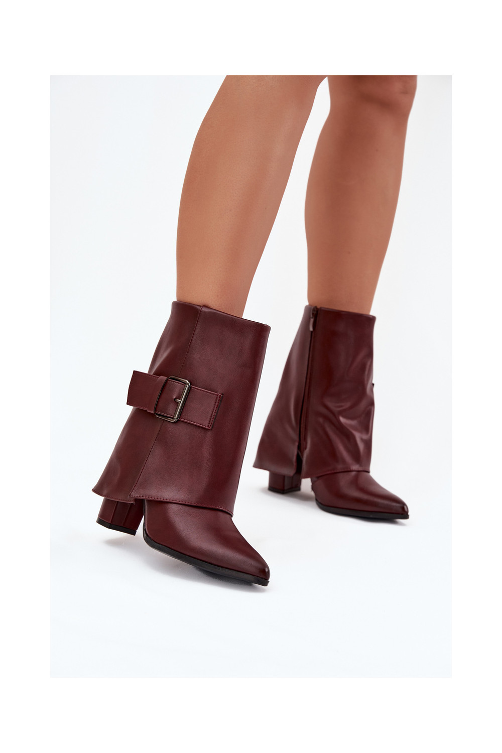 siltināti Sieviešu puszābaki ar papēdiINyIniniętą CholeInką I ar sprādzēm bordo krāsas Ylenara