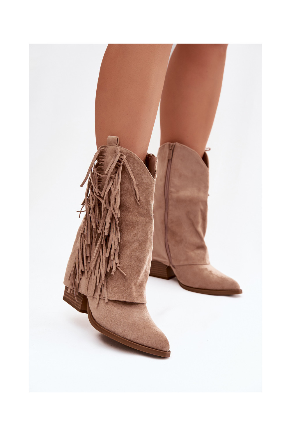 kovboju stila puszābaki ar bārkstīm ar papēdi Haki krāsas Gralina