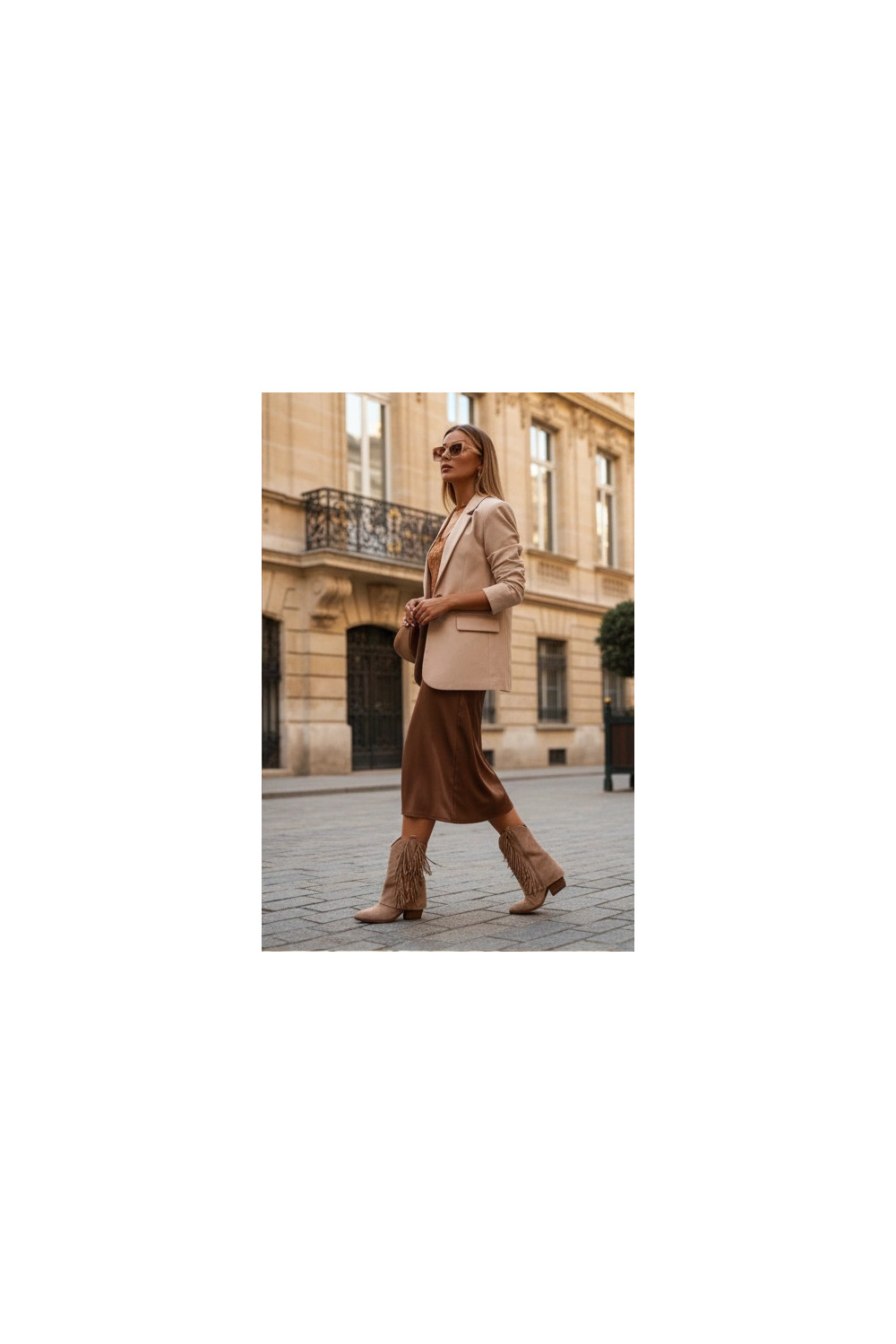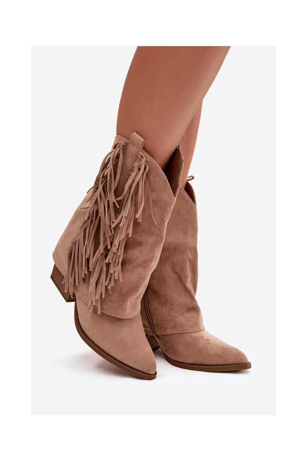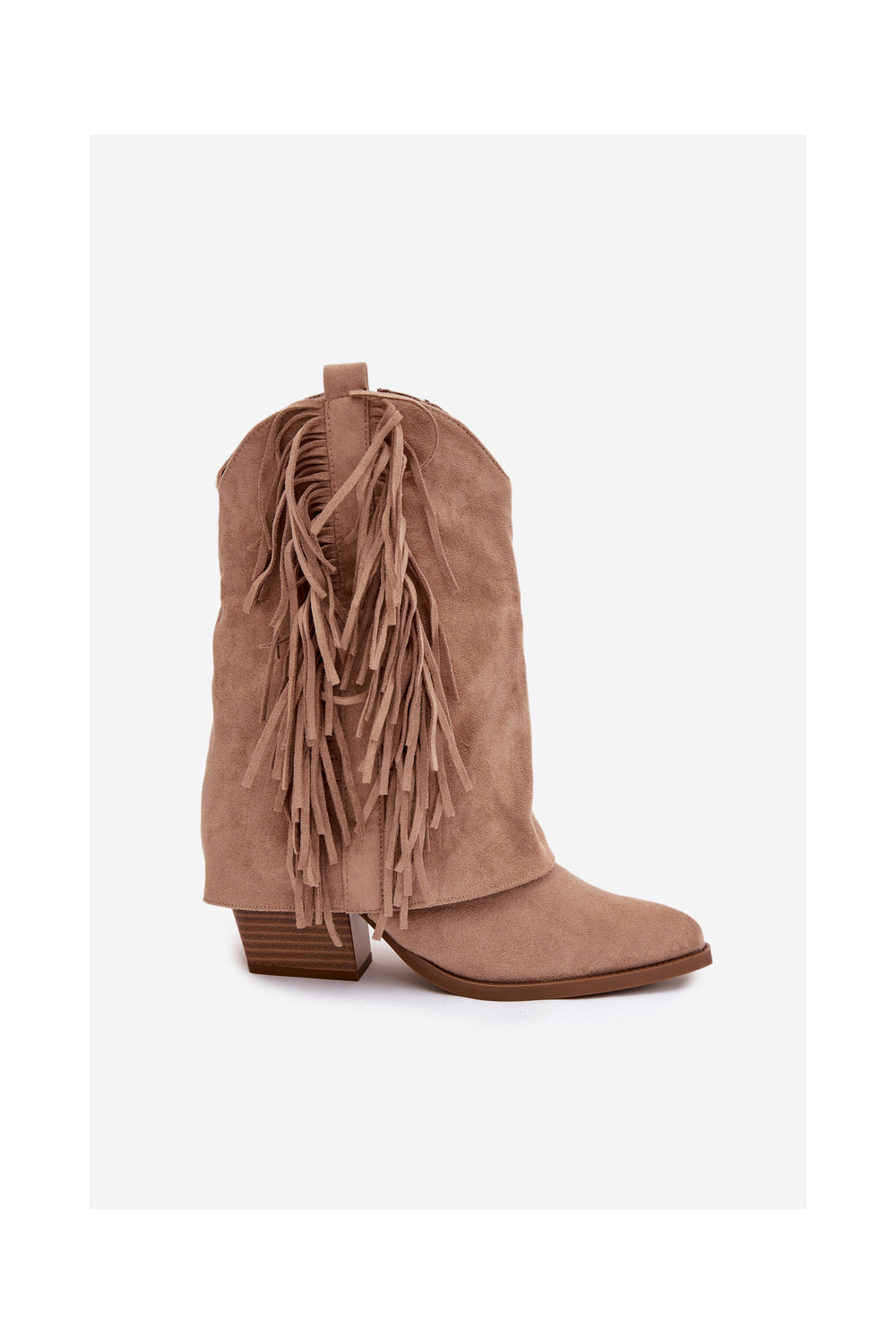 kovboju stila puszābaki Sieviešu ar bārkstīm ar papēdi Haki krāsas Gralina