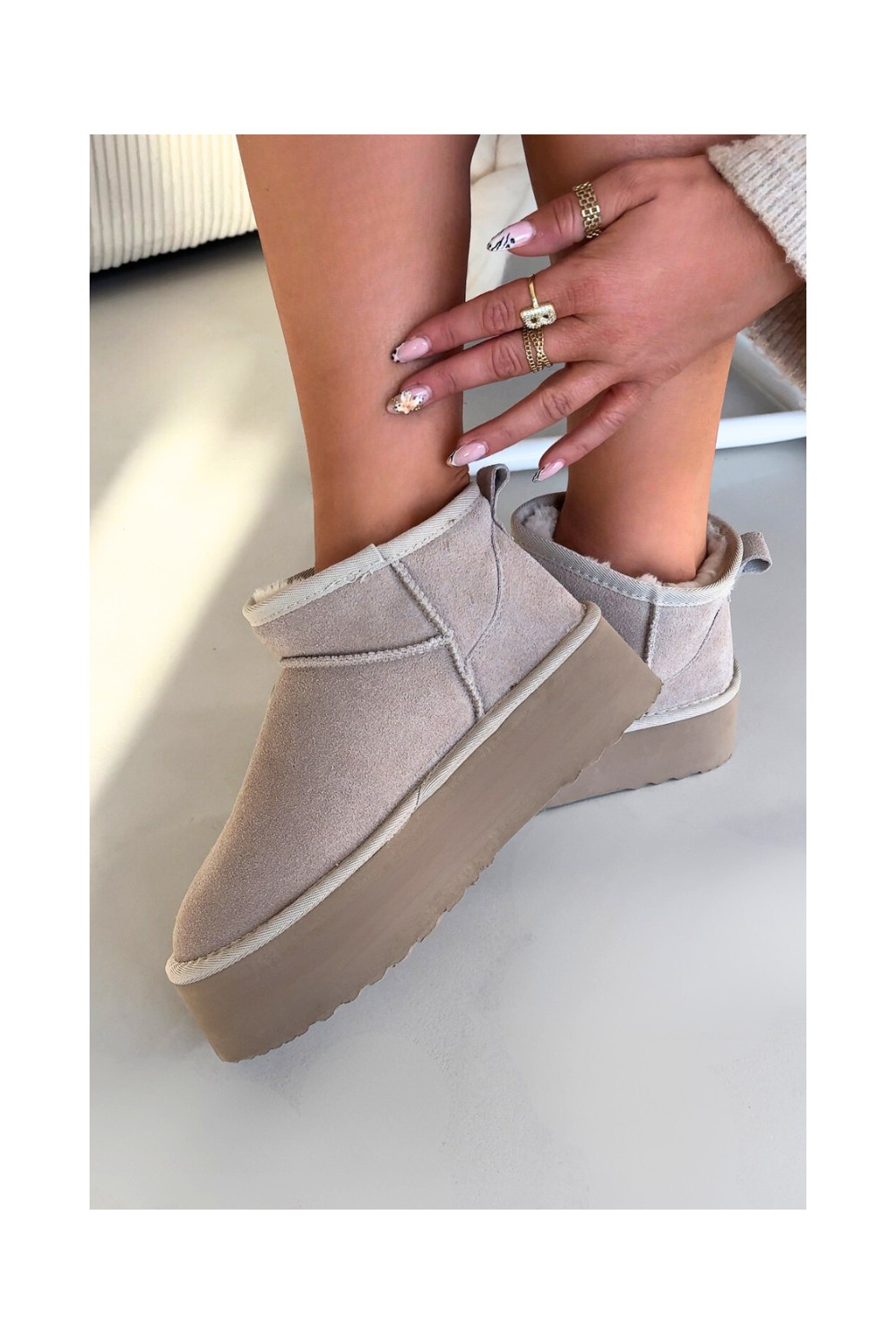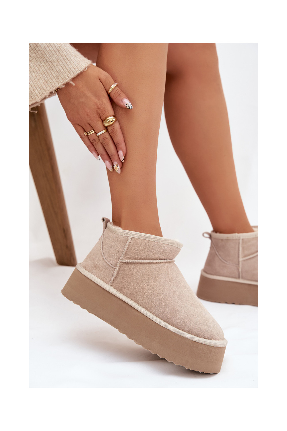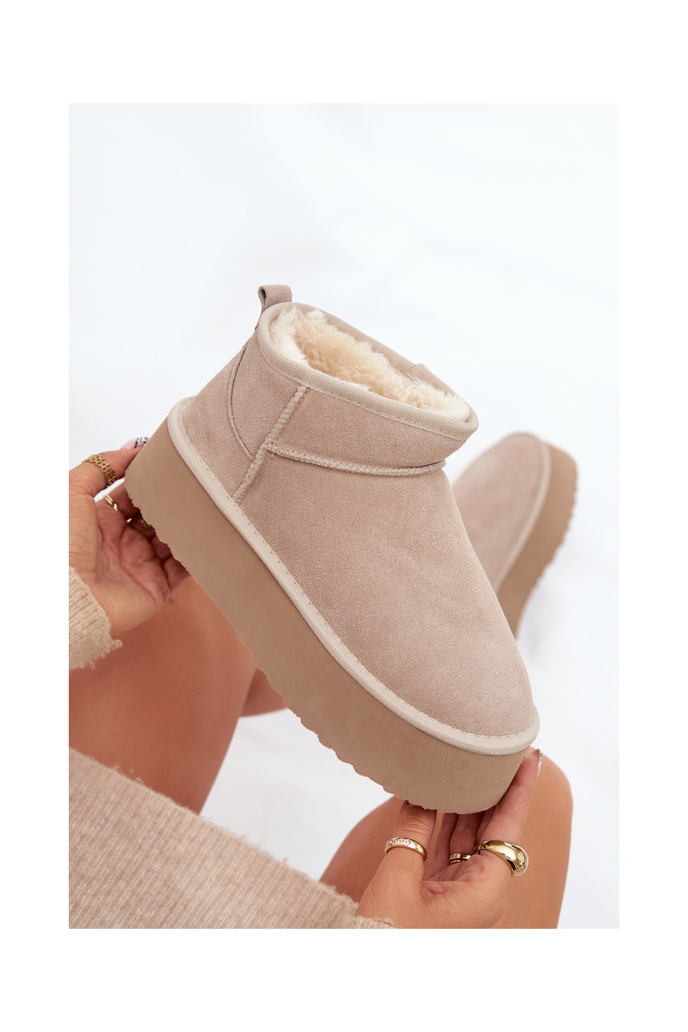 sniega apavi Z Naturalnego Zamszu smilšu krāsas Mairene