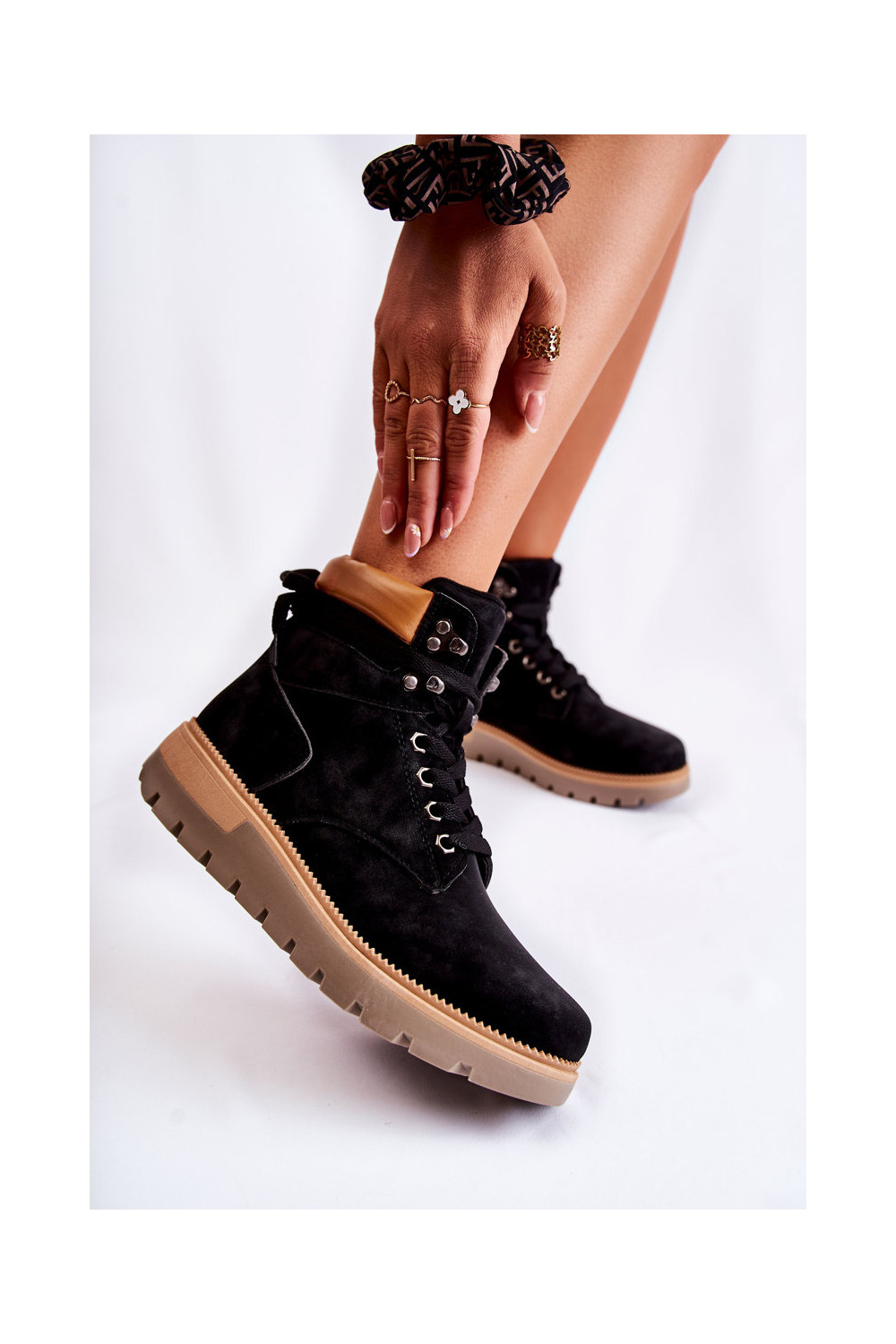 Melni ādas zābaki ar platformu Ressa