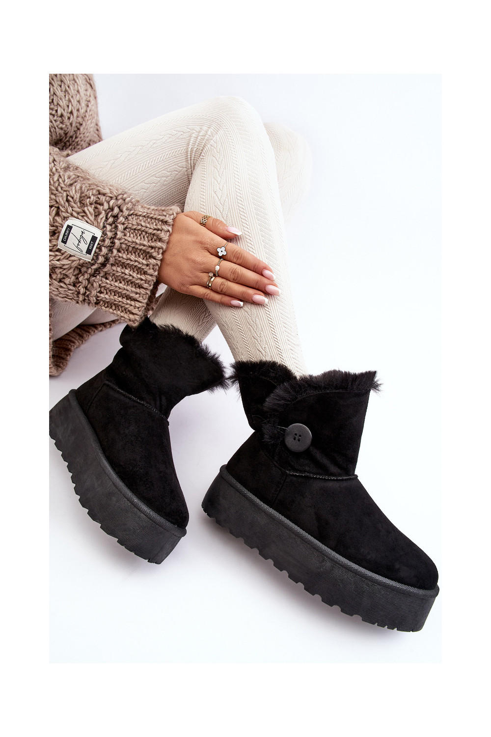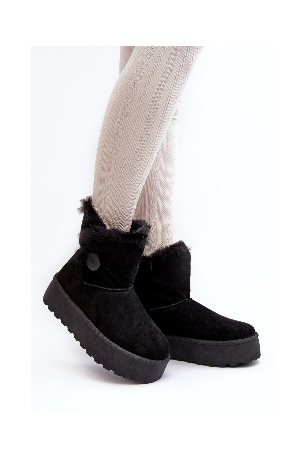 Sieviešu sniega zābaki ar platformu un kažokādu melnā krāsā INikasem